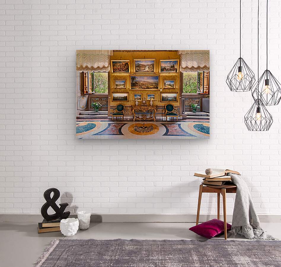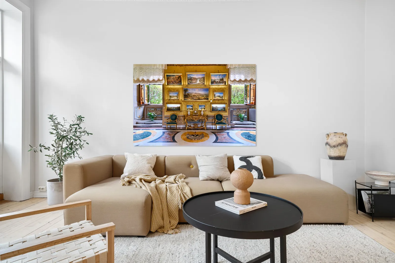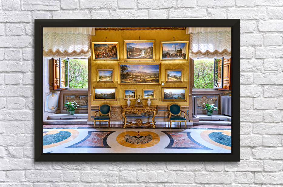 Visitors view art on display in the Princess Isabelle Apartment at Colonna Art Gallery. The space features historic paintings and decor.