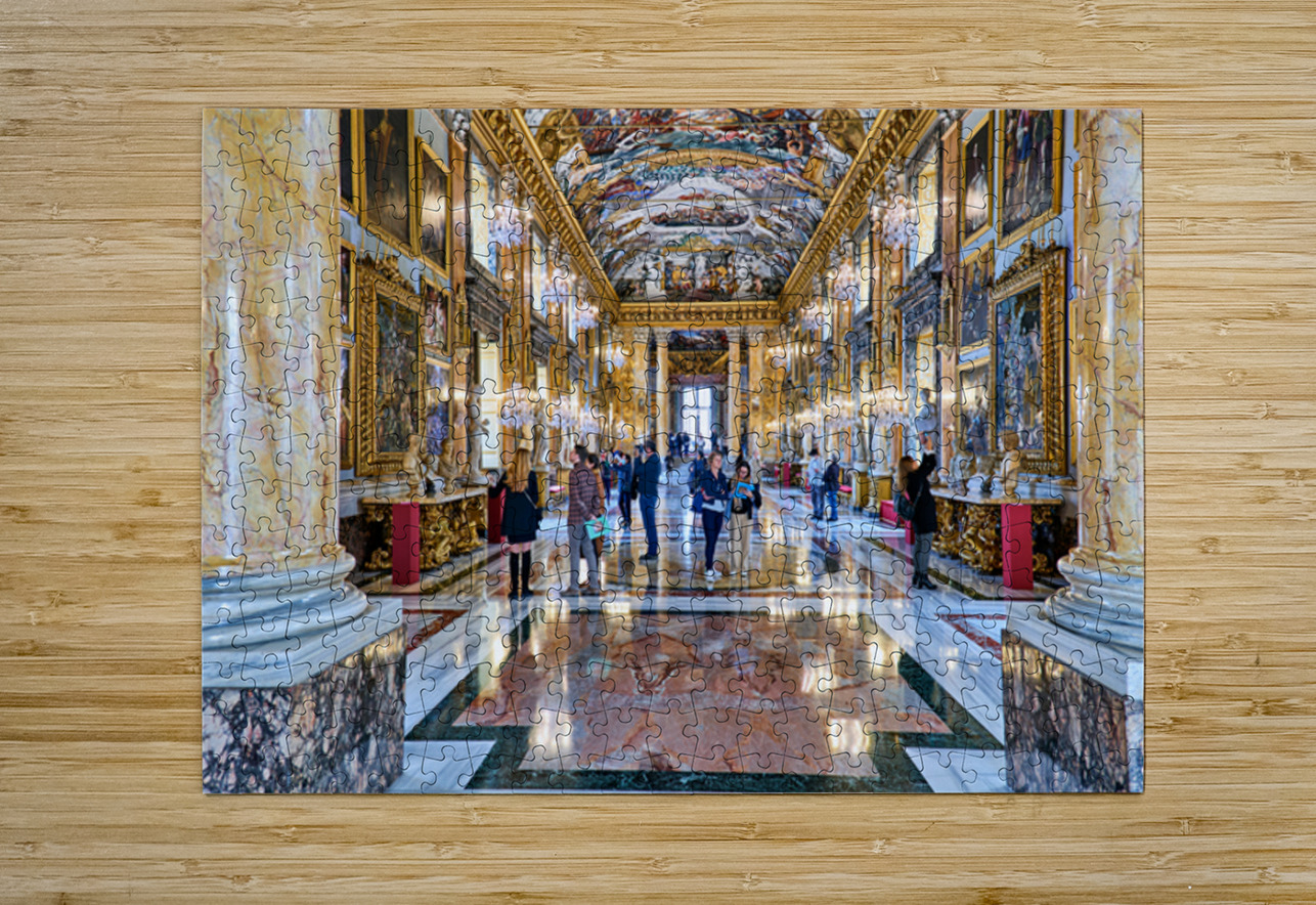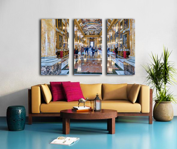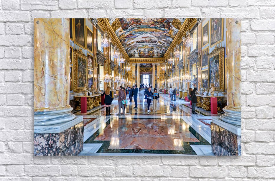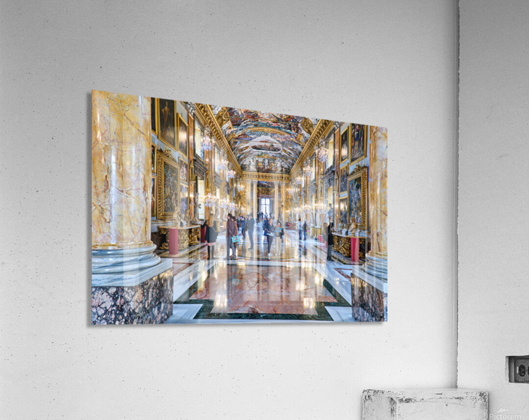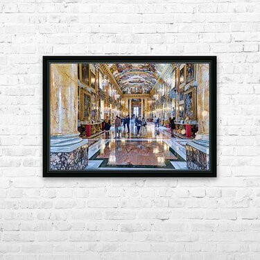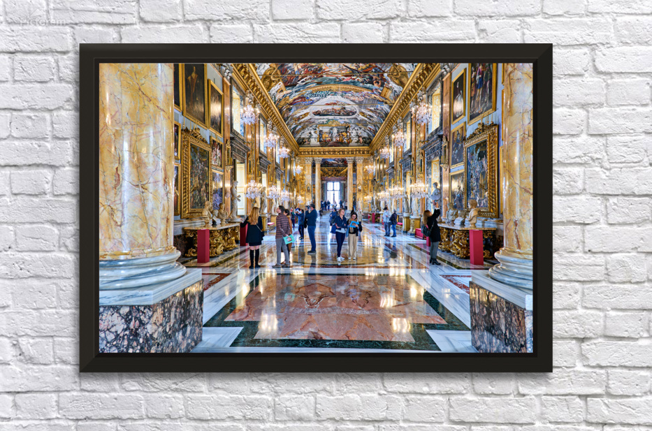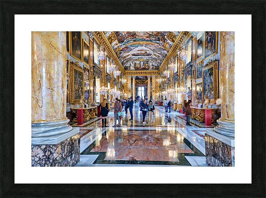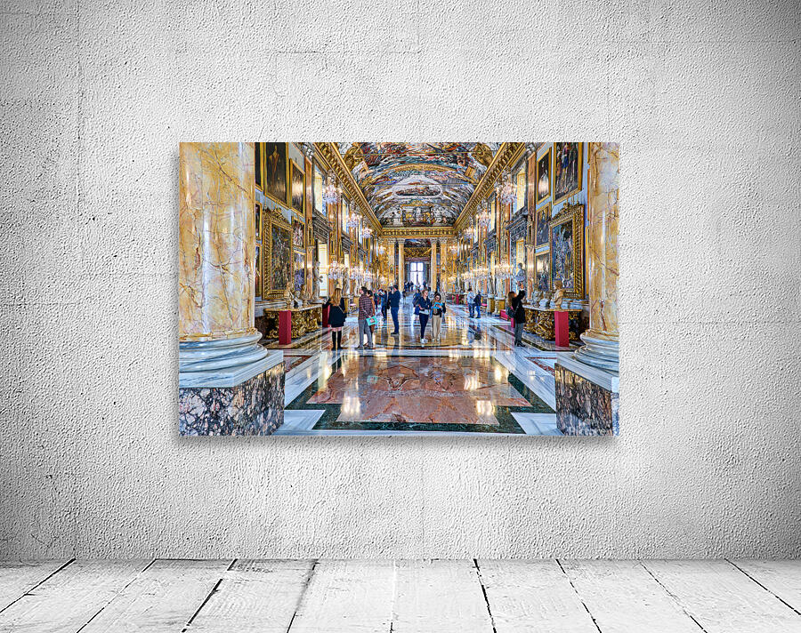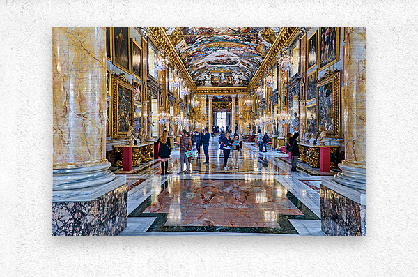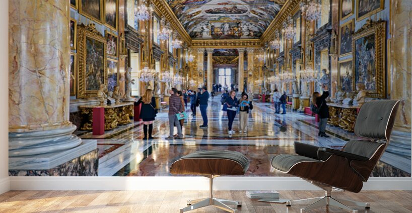 People walk around the Colonna Art Gallery in Palazzo Colonna taking in the art and architecture in the great hall.