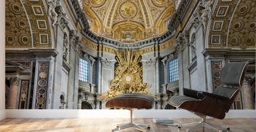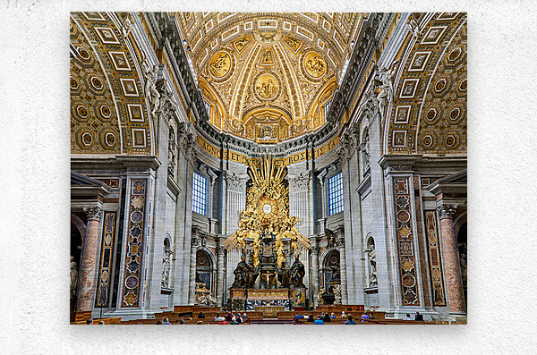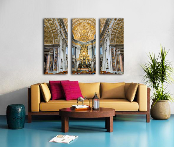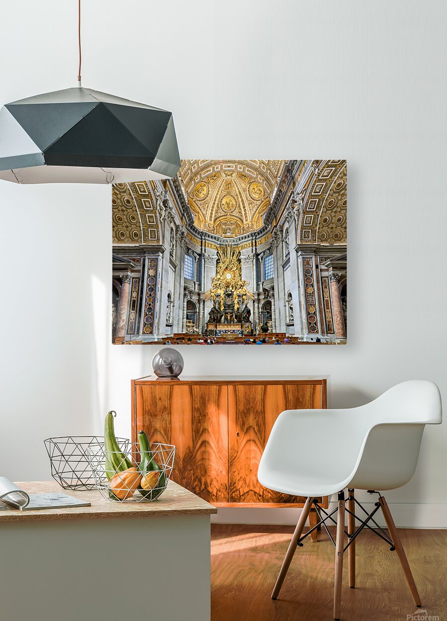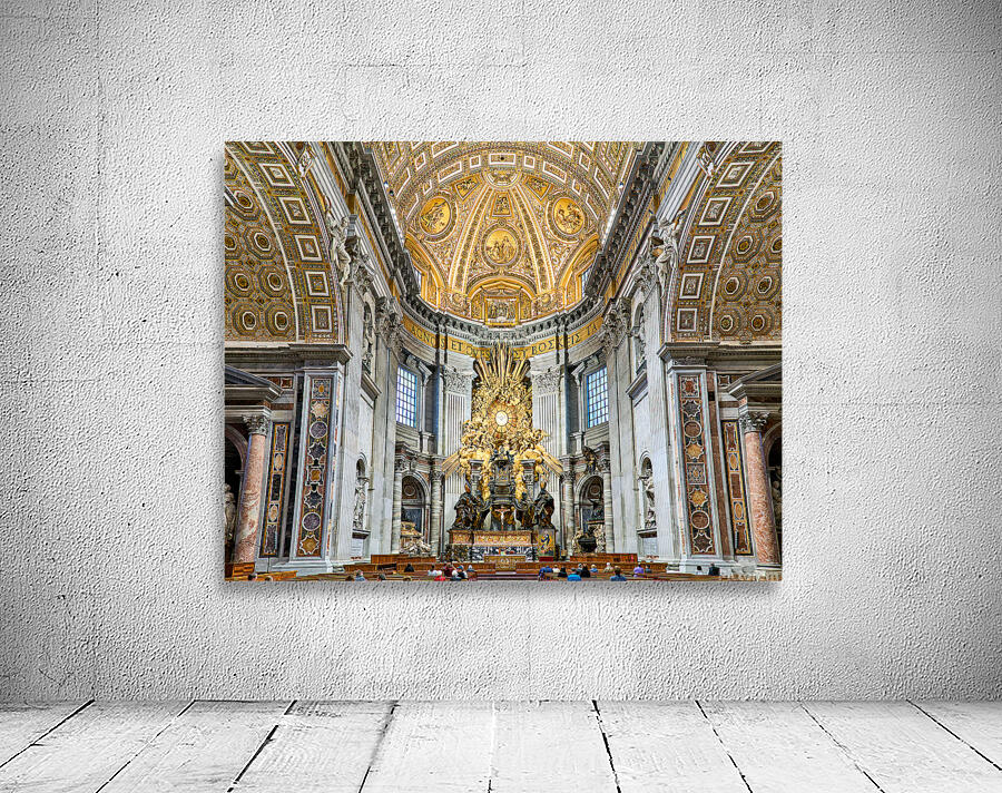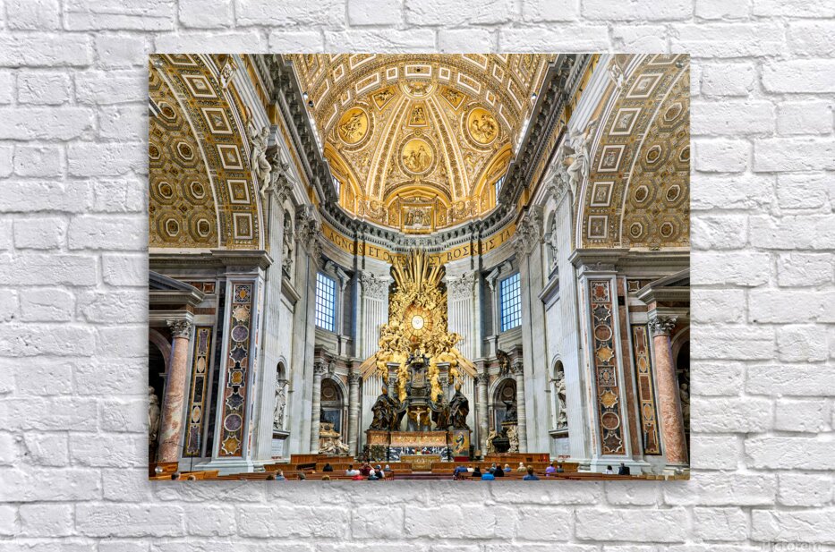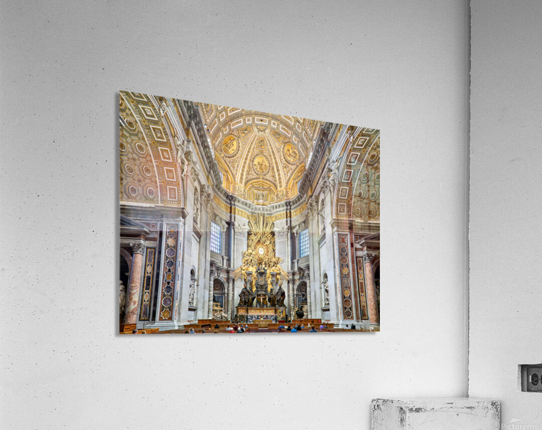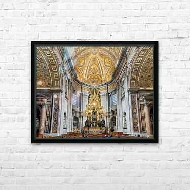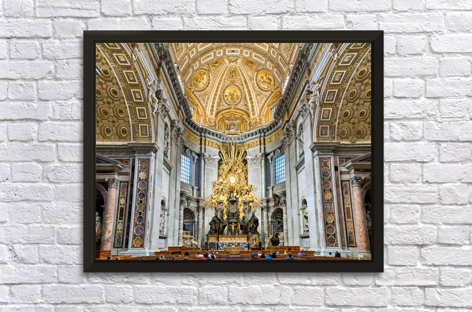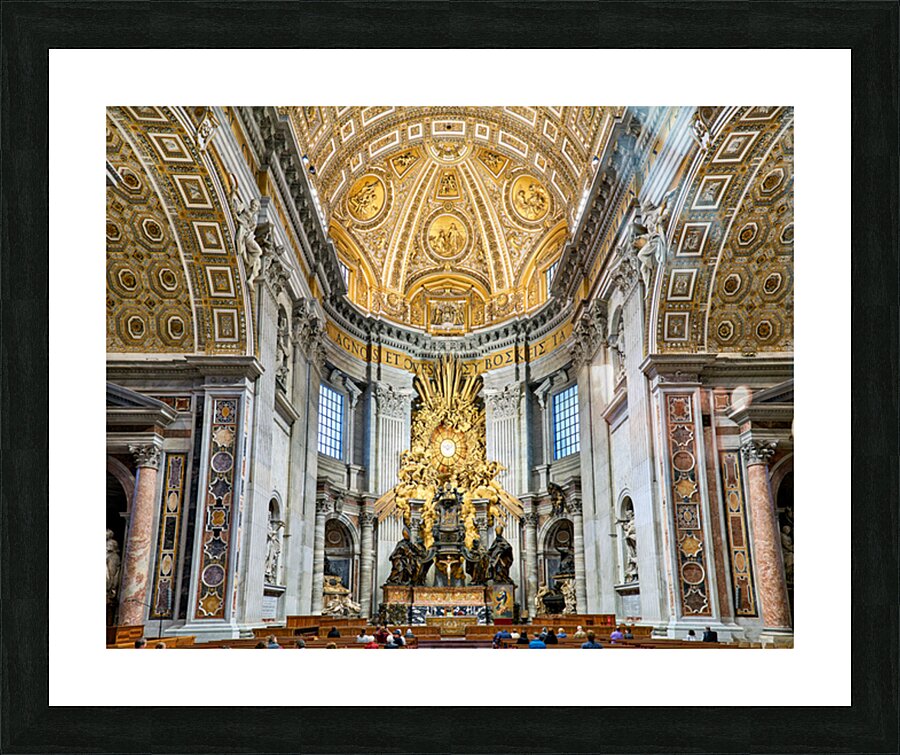 "Visitors gather inside Saint Peters Basilica in Rome" in a framed print.