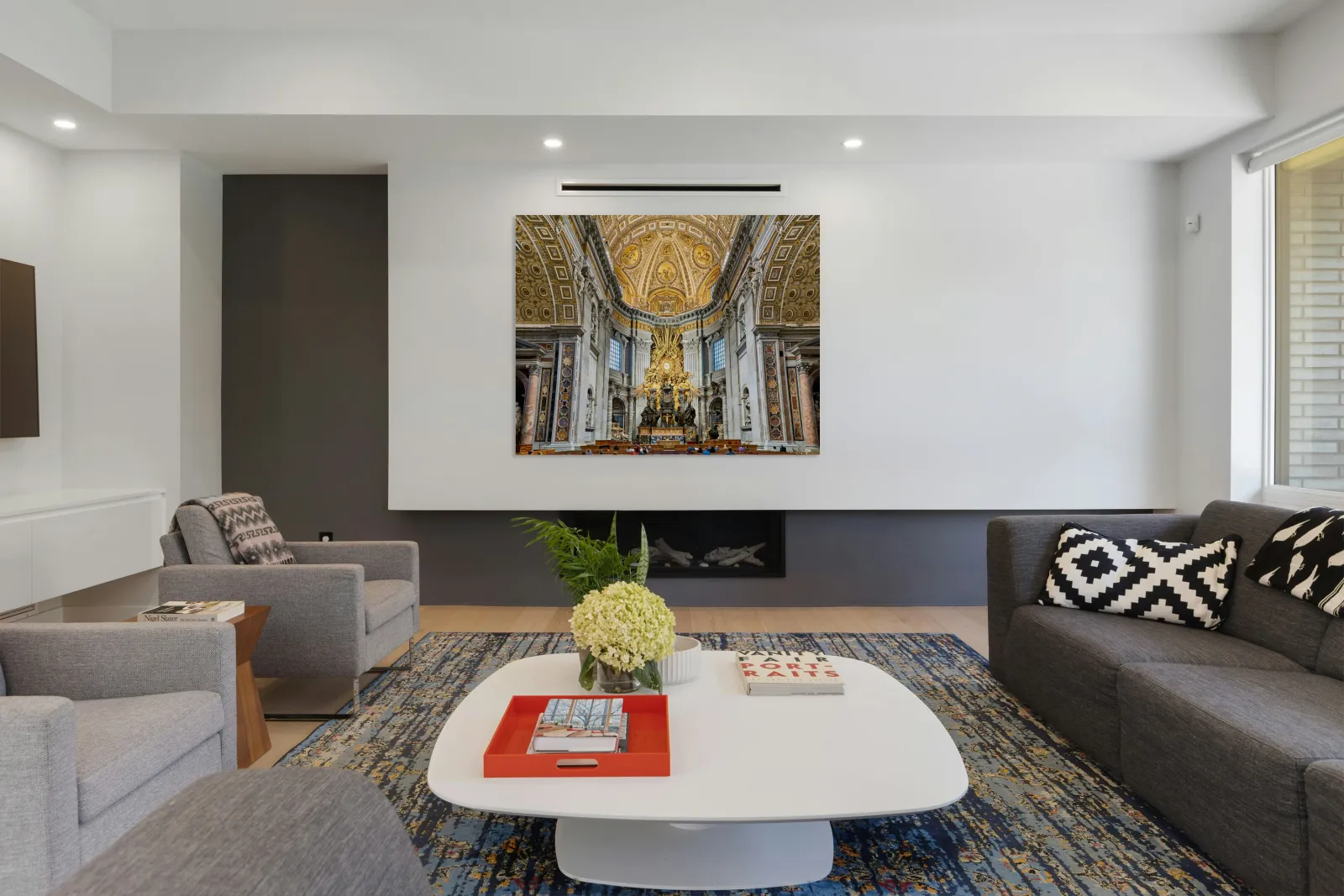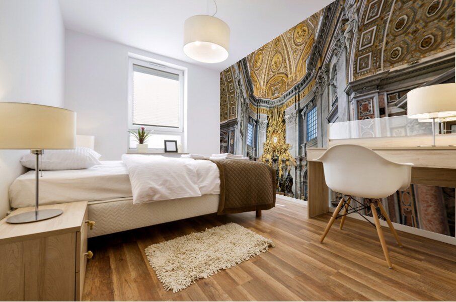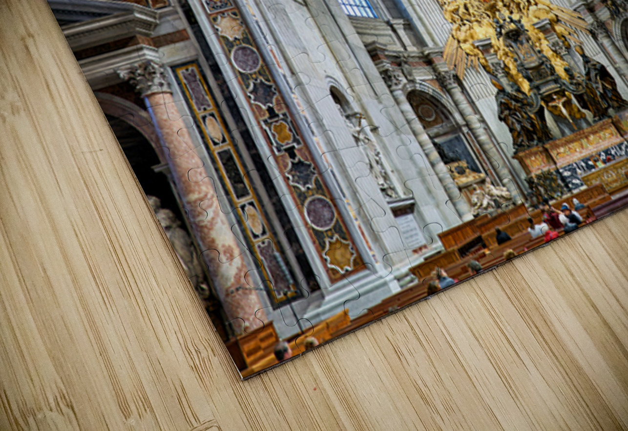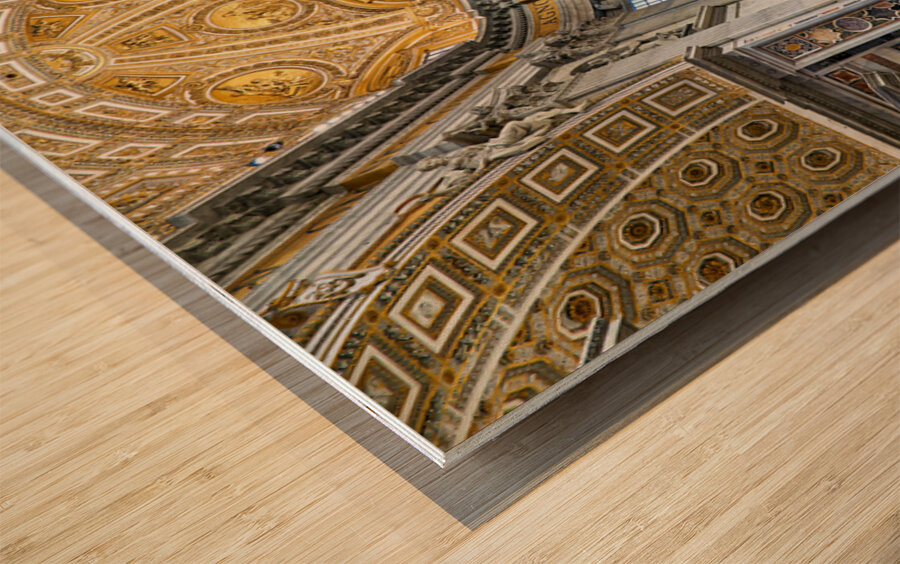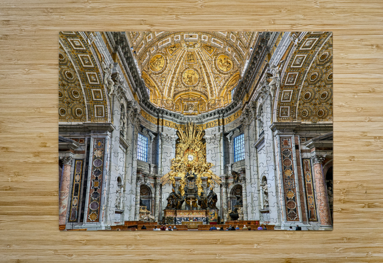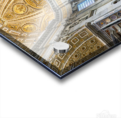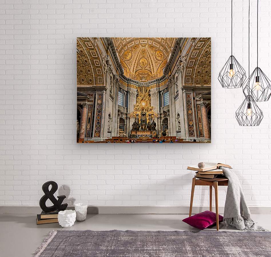 "Visitors gather inside Saint Peters Basilica in Rome" in a framed print.