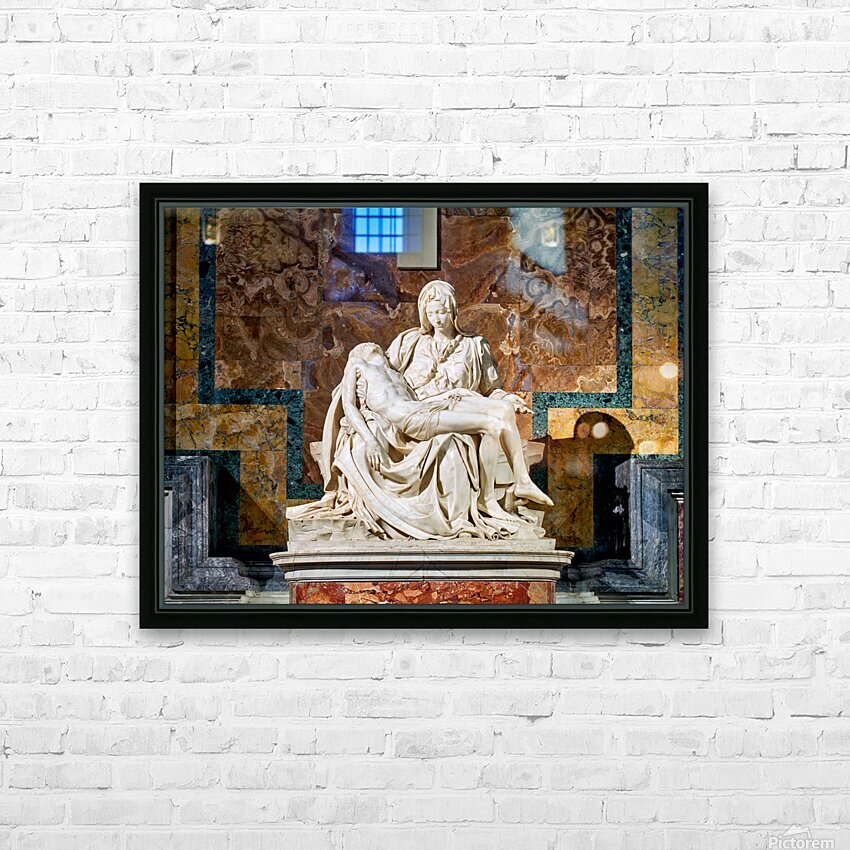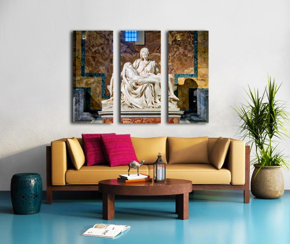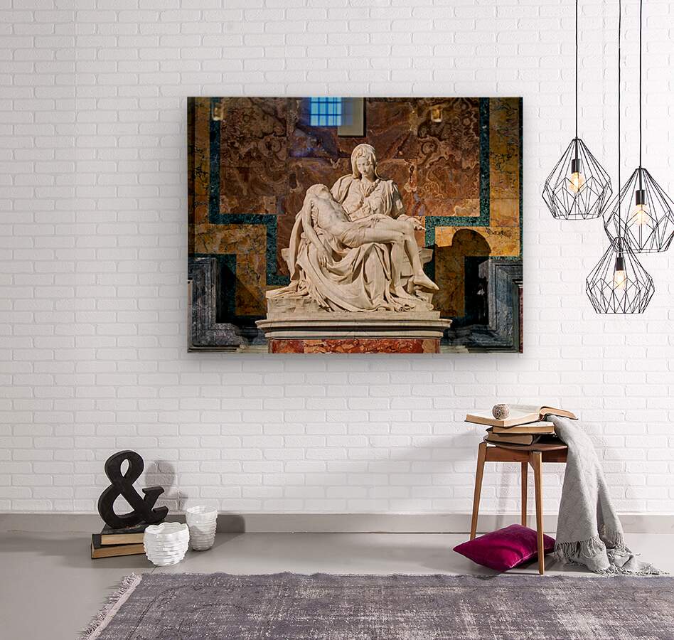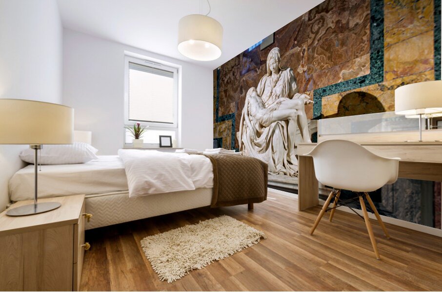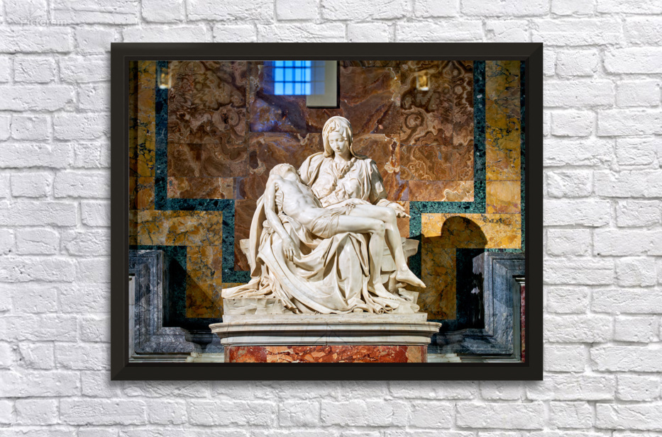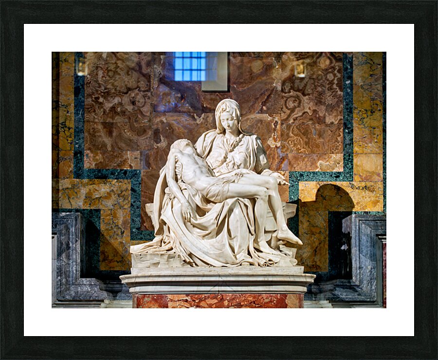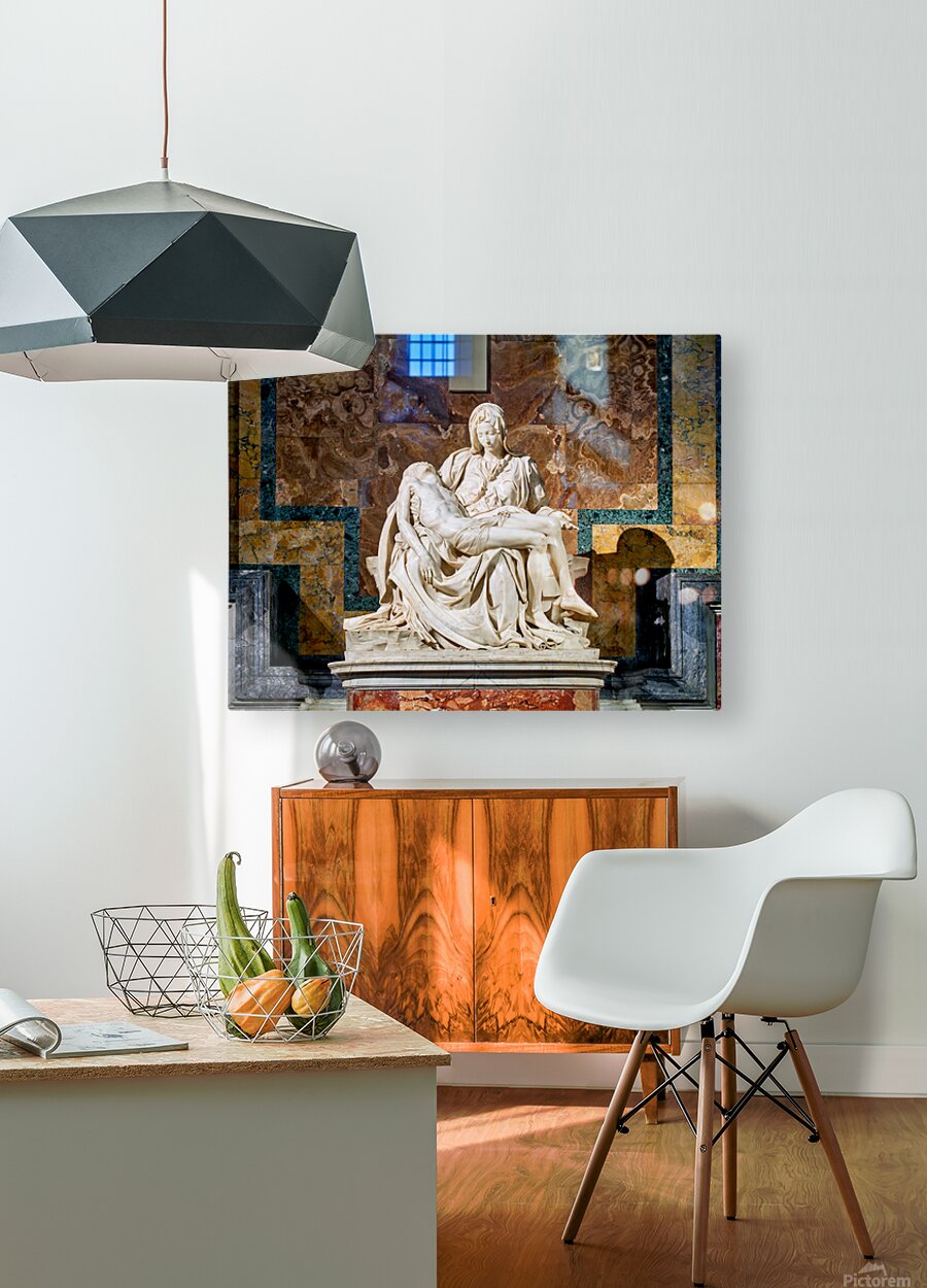 Visitors see Michelangelos Pietà in Saint Peters Basilica located in Saint Peters Square Rome. The sculpture shows Mary holding Jesus.