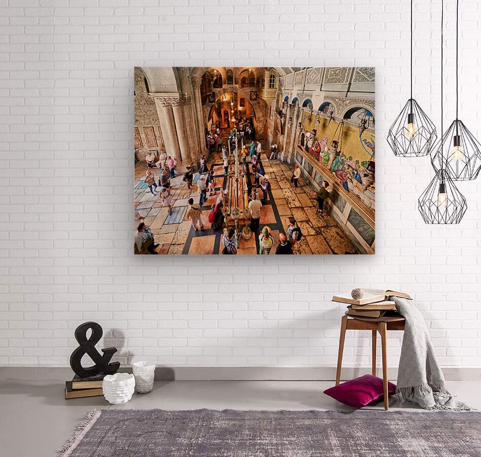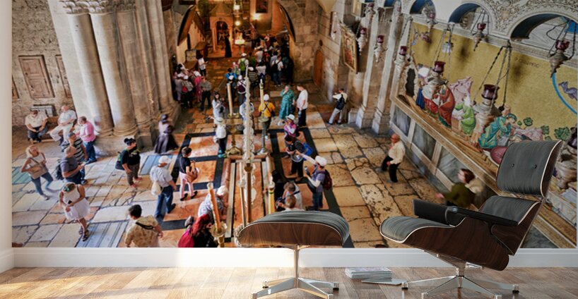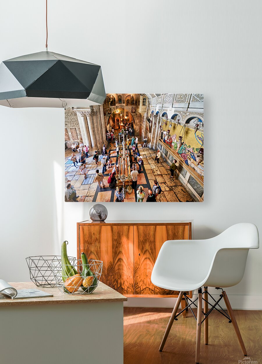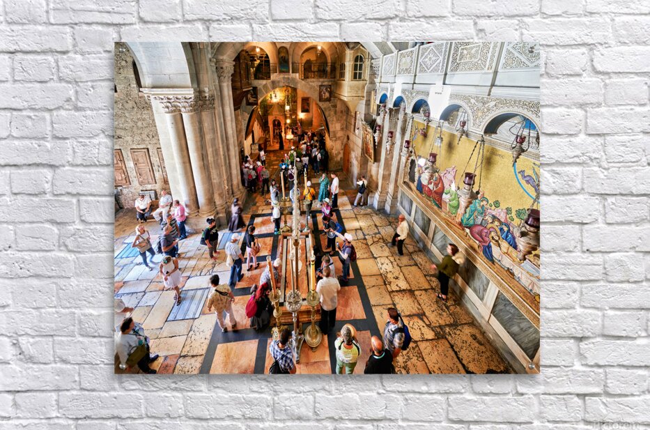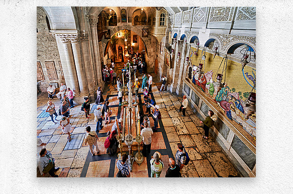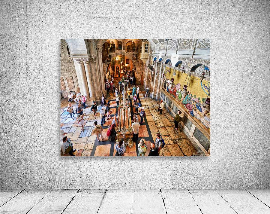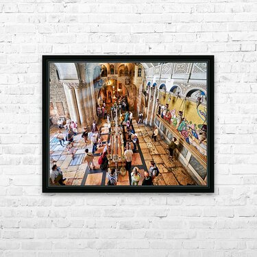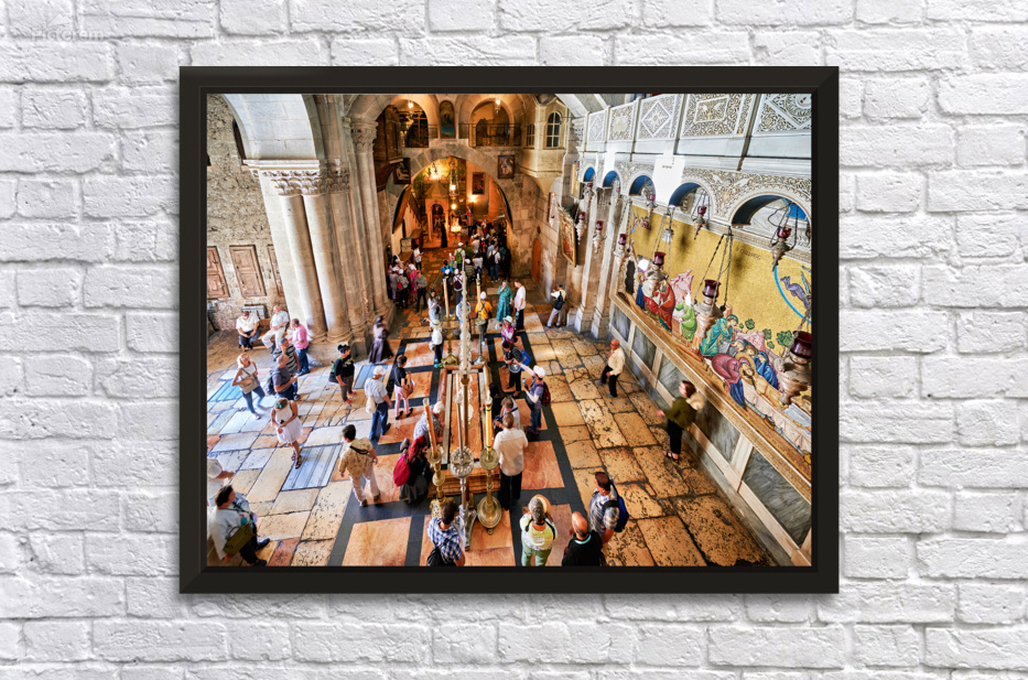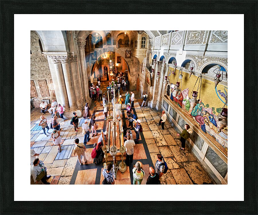 "Visit to the church of the holy sepulchre in jerusalem" in a framed print.