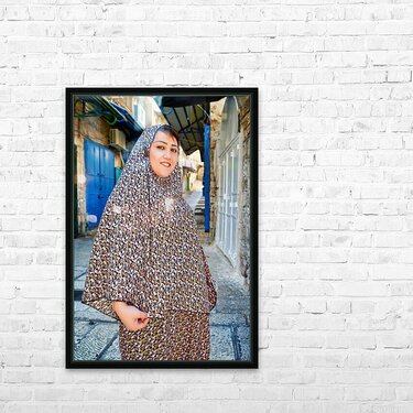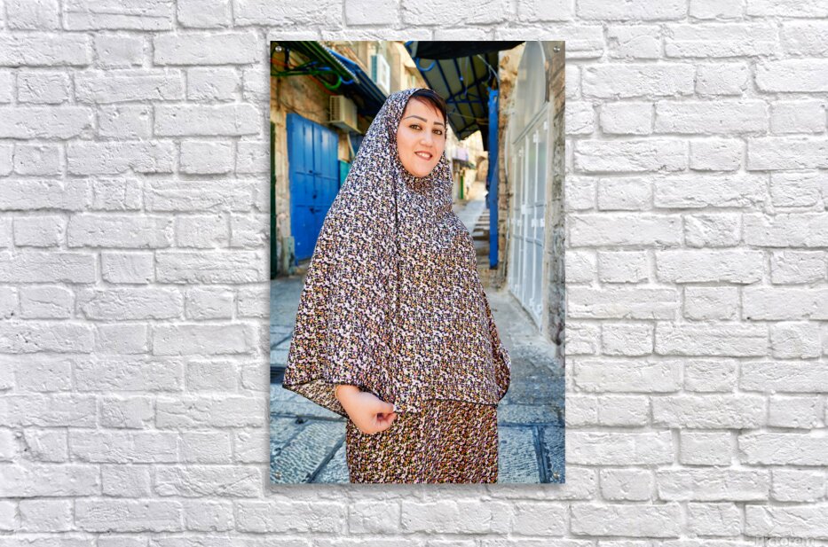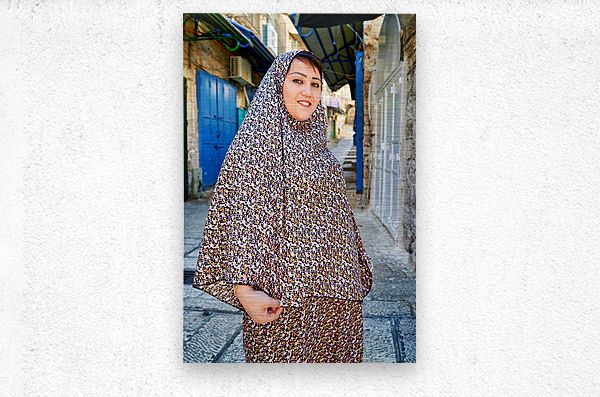 Get this artwork "Portrait of a woman in Jerusalem Israel walking on a street" in a framed print.