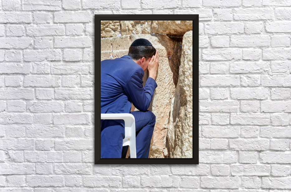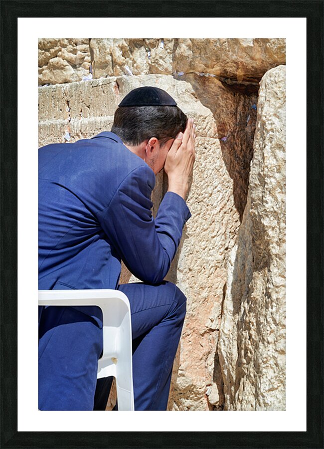 "Orthodox Jews pray at the Western Wall in Jerusalem during the d" in a framed print.