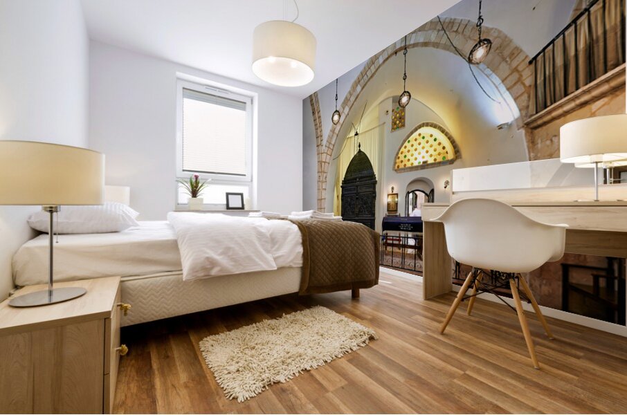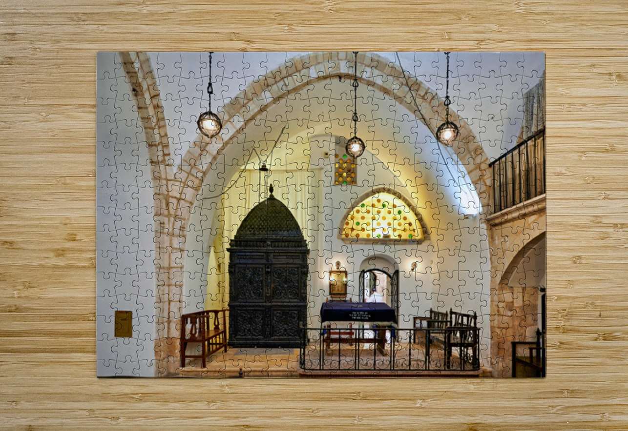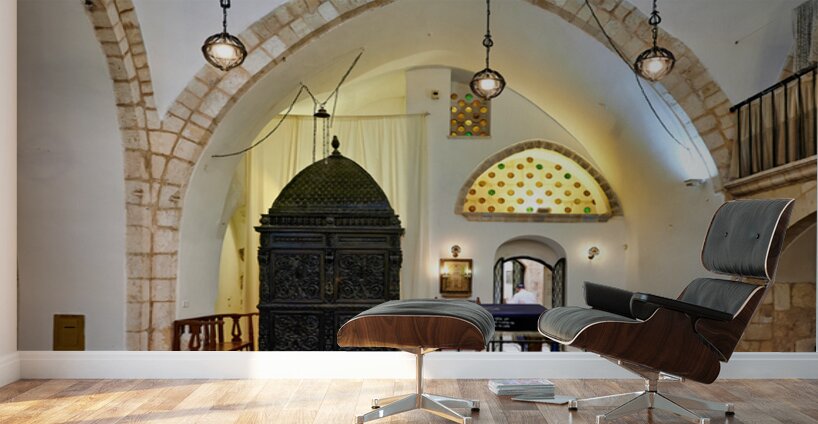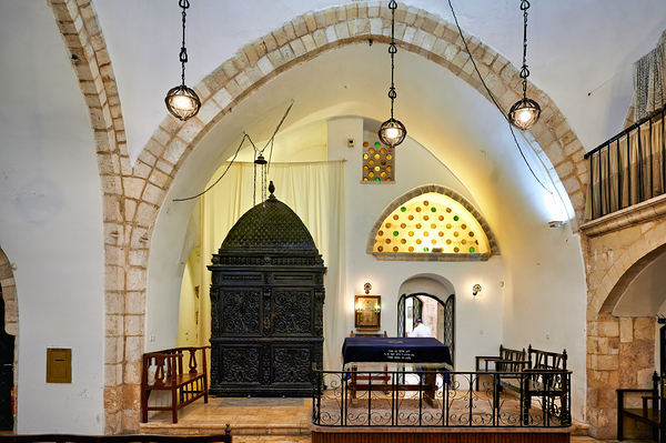 Visitors explore four sephardic synagogues in Jerusalem. The architecture shows unique design. People engage in prayer and reflection inside.