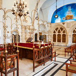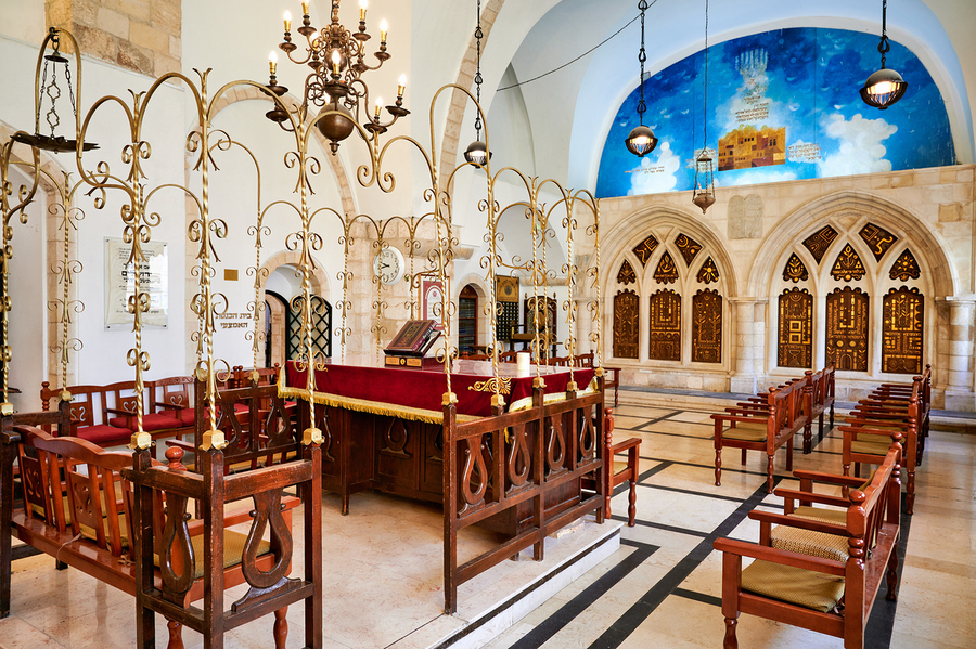 Visitors explore four Sephardic synagogues in Jerusalem. The architecture displays cultural details and historical significance.