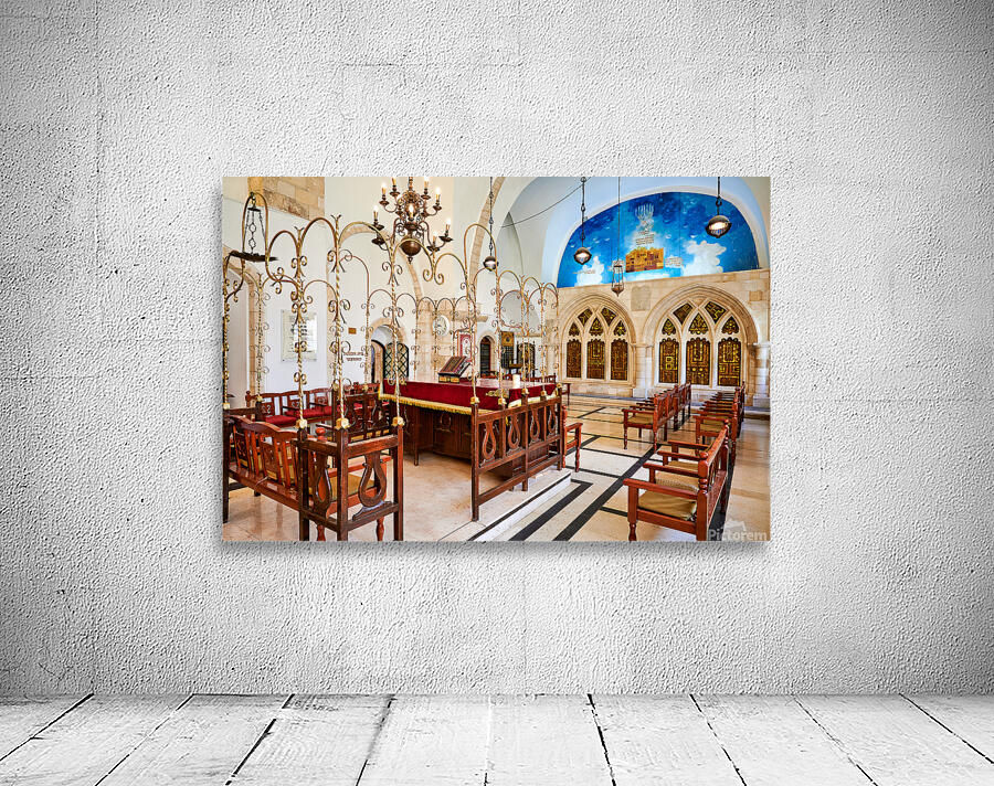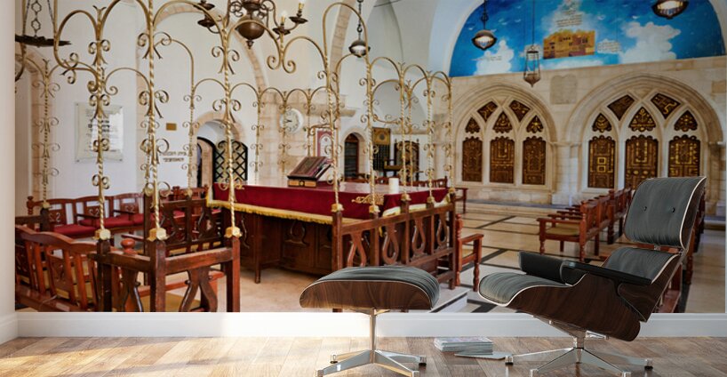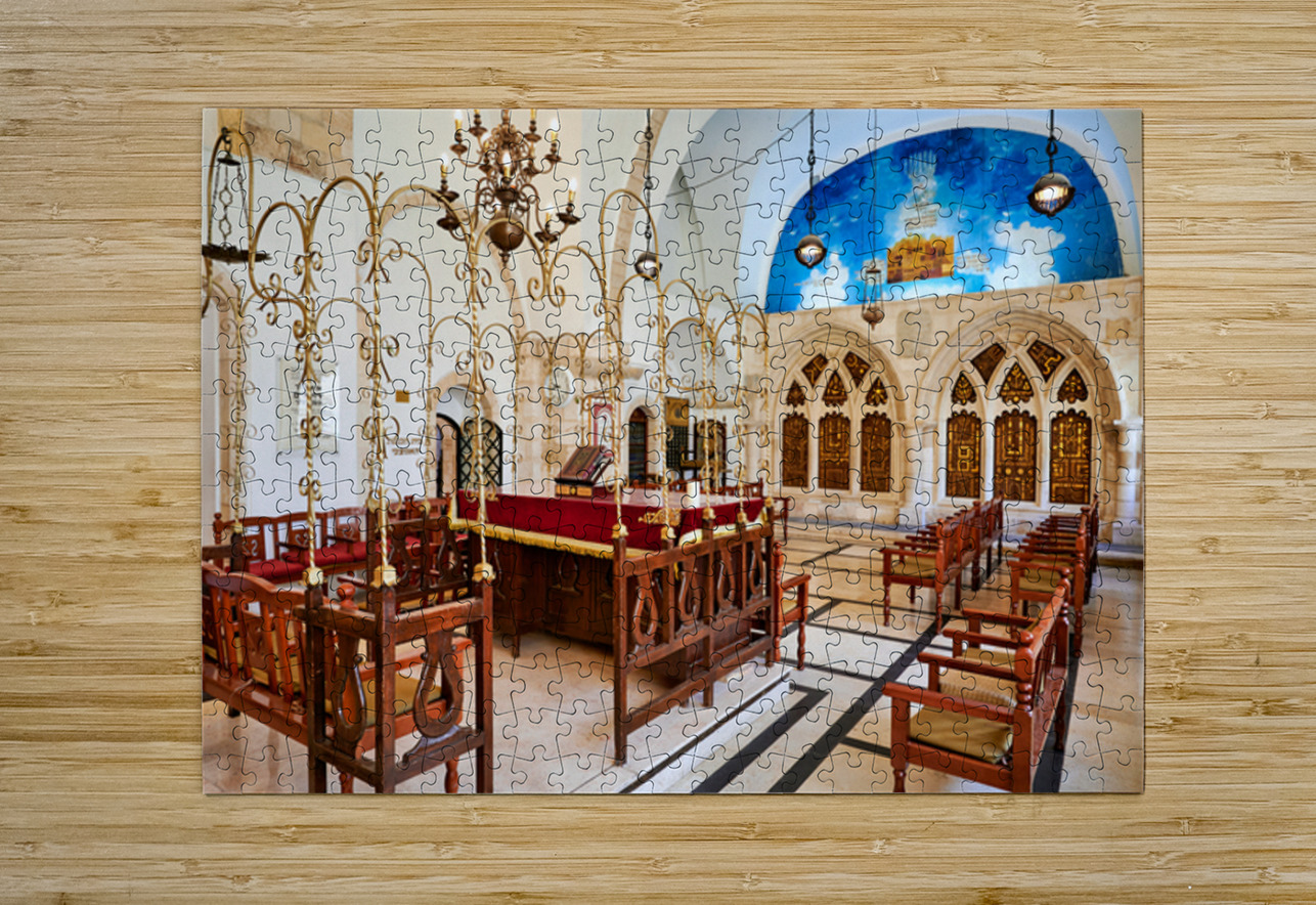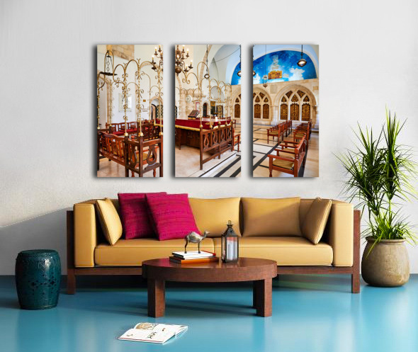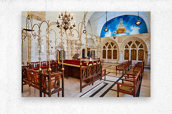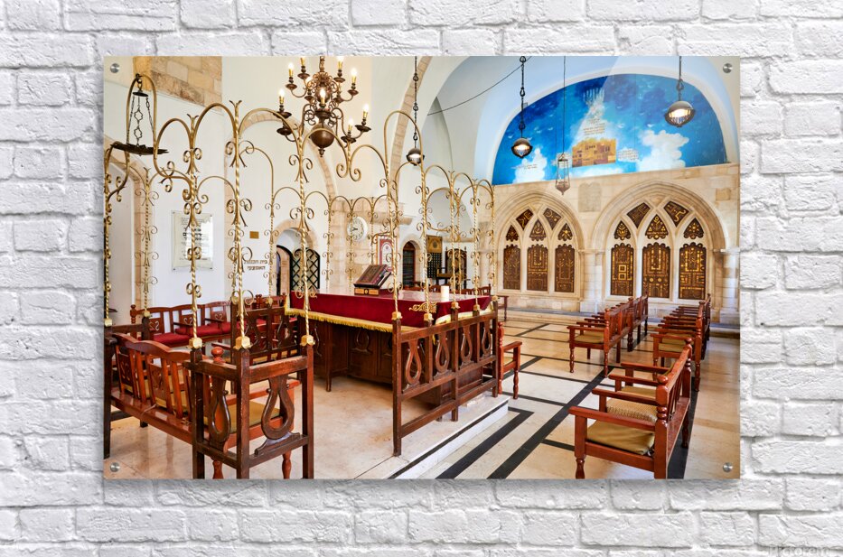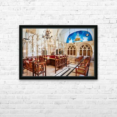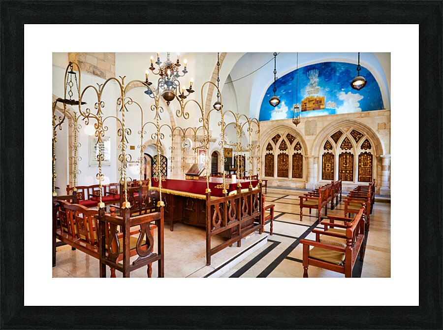 "Visitors explore four Sephardic synagogues in Jerusalem" in a framed print.