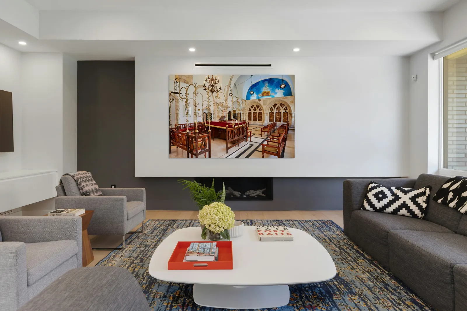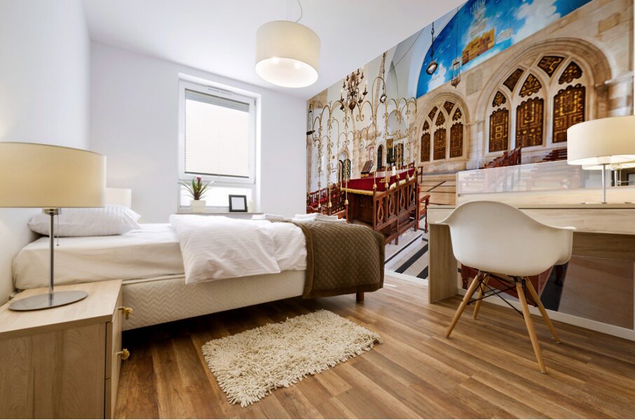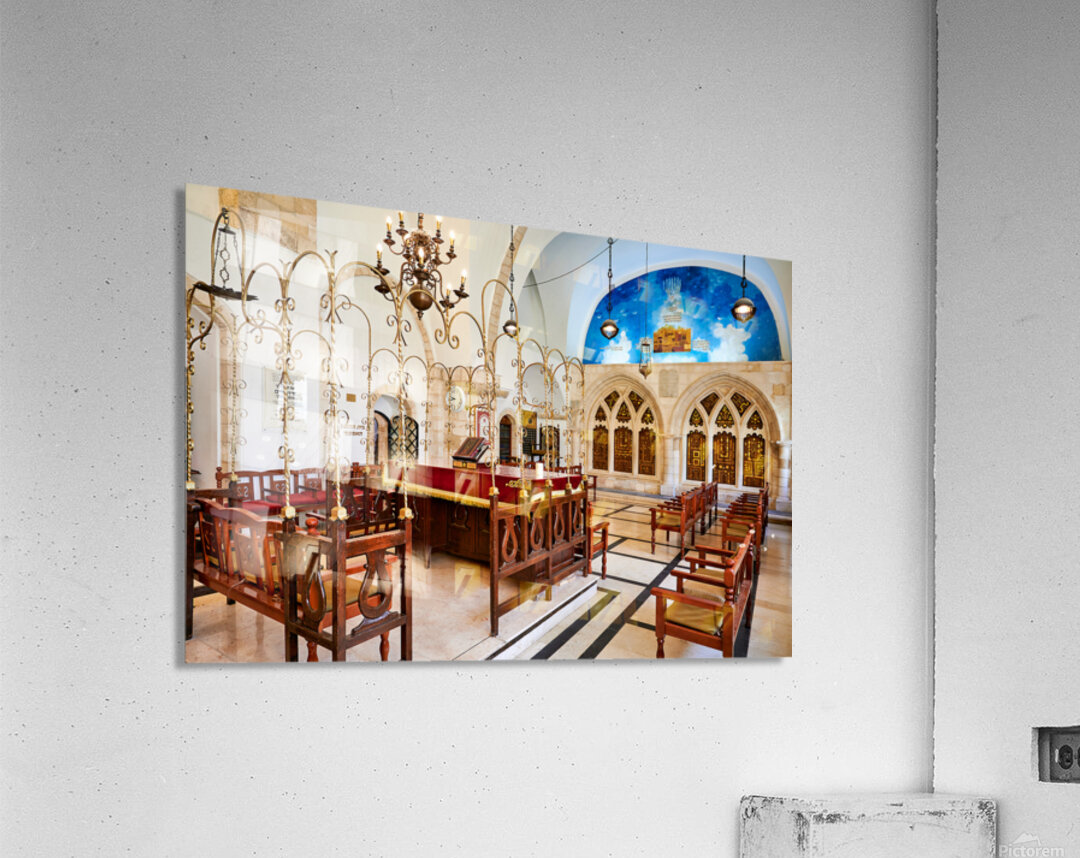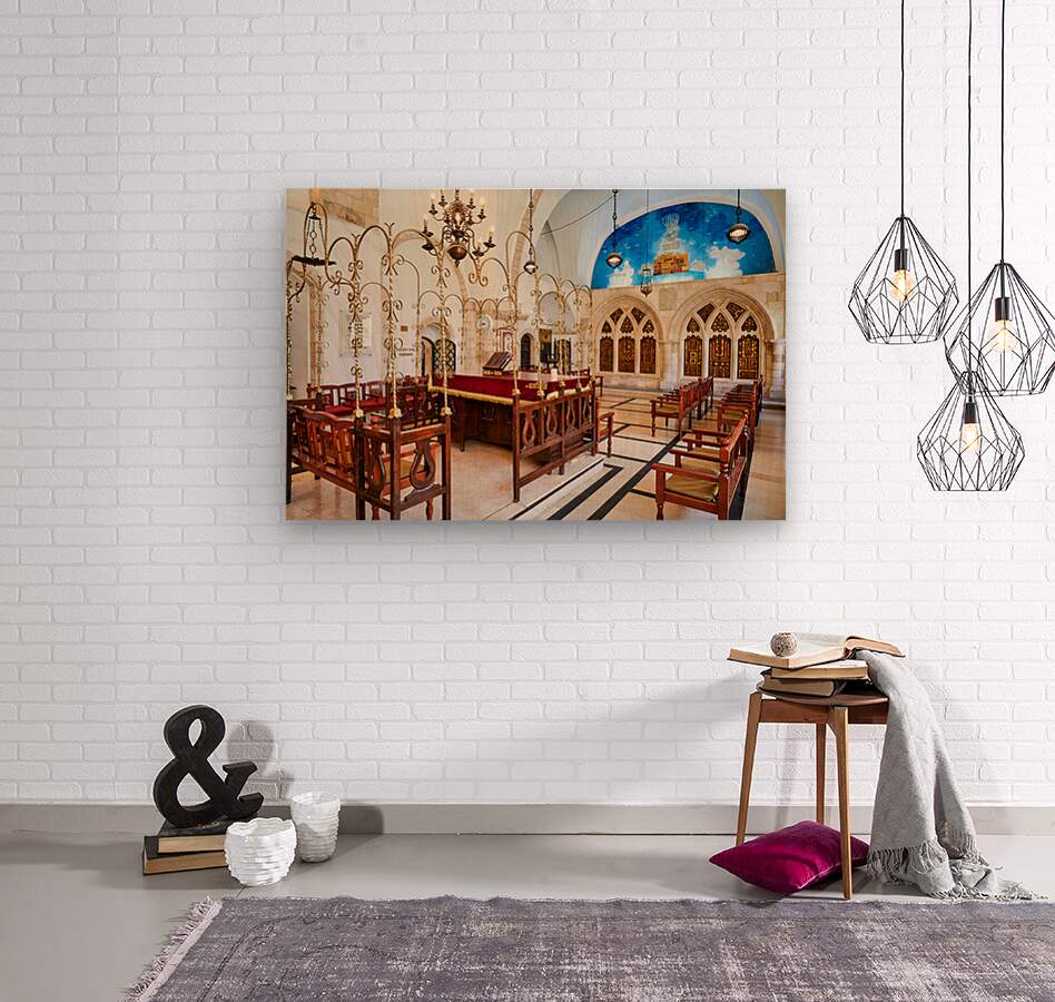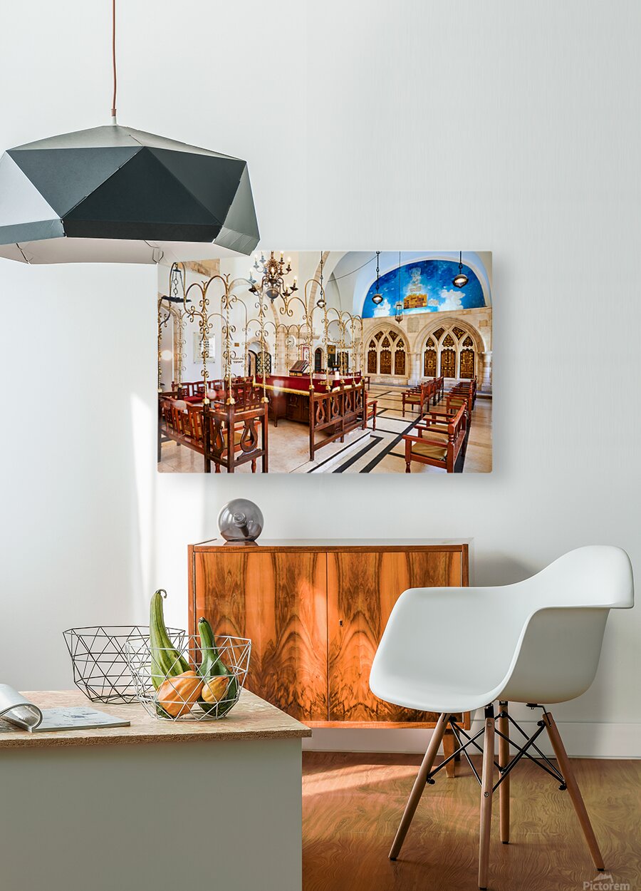 "Visitors explore four Sephardic synagogues in Jerusalem" in a framed print.