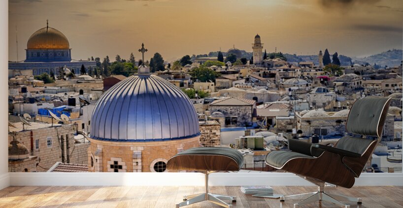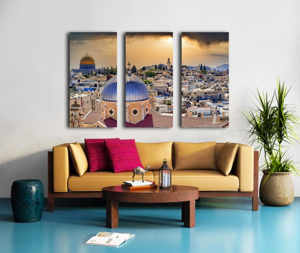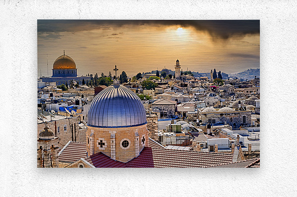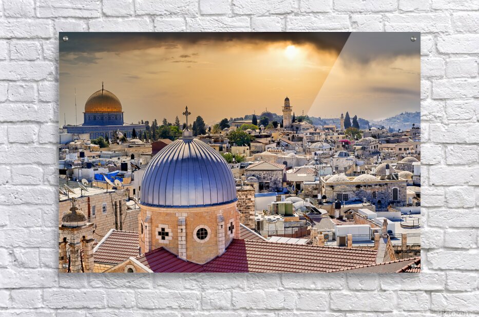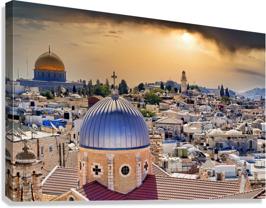 ABOUT THIS ARTWORK: DRAMATIC SUNSET OVER THE OLD CITY OF JERUSALEM IN ISRAEL