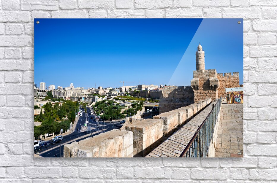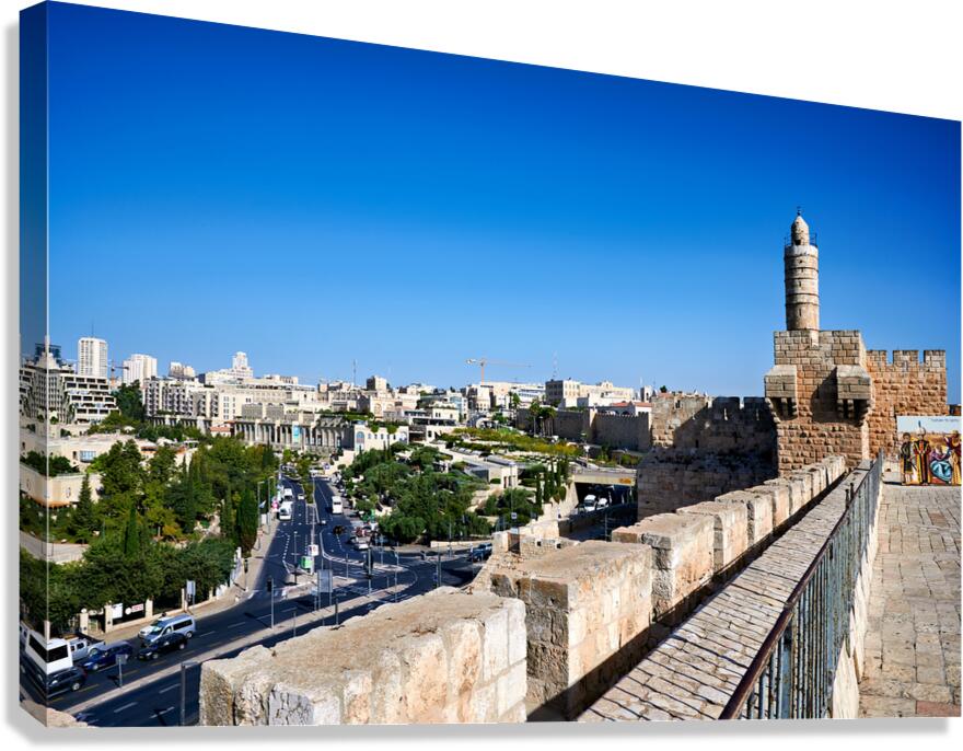 Get this artwork "View of the old city ramparts in Jerusalem during the day" in a framed print.
