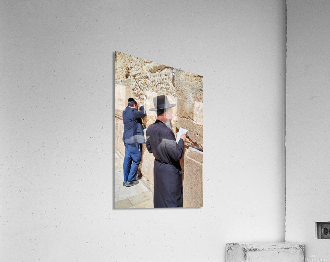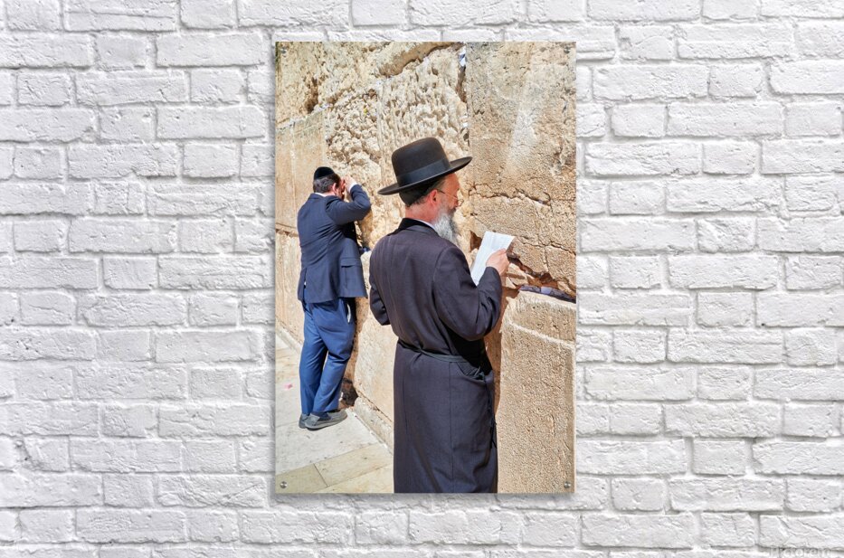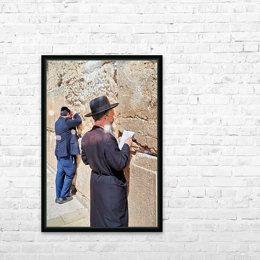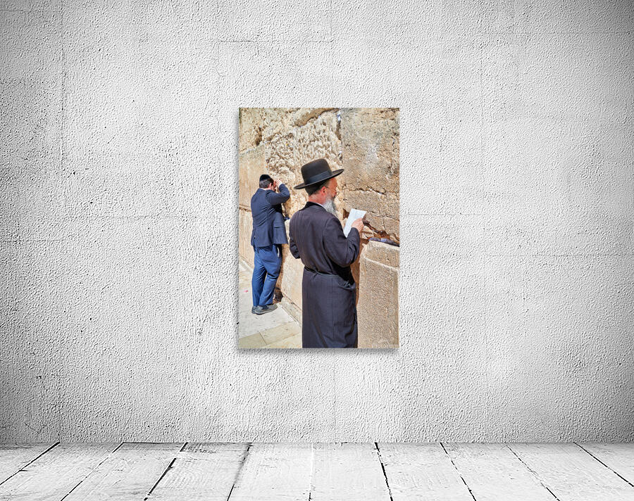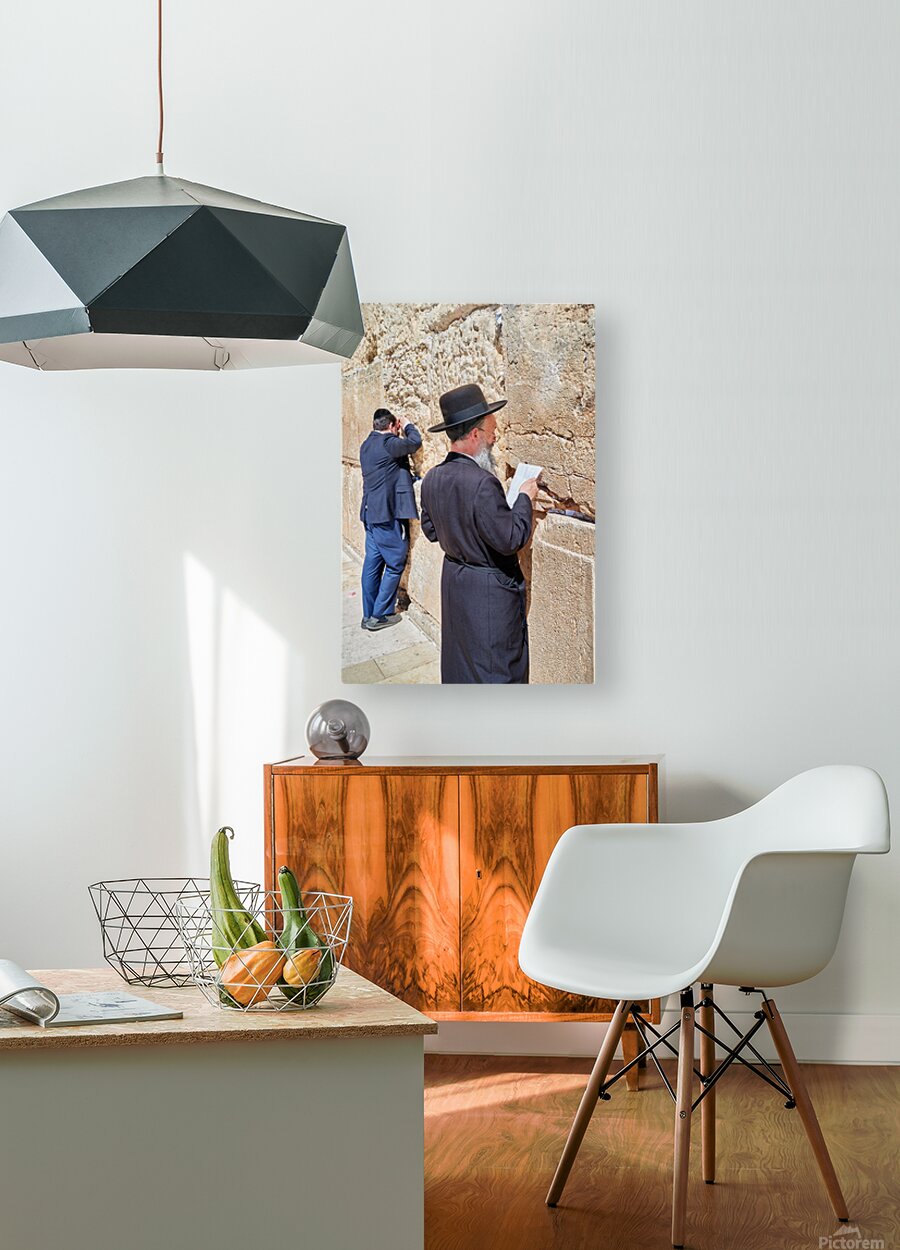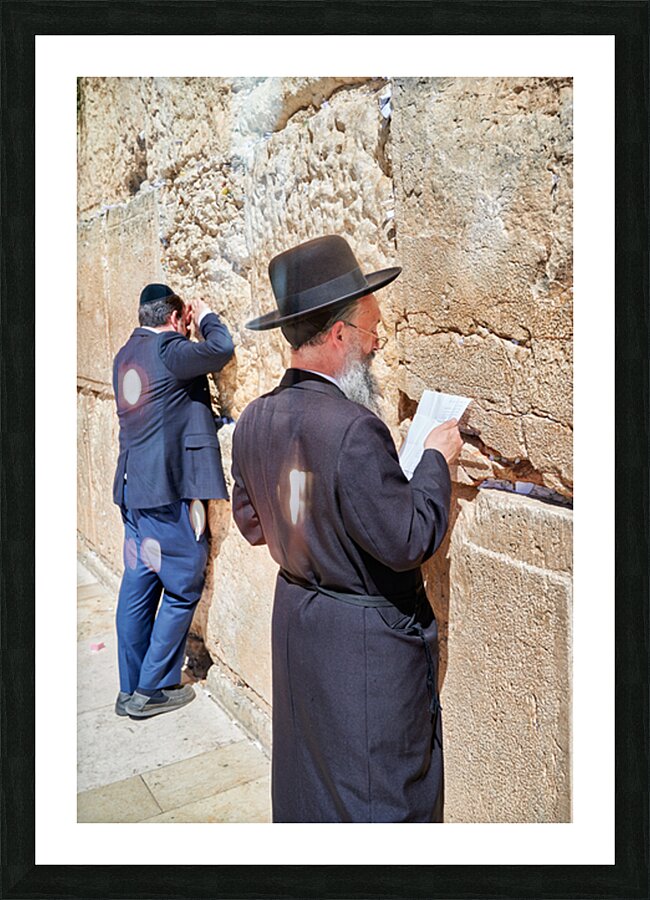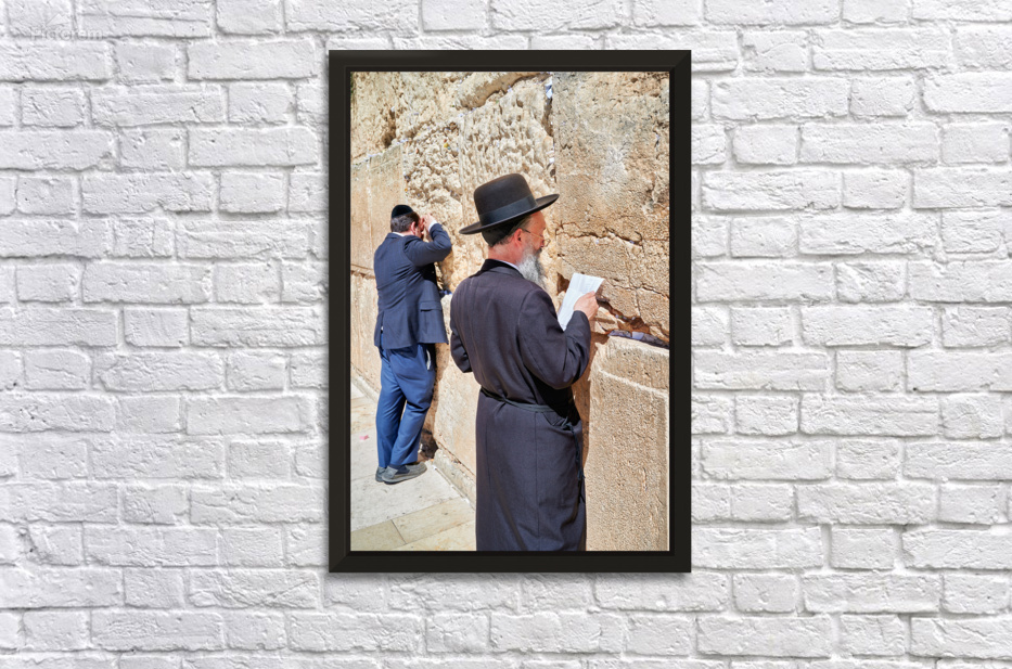 "Orthodox Jews praying at the Wailing Wall in Jerusalem" in a framed print.