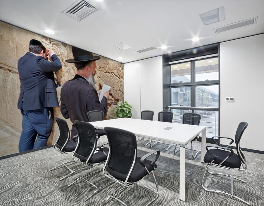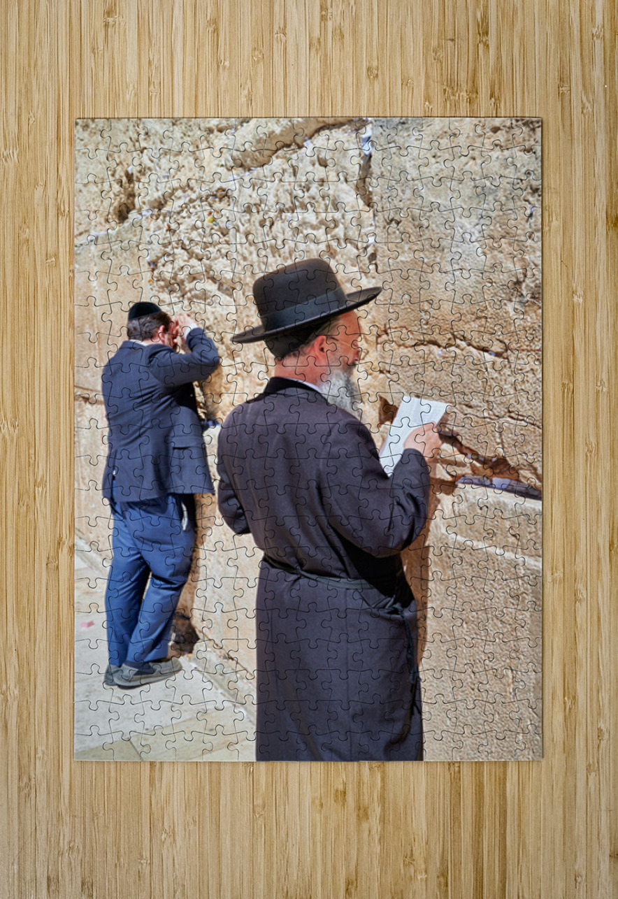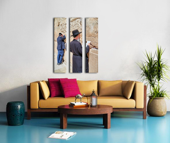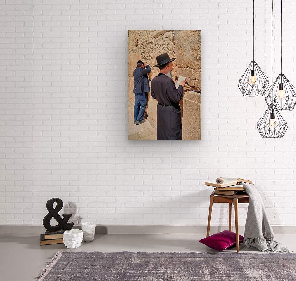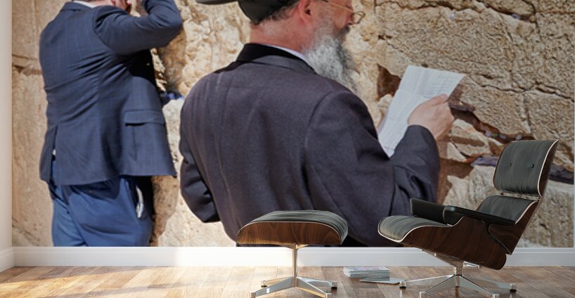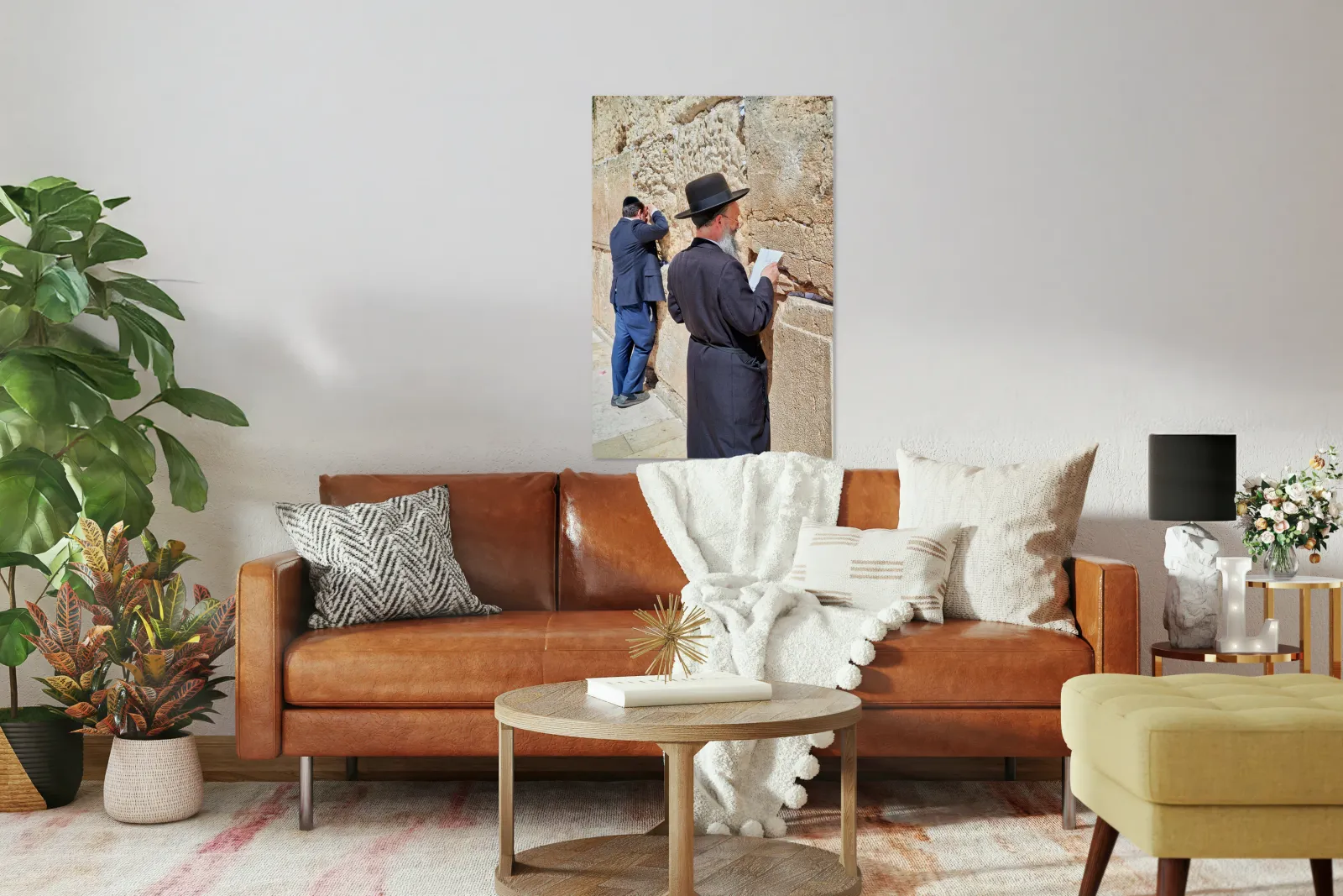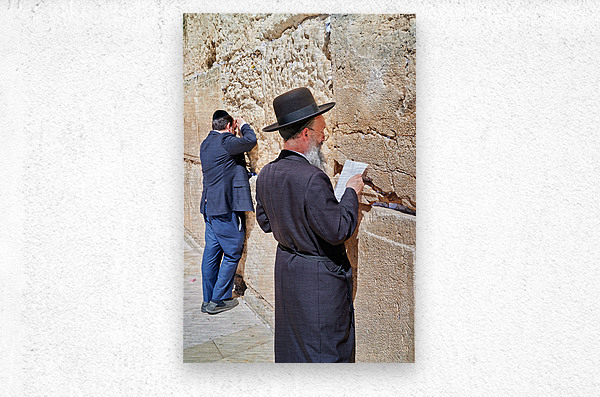 "Orthodox Jews praying at the Wailing Wall in Jerusalem" in a framed print.