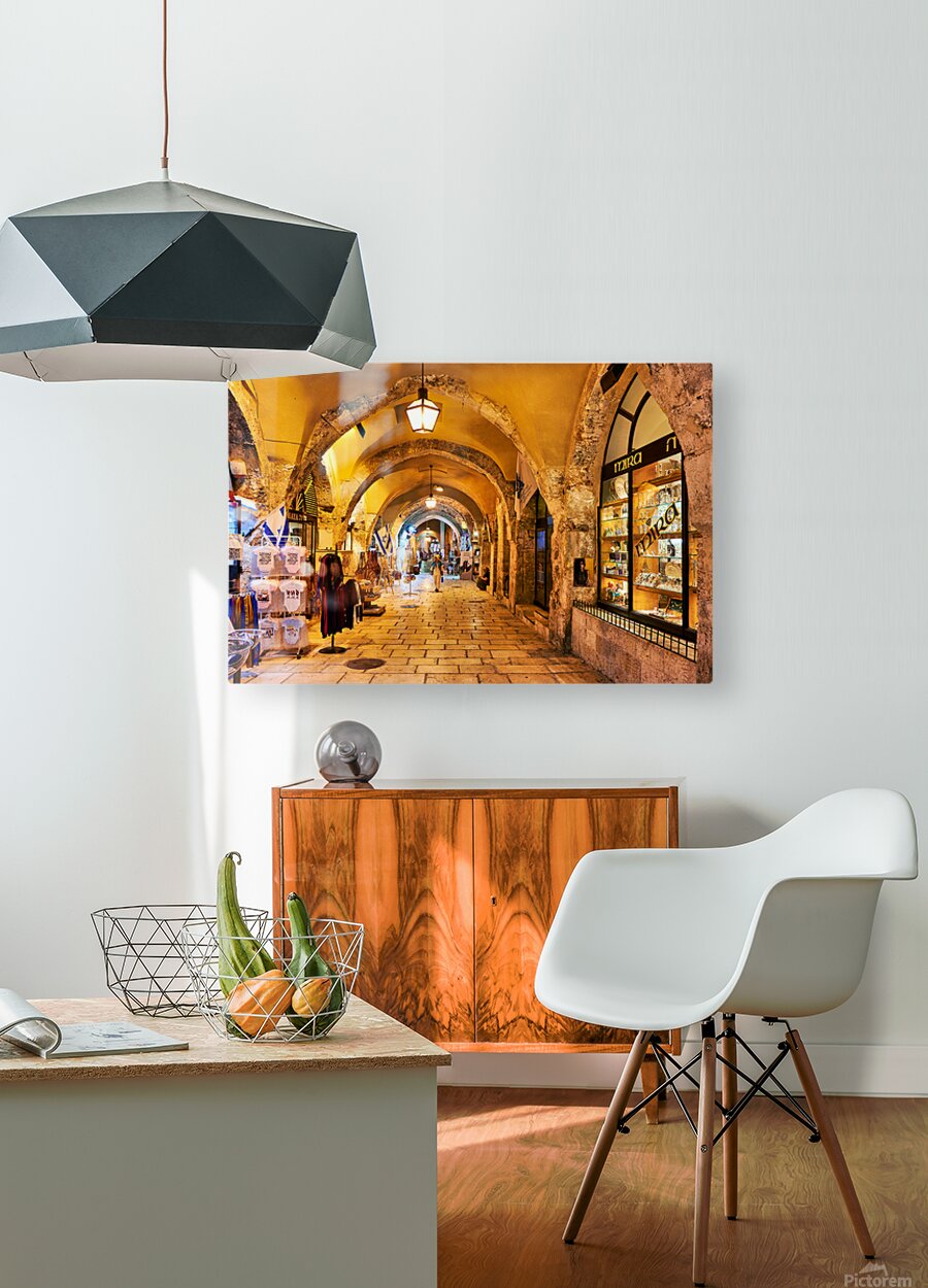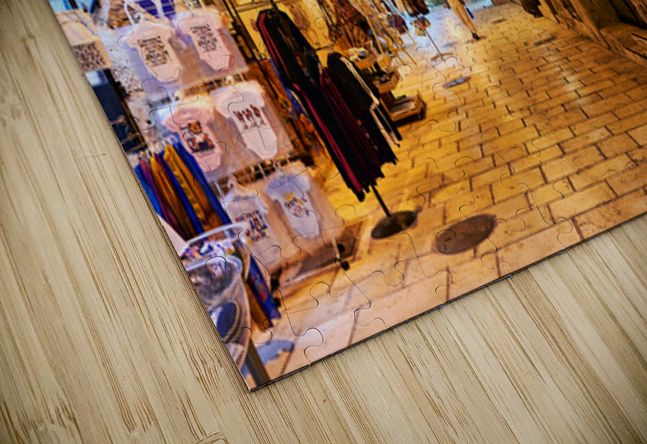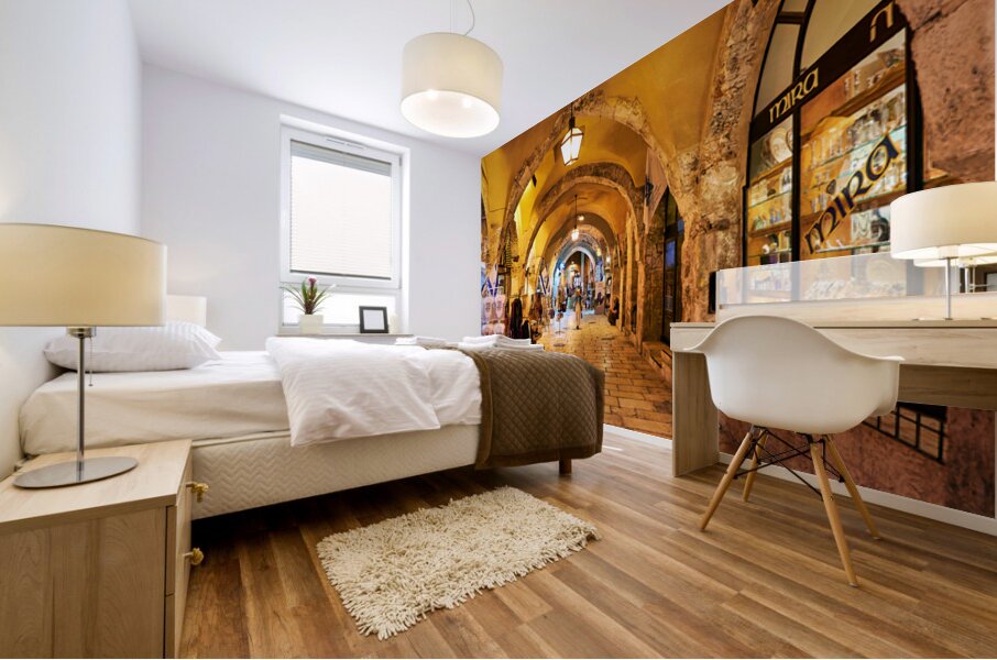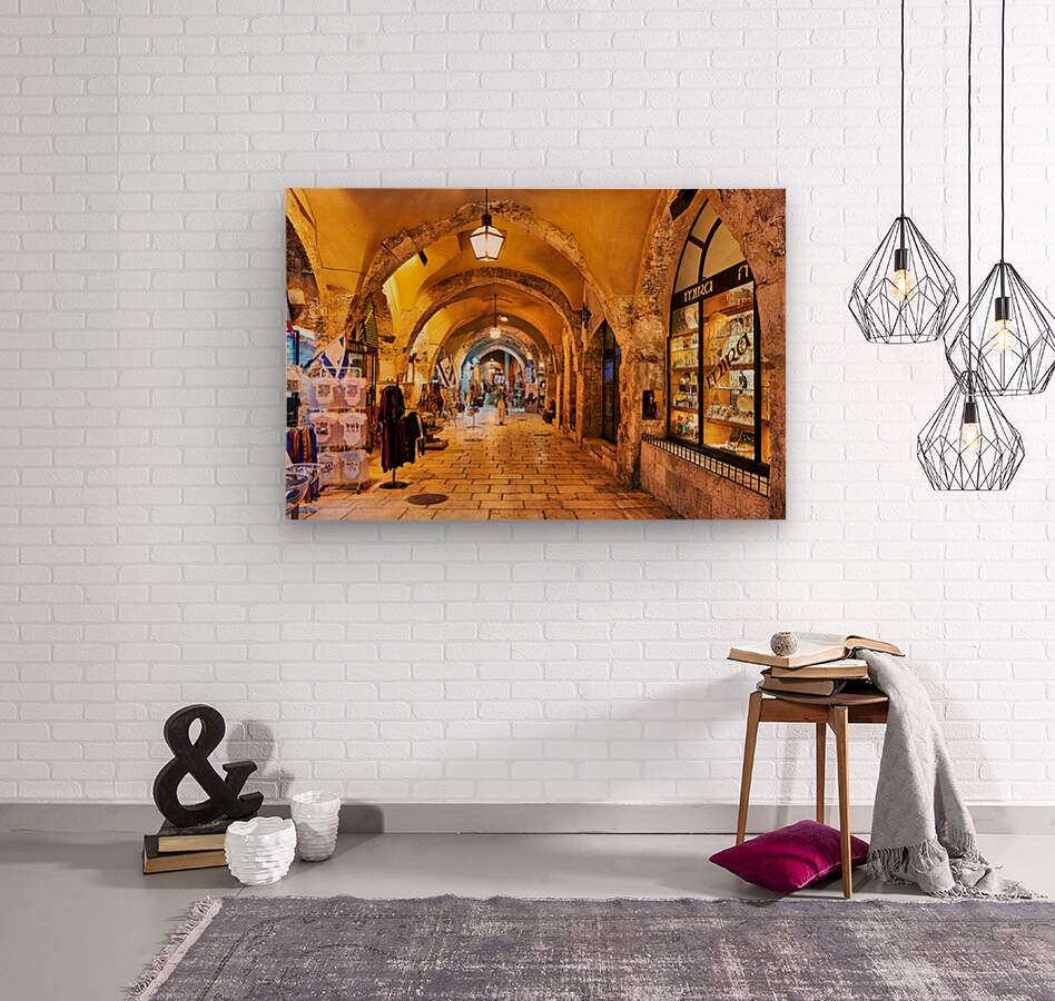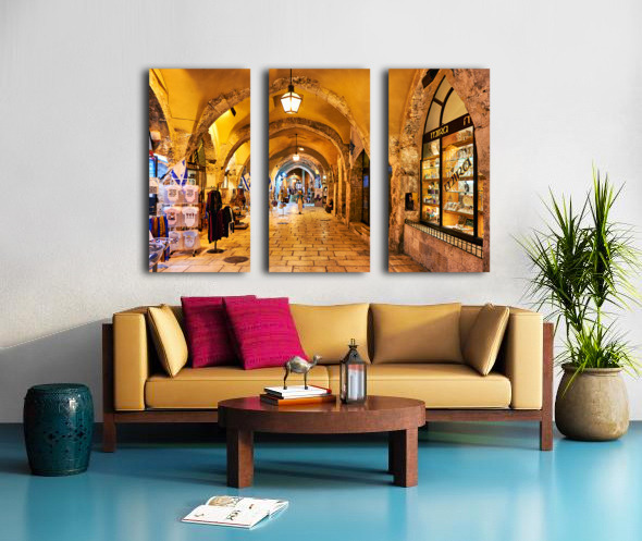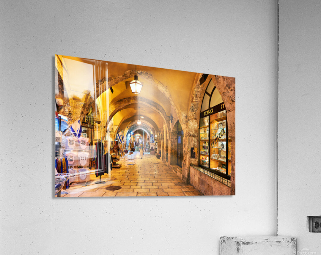 Visitors walk through the Cardo in the Jewish quarter of Jerusalem where shops display various items and local culture is on display.