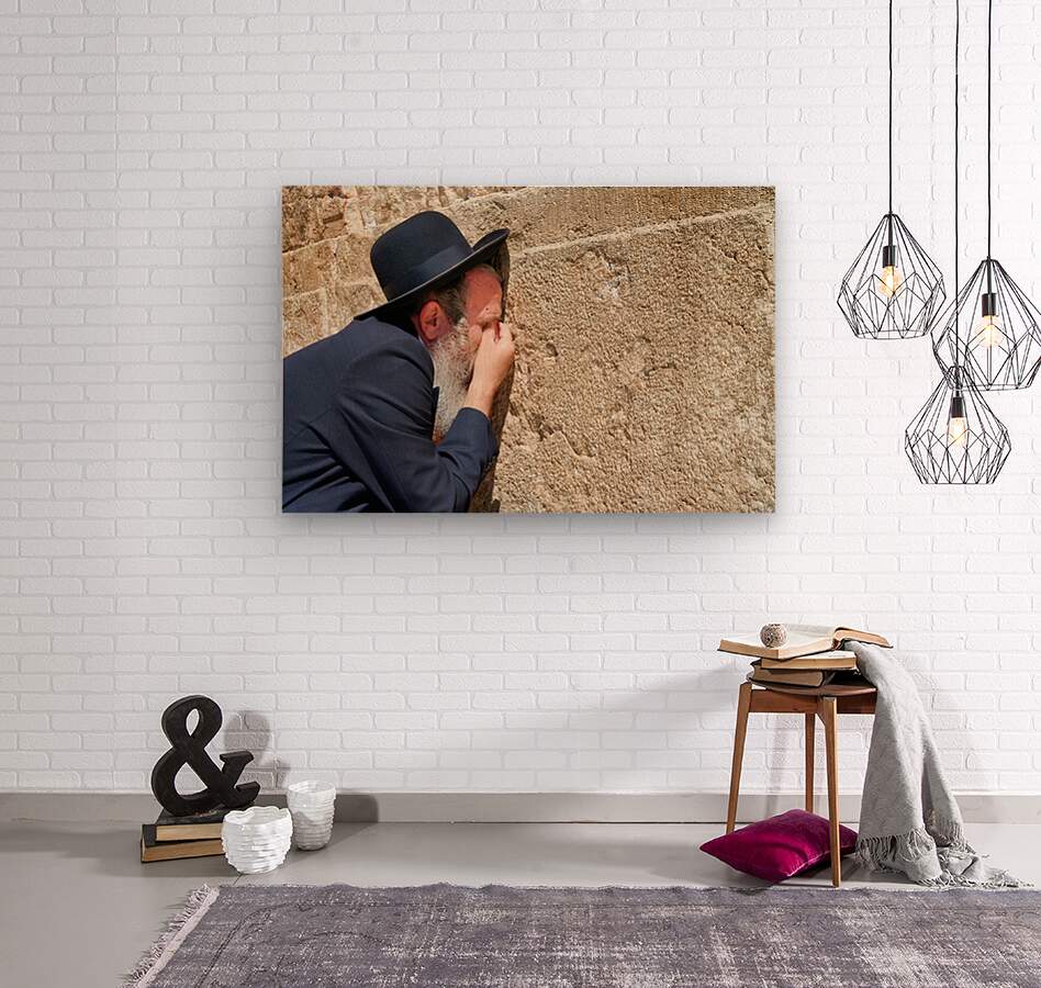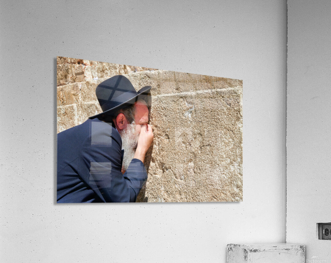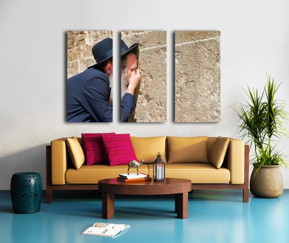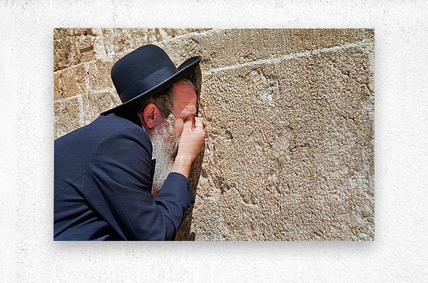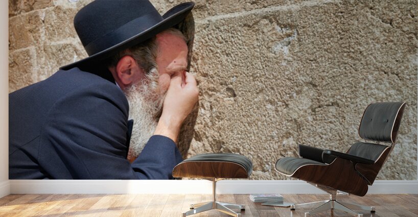 Orthodox Jews are praying at the Wailing Wall in Jerusalem. They show devotion and respect during this significant moment.