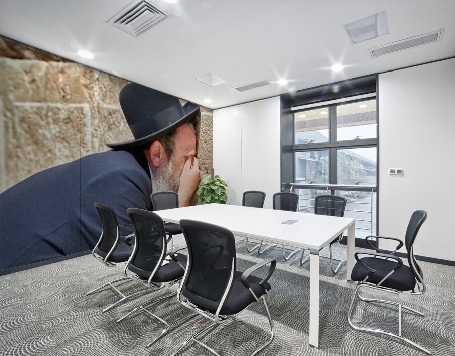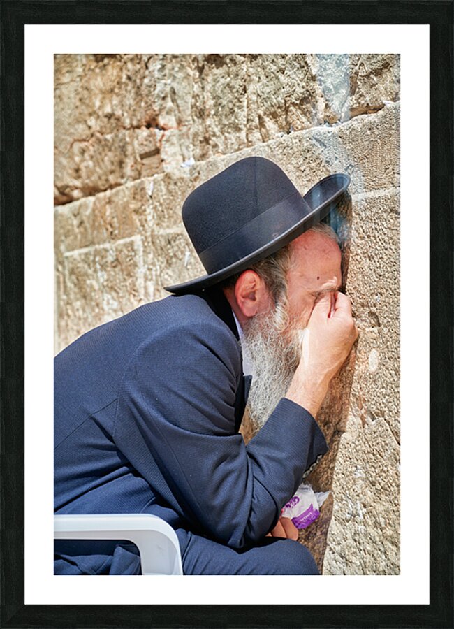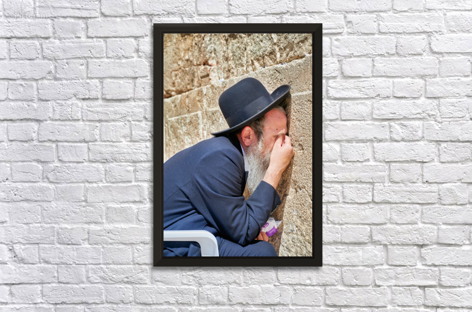 "Orthodox Jews pray at the Wailing Wall in Jerusalem" in a framed print.
