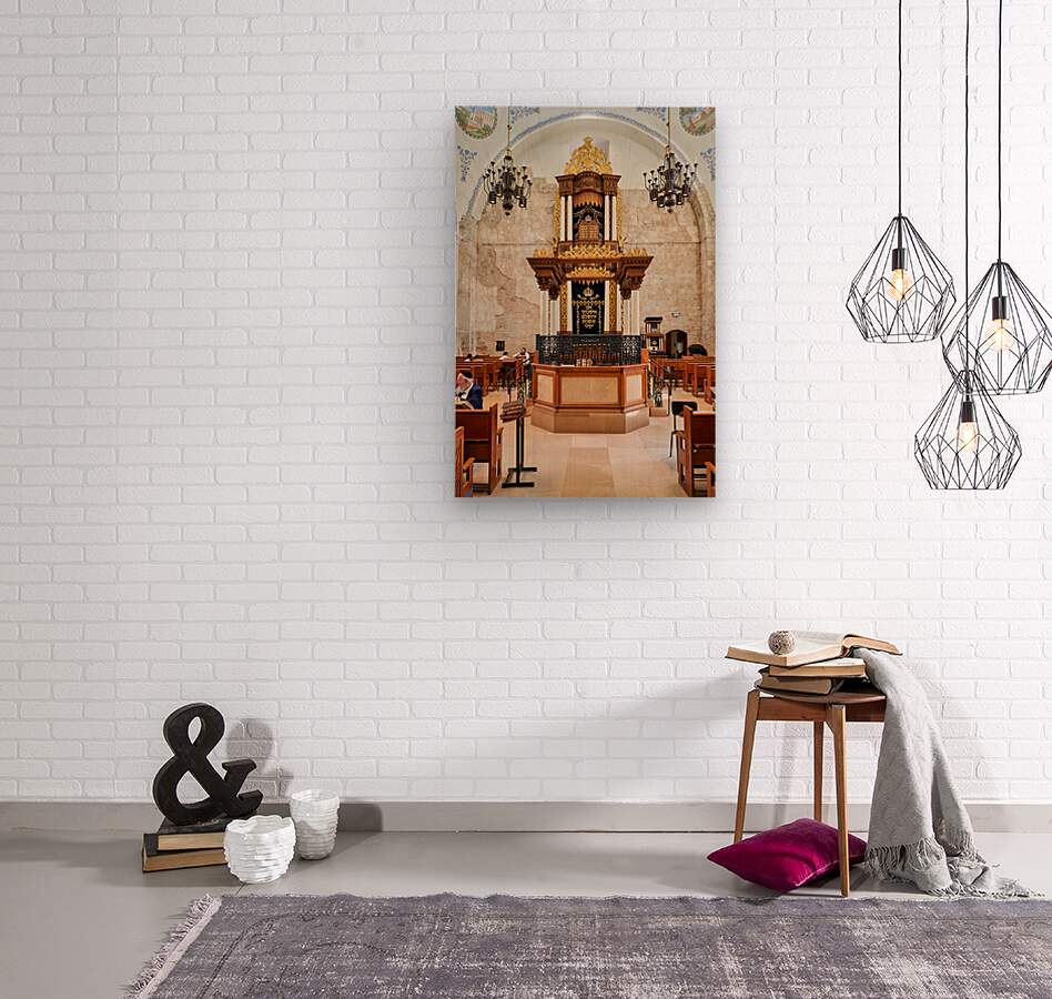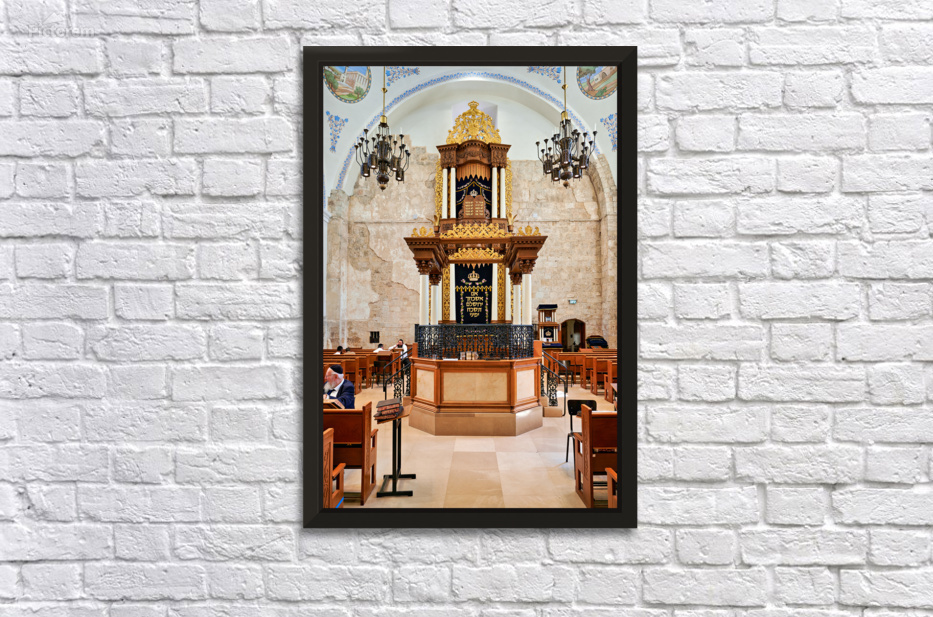 "Hurva Synagogue in Jerusalem with visitors and a Torah Ark" in a framed print.