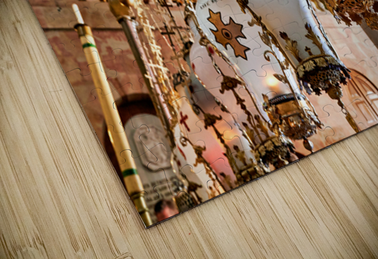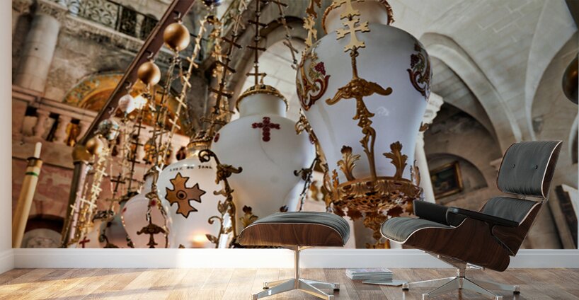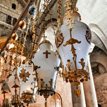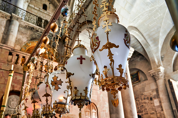 Visitors view the interior of the church of the Holy Sepulchre in Jerusalem. This site holds religious significance for many people.