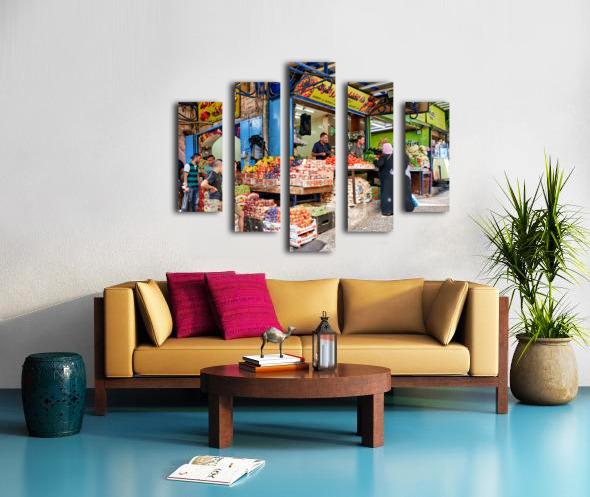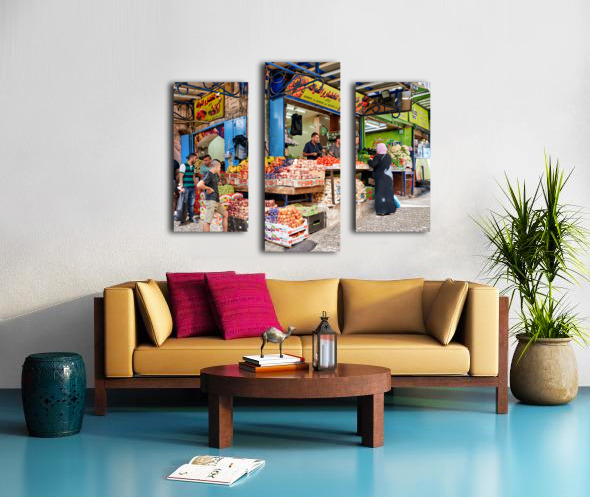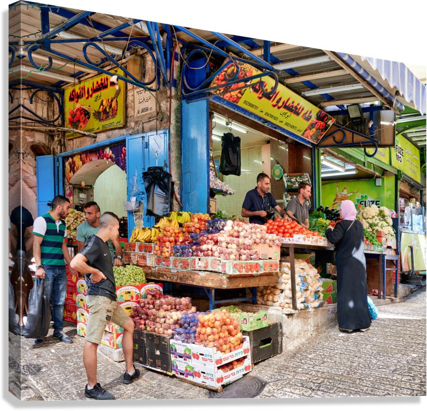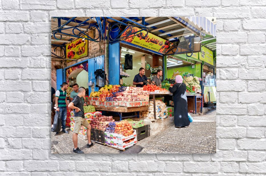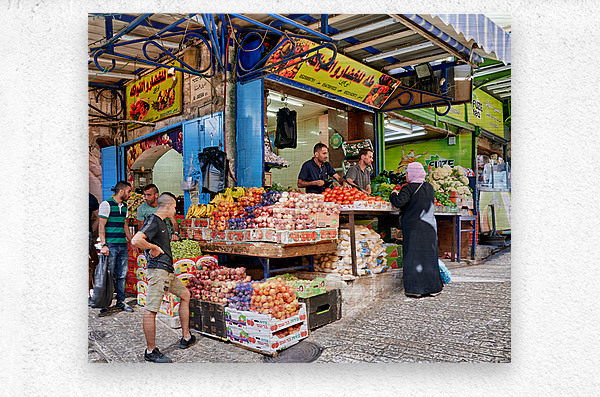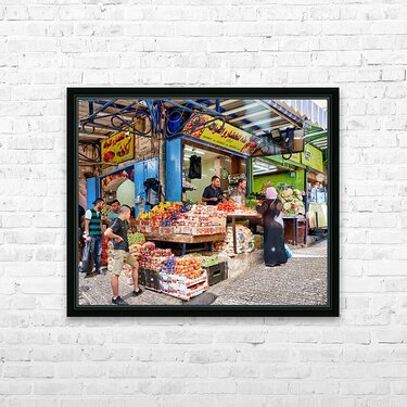 Get this artwork "Greengrocer stall in the old city of Jerusalem busy with shopper" in a framed print.