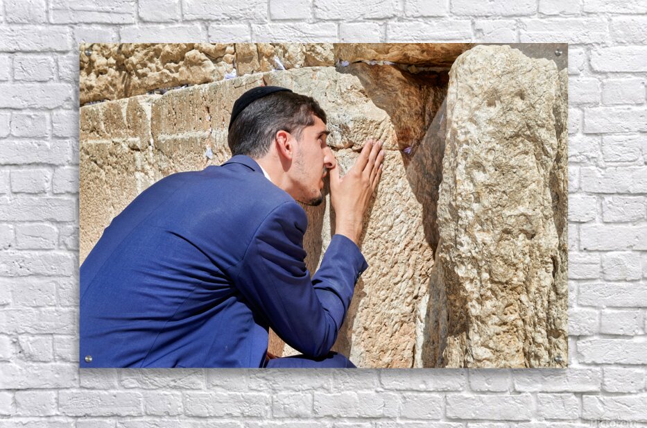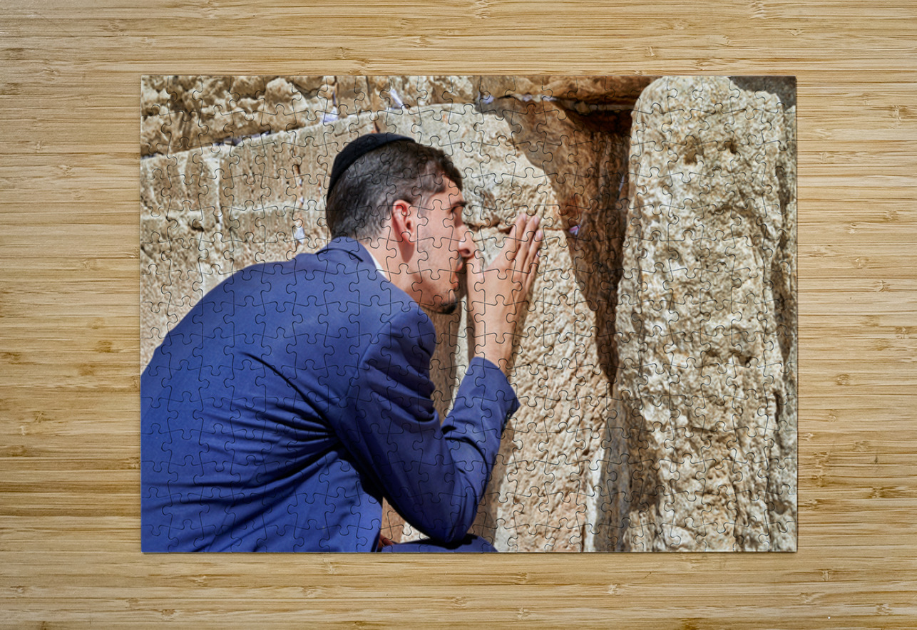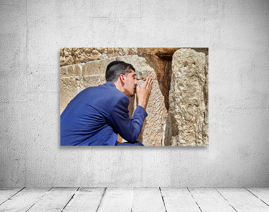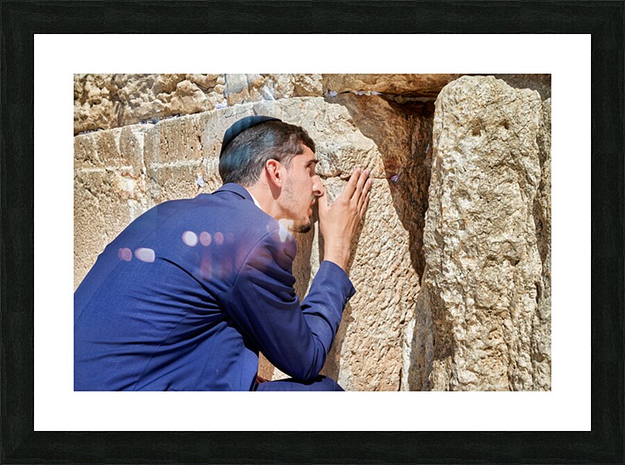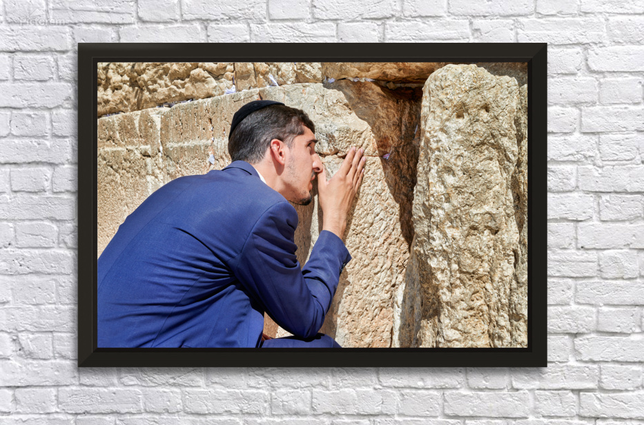 Orthodox Jews pray at the Wailing Wall in Jerusalem placing notes in the cracks of the stones during a holy time.