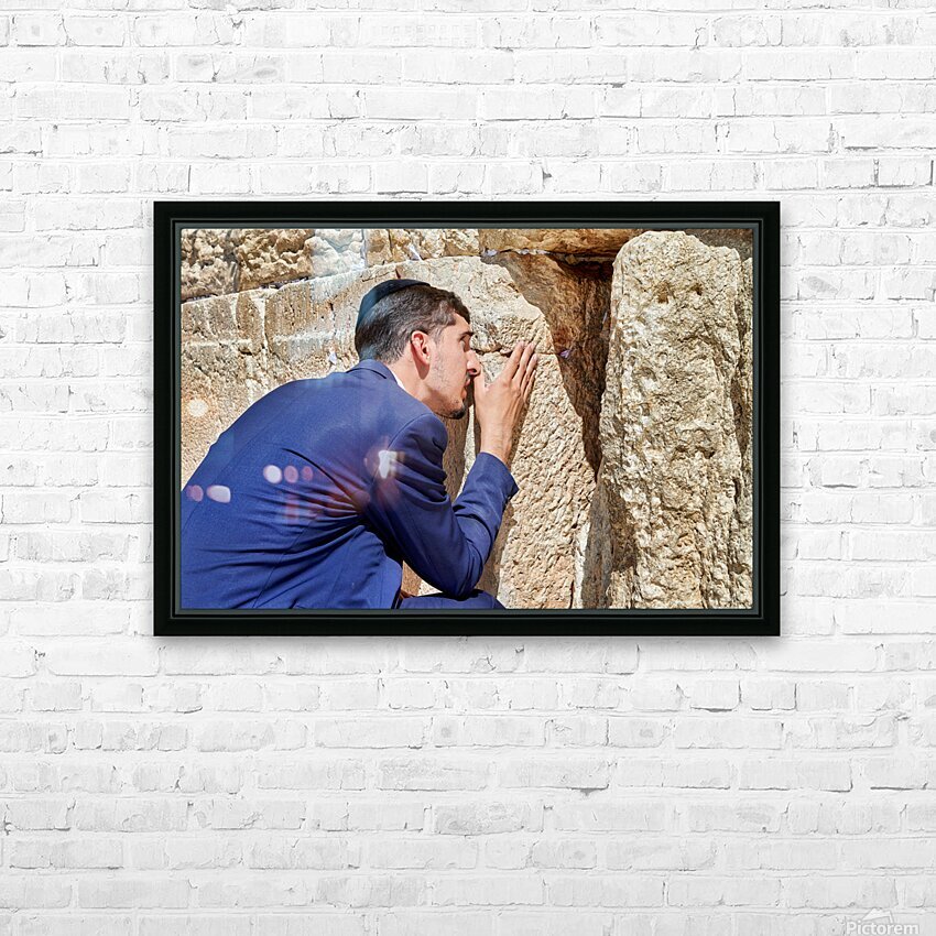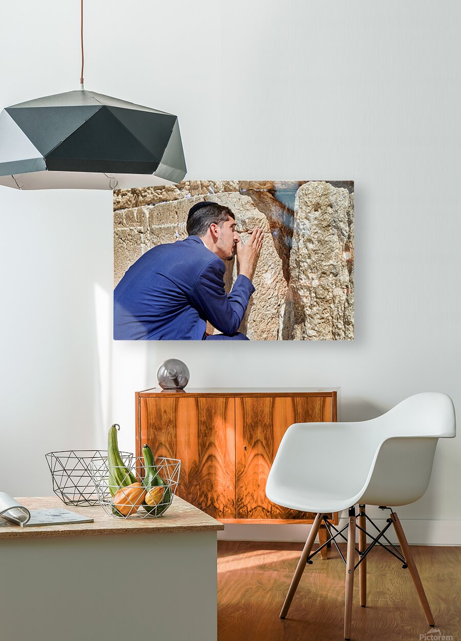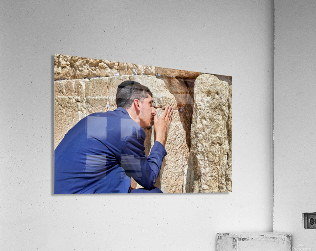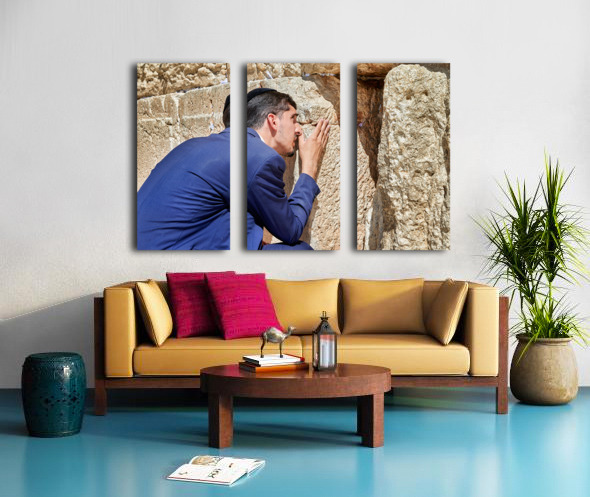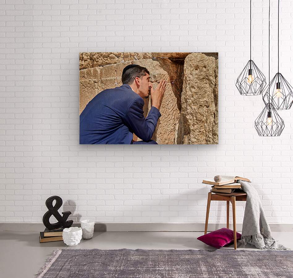 Orthodox Jews pray at the Wailing Wall in Jerusalem placing notes in the cracks of the stones during a holy time.