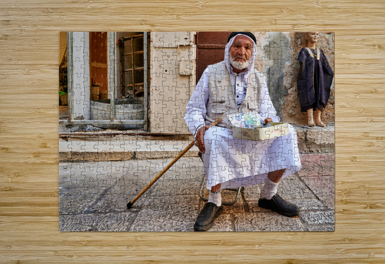 Old man sits in the old city of Jerusalem asking for help Marco Brivio Puzzle