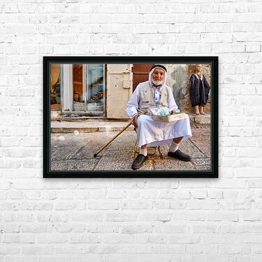Get this artwork "Old man sits in the old city of Jerusalem asking for help" in a framed print.