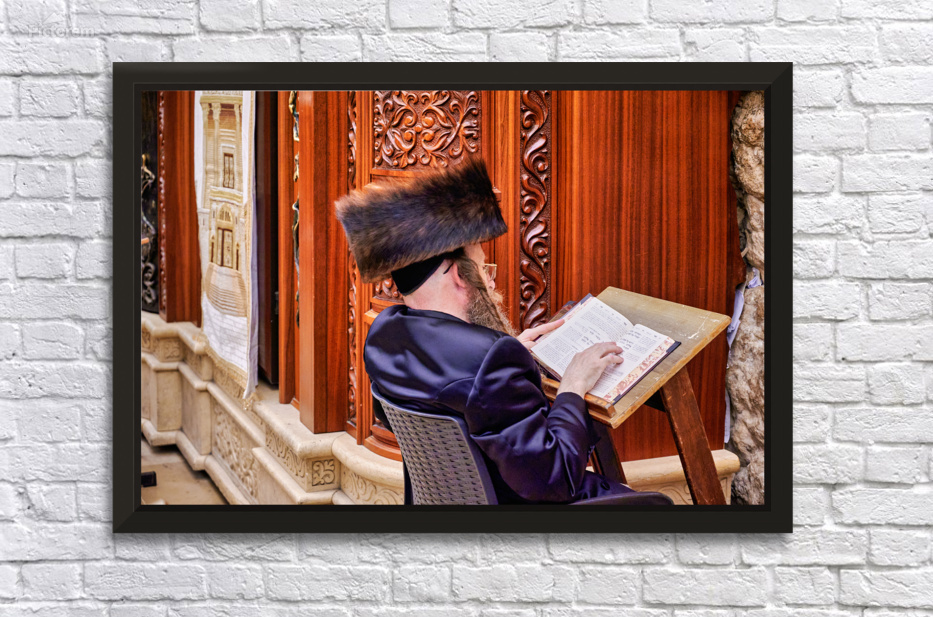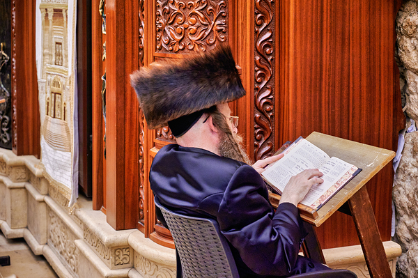 Orthodox Jews gather at the Wailing Wall in Jerusalem to pray and read religious texts. This activity represents a deep spiritual connection.