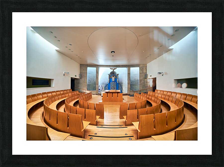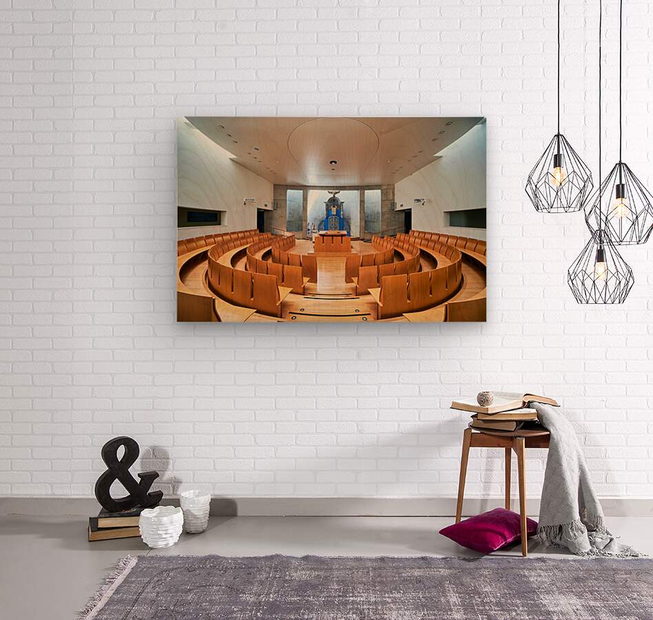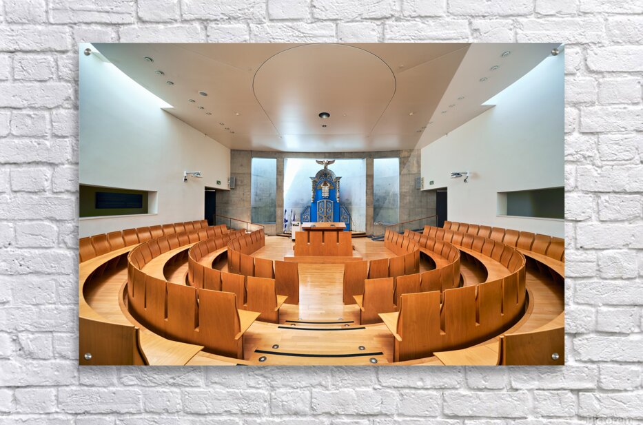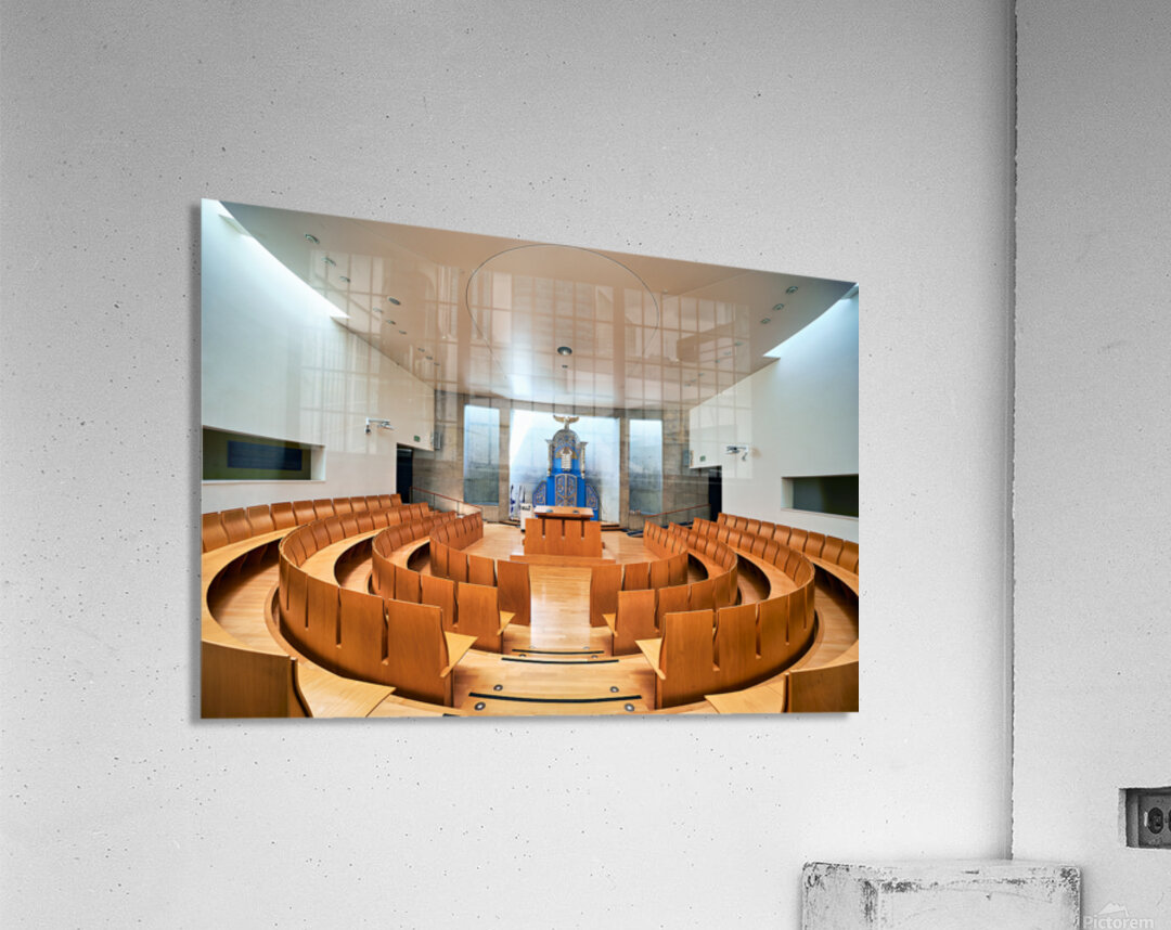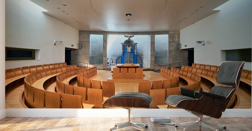 Visitors see the synagogue at Yad Vashem in Jerusalem. This place honors the memory of Holocaust victims through reflection and remembrance.