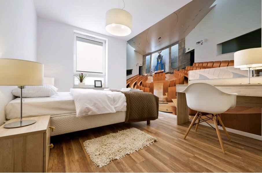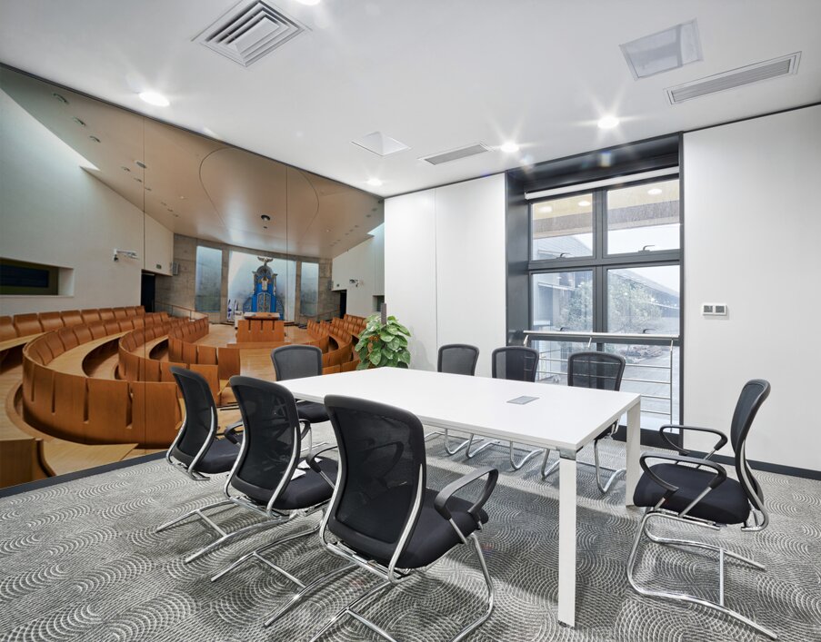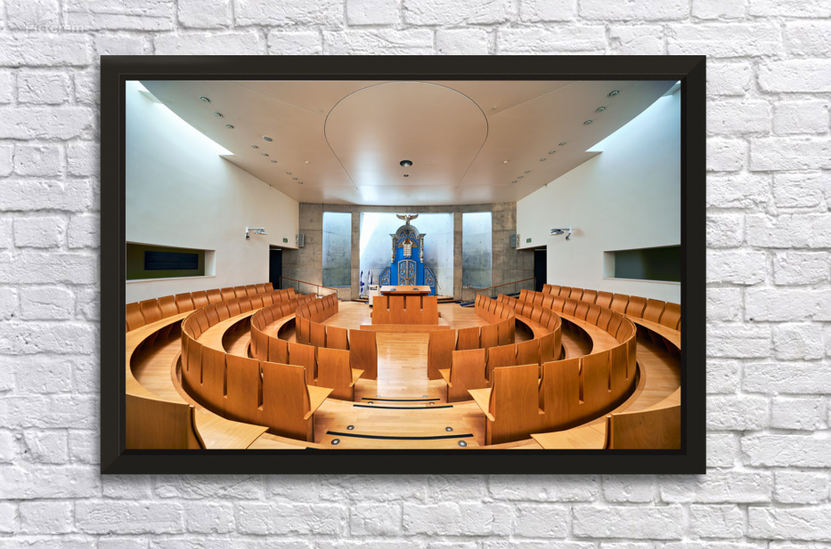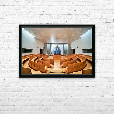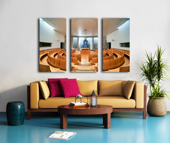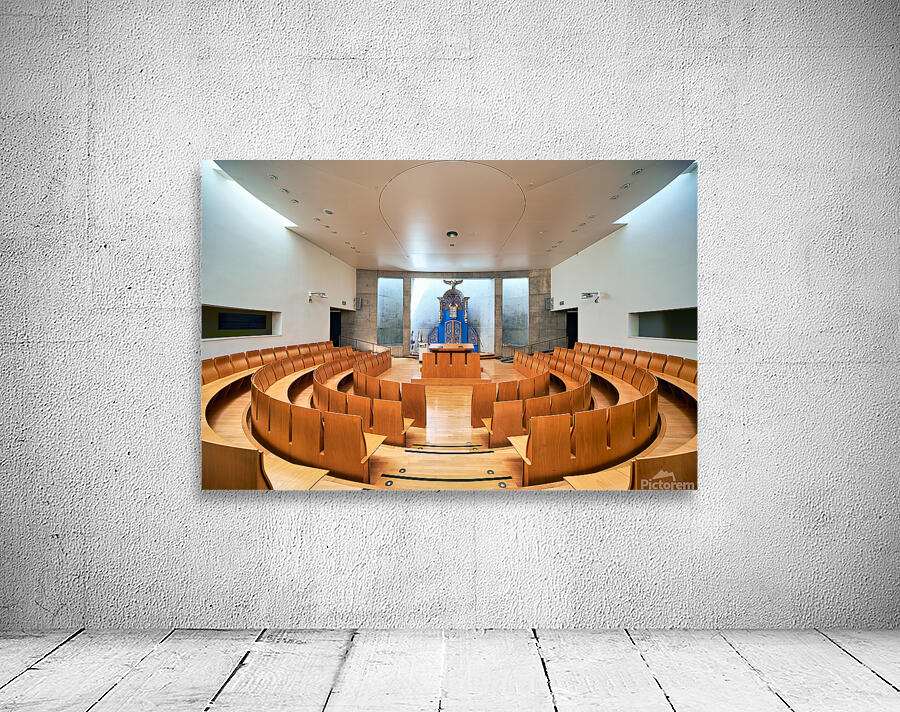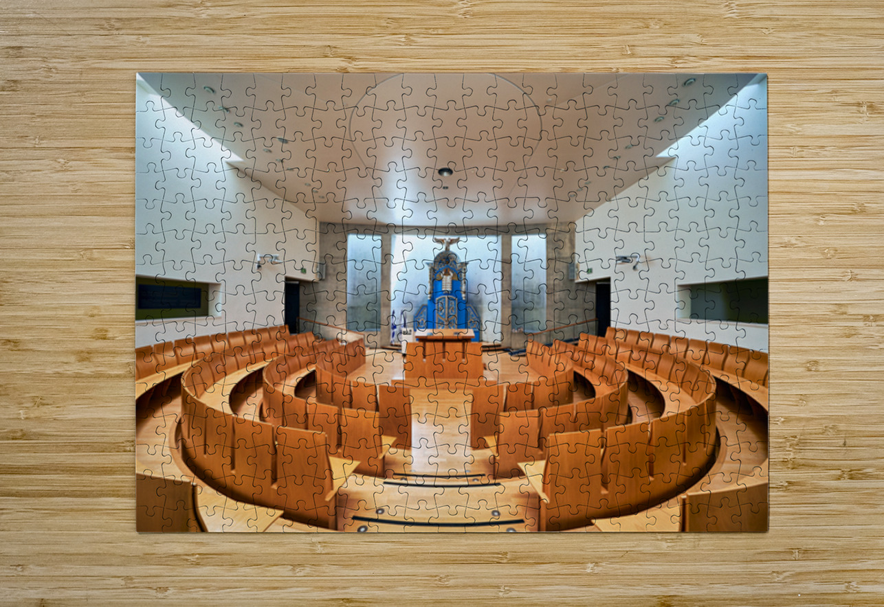 Visitors see the synagogue at Yad Vashem in Jerusalem. This place honors the memory of Holocaust victims through reflection and remembrance.