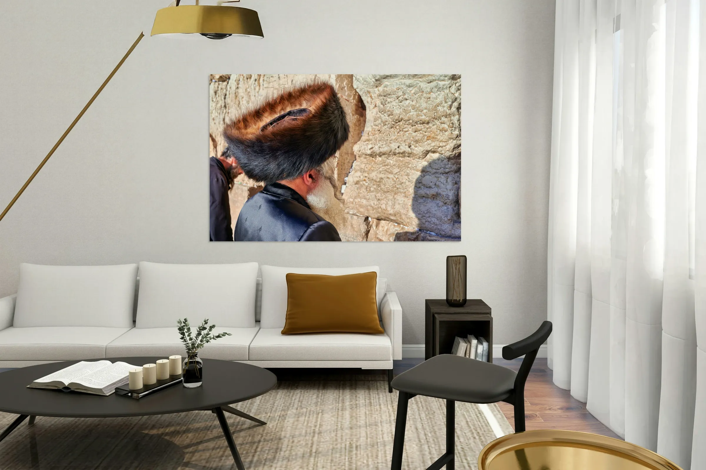 ABOUT THIS ARTWORK: ORTHODOX JEWS PRAYING AT THE WAILING WALL IN JERUSALEM ISRAEL