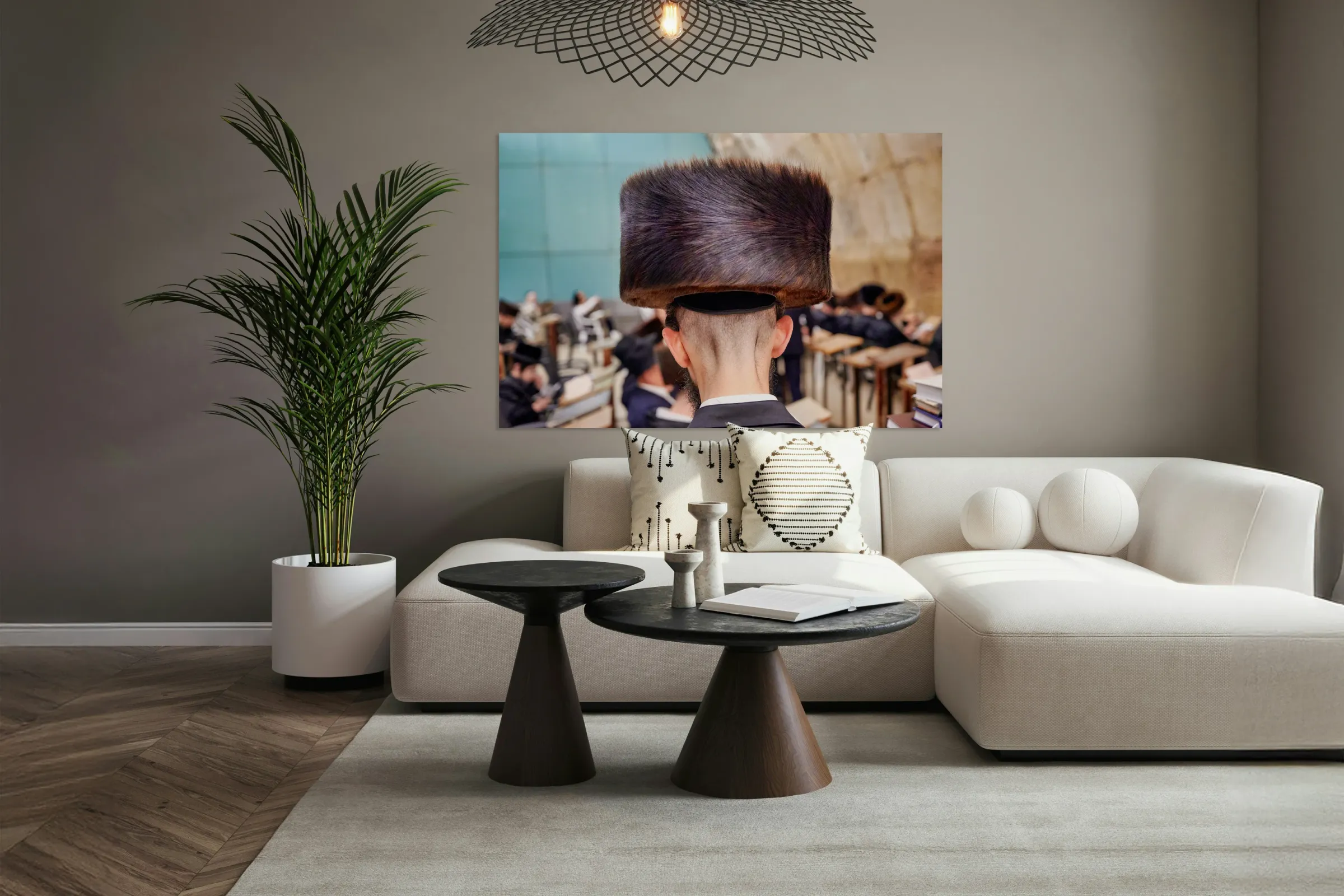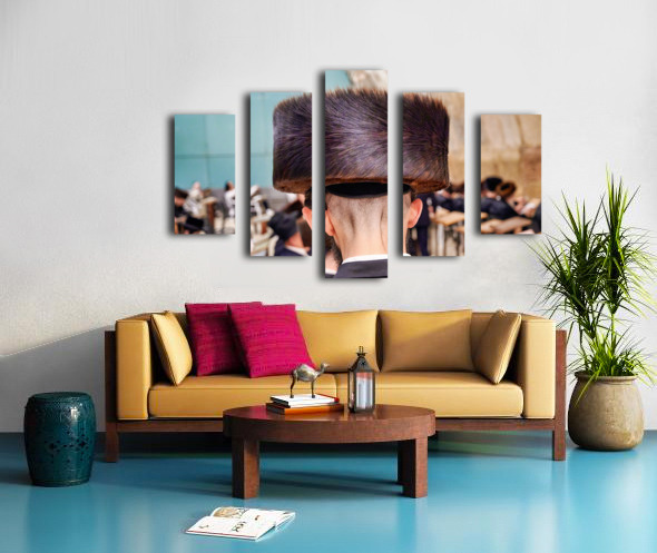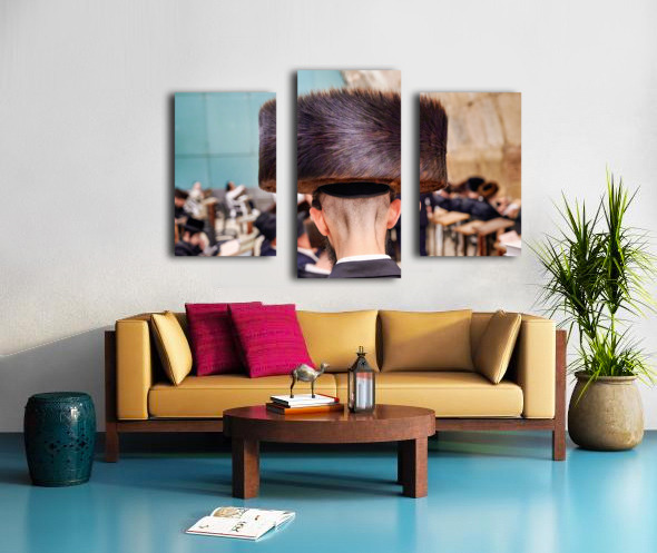 Get this artwork "Jewish men study in Jerusalem at the Western Wall" in a framed print.