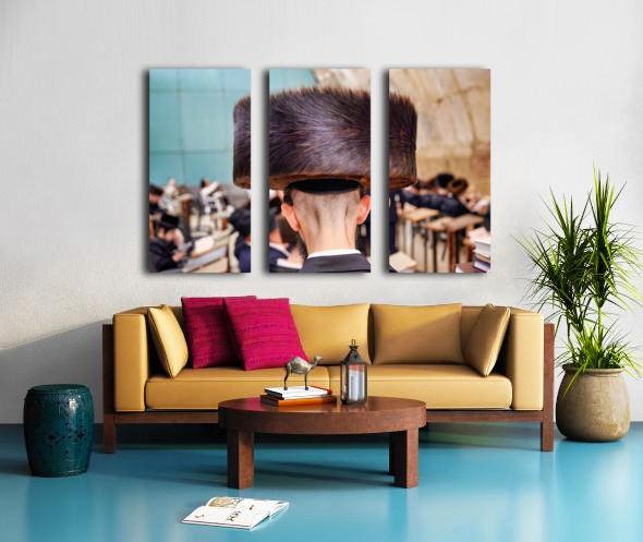 Jewish men study in Jerusalem at the Western Wall Frame print