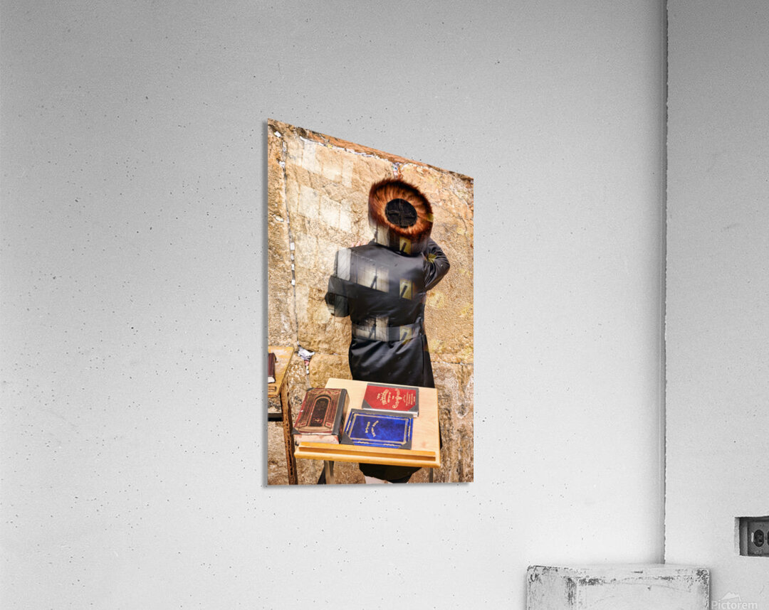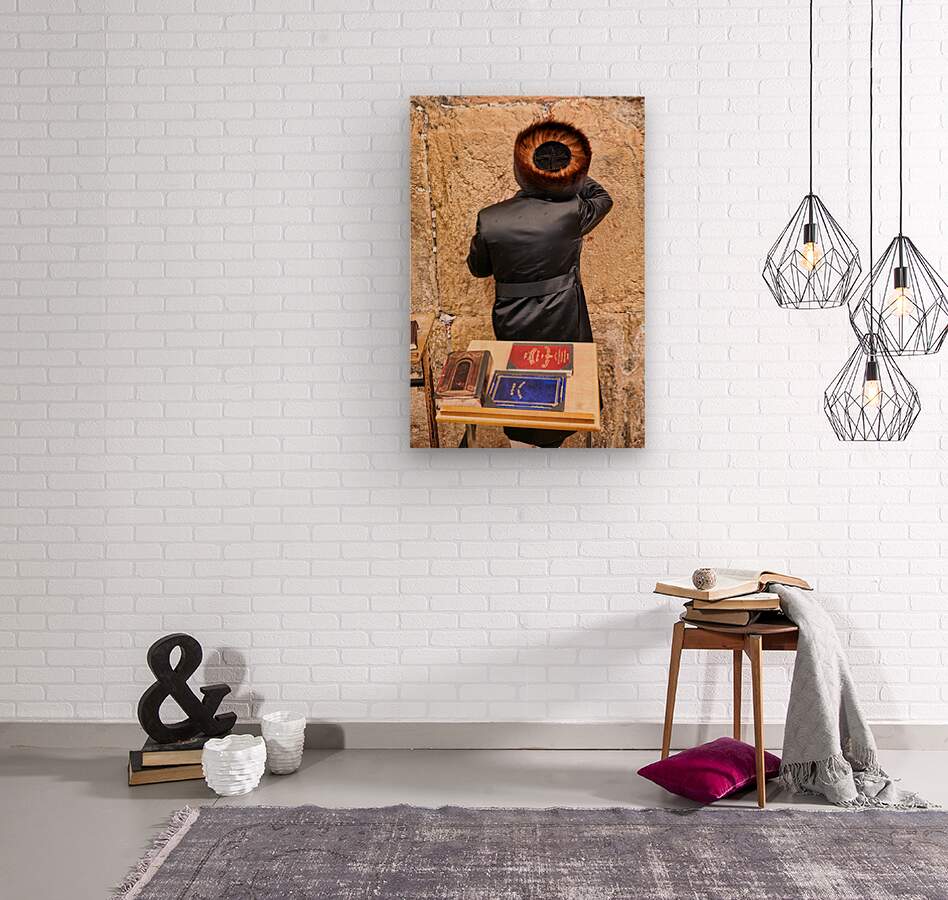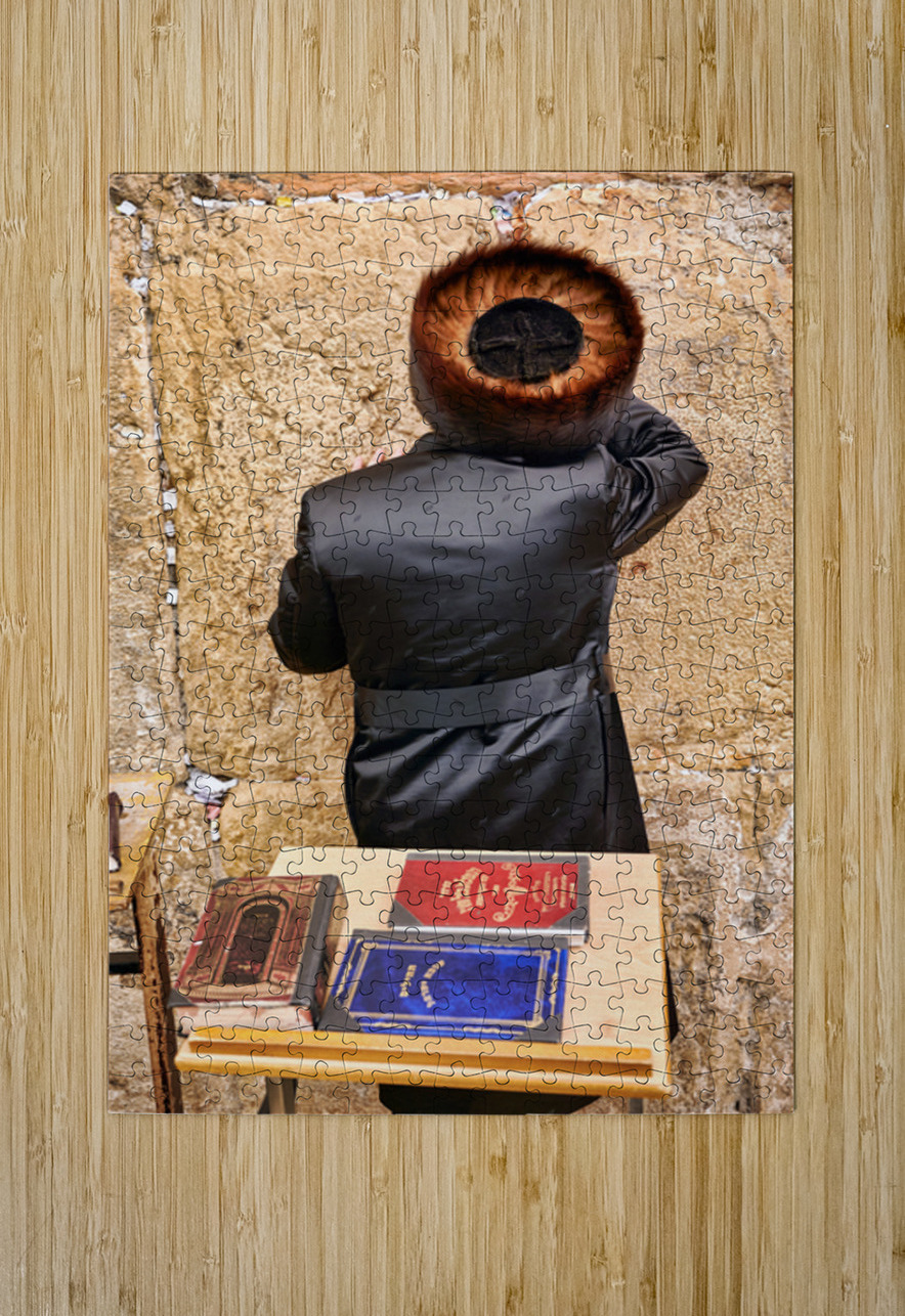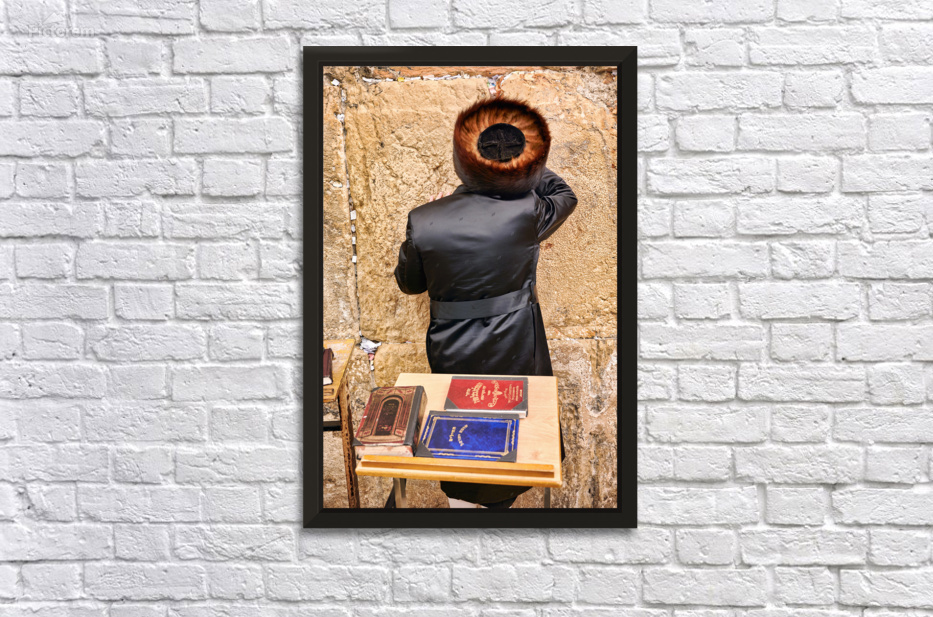 Orthodox Jews gather at the Western Wall in Jerusalem to pray and observe traditions. Books and prayer materials are present on the table.