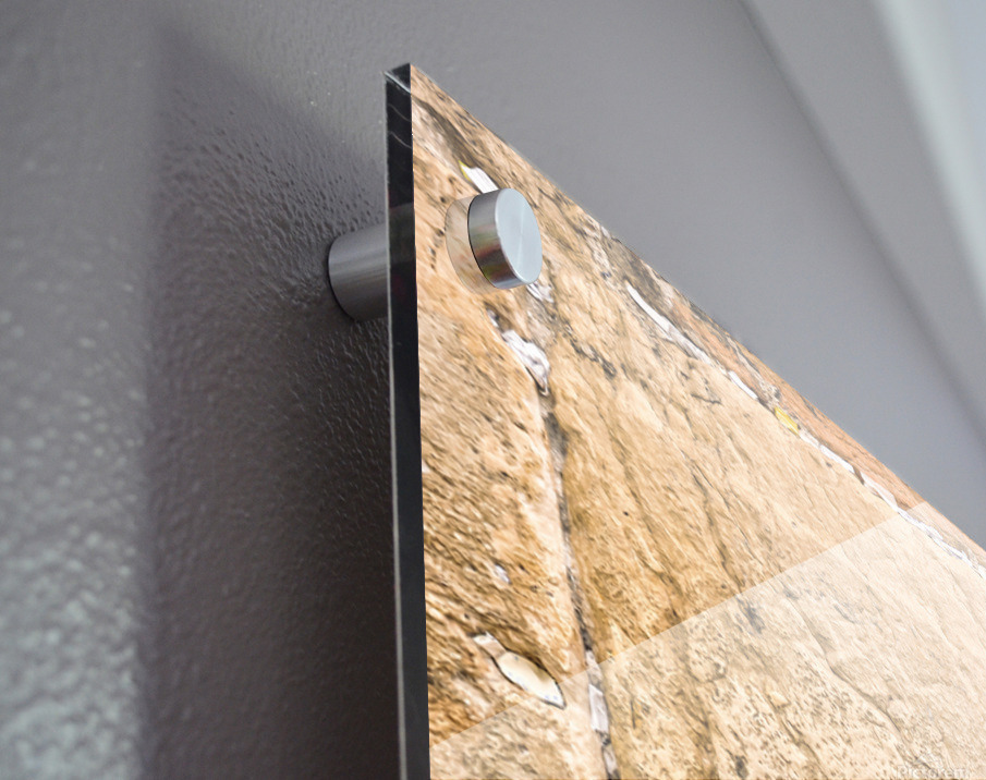 Printed to the edge - Ready to hang - provided with 4 premium polished aluminum stand off ( wall screws and mounting hardware provided )
