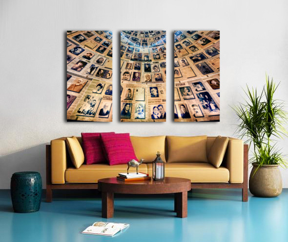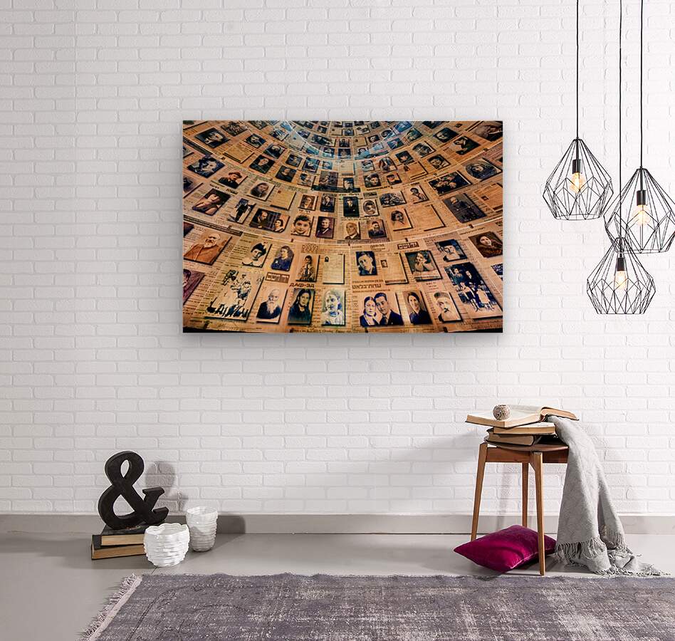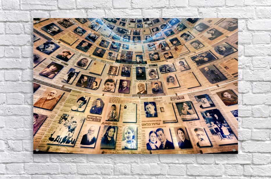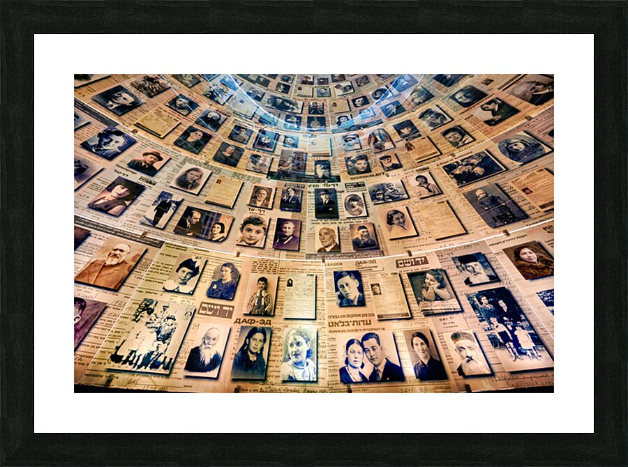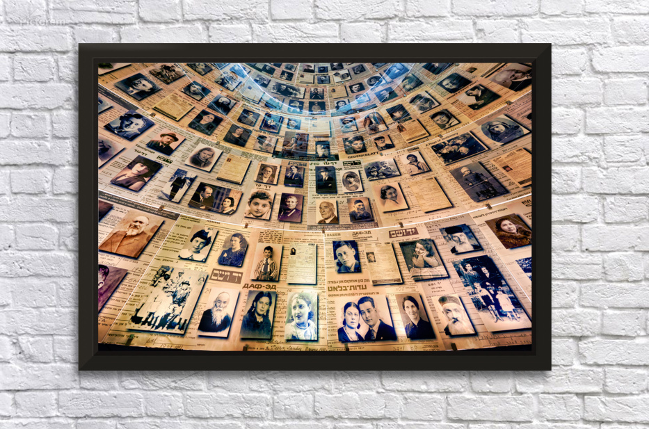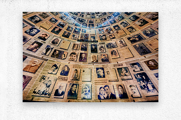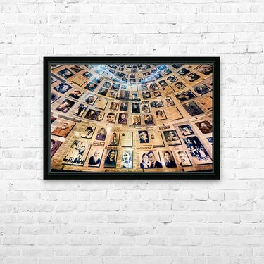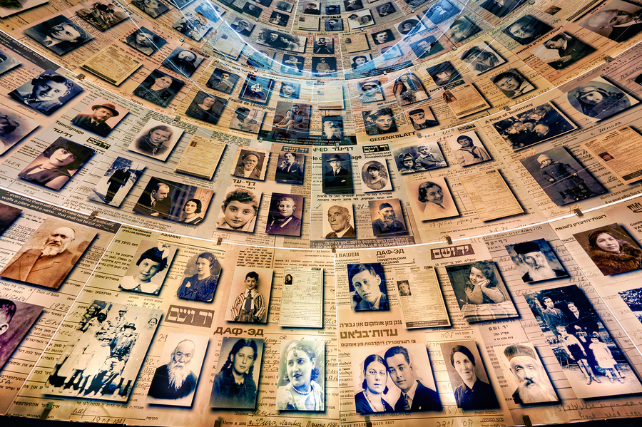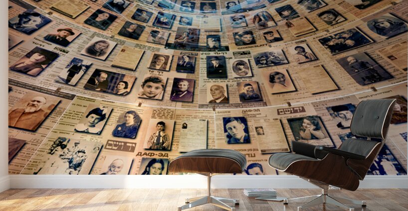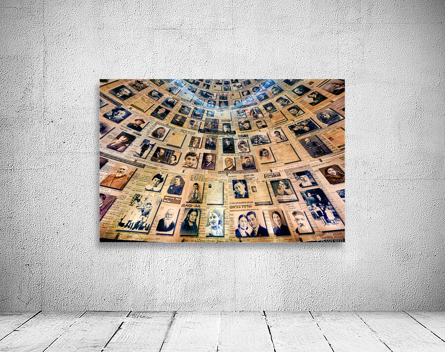 Visitors view the Hall of Names at Yad Vashem which displays records and photos of Holocaust victims. This space serves as a tribute to their memory.