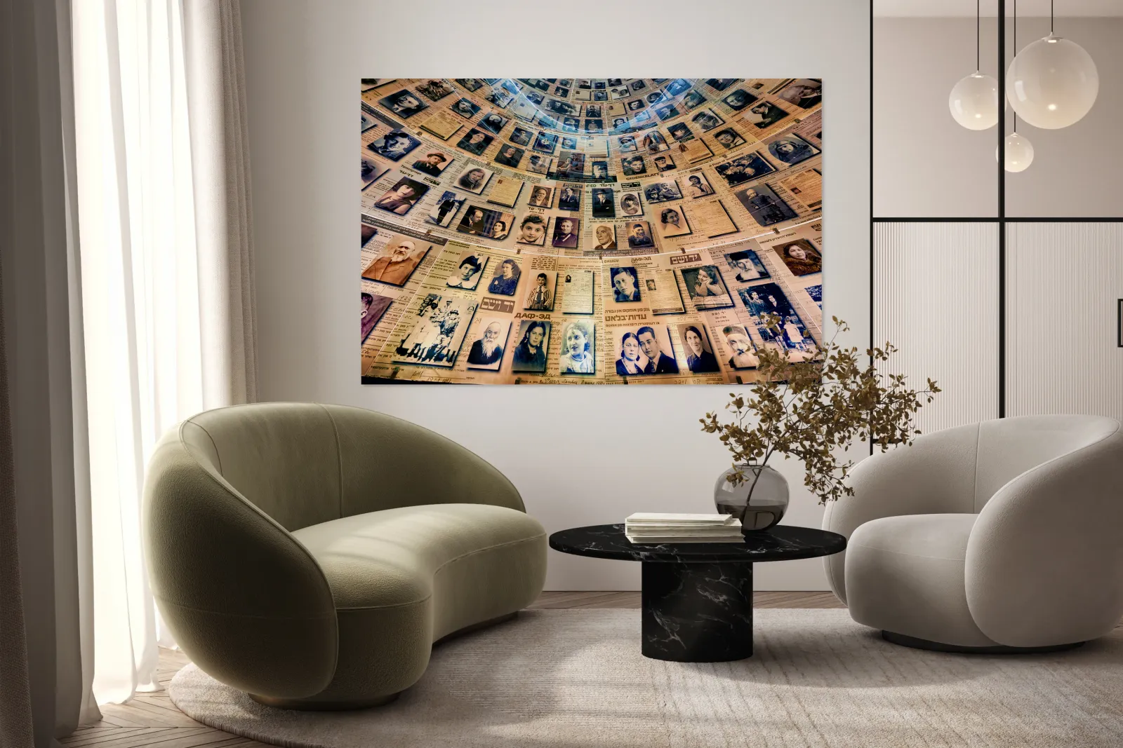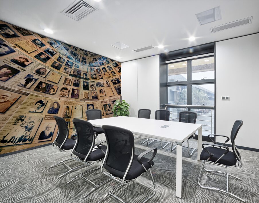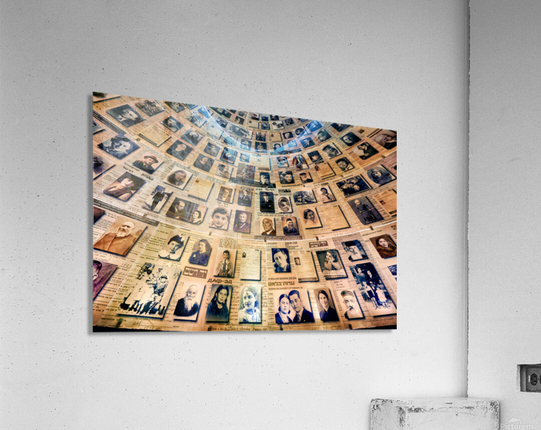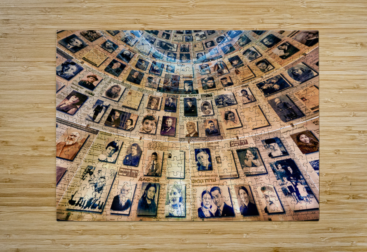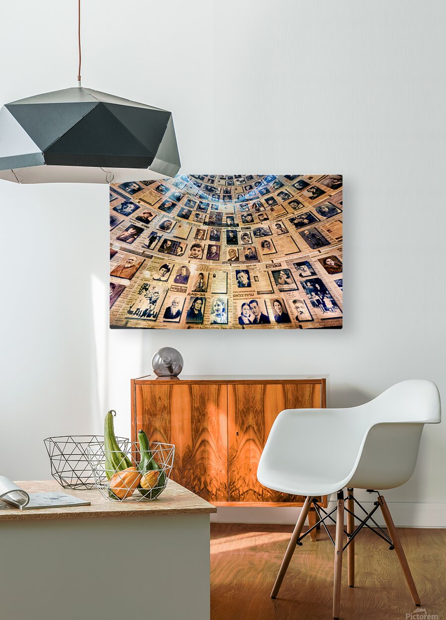 Visitors view the Hall of Names at Yad Vashem which displays records and photos of Holocaust victims. This space serves as a tribute to their memory.
