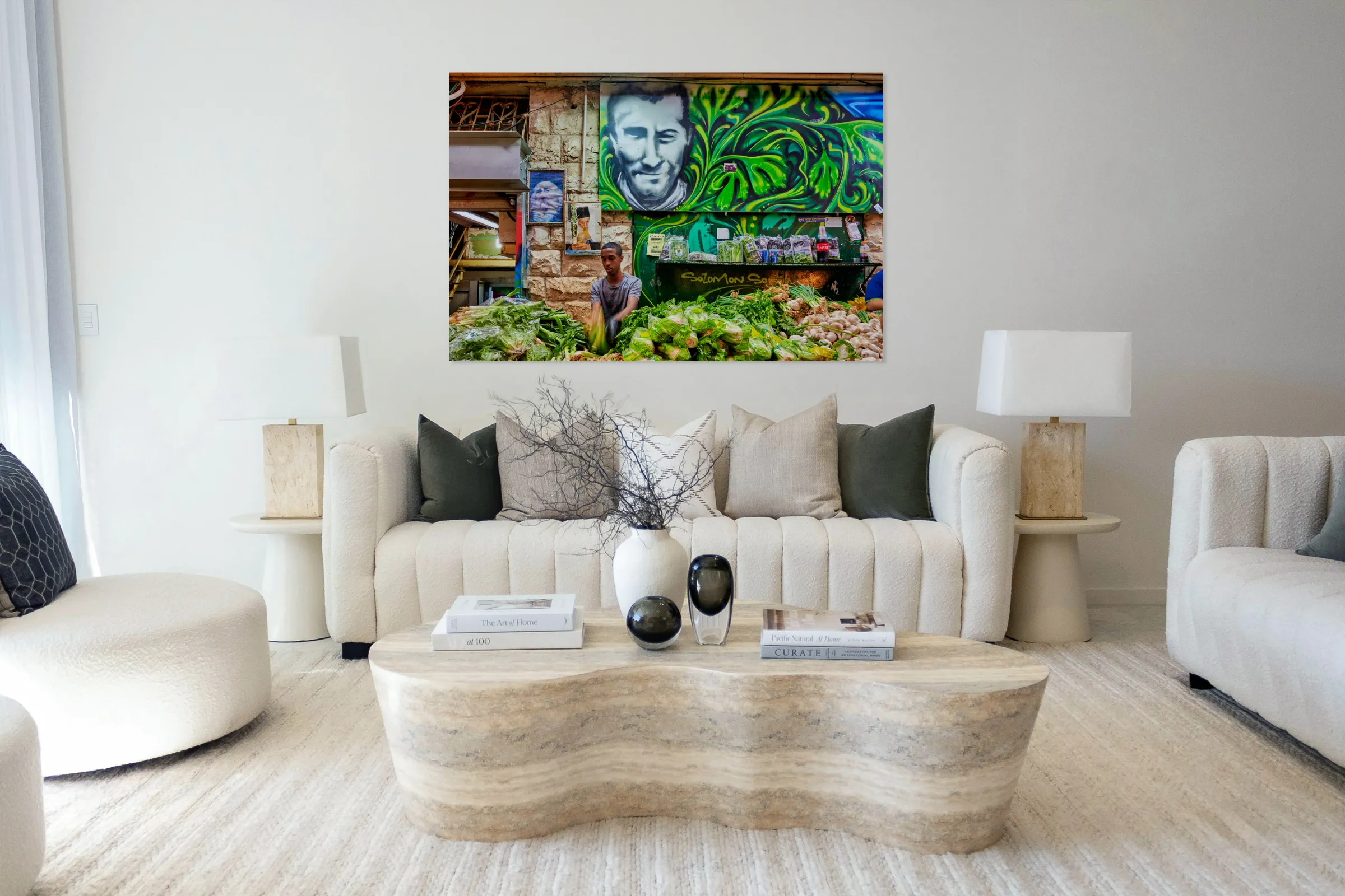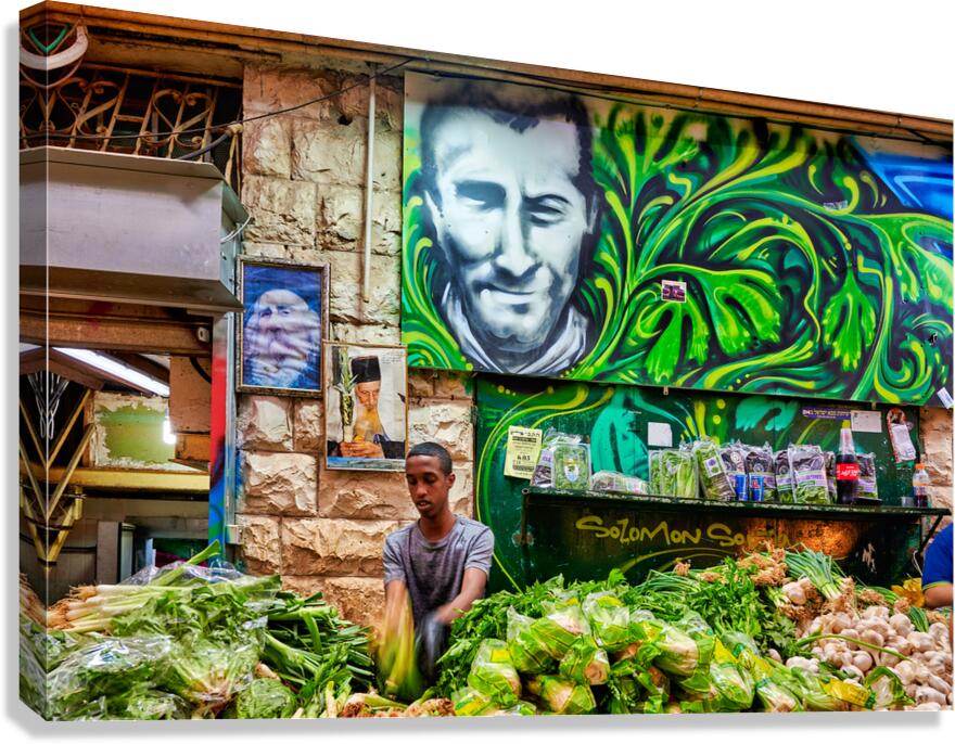 Get this artwork "Fresh produce and activity in Mahane Yehuda Market Jerusalem" in a framed print.