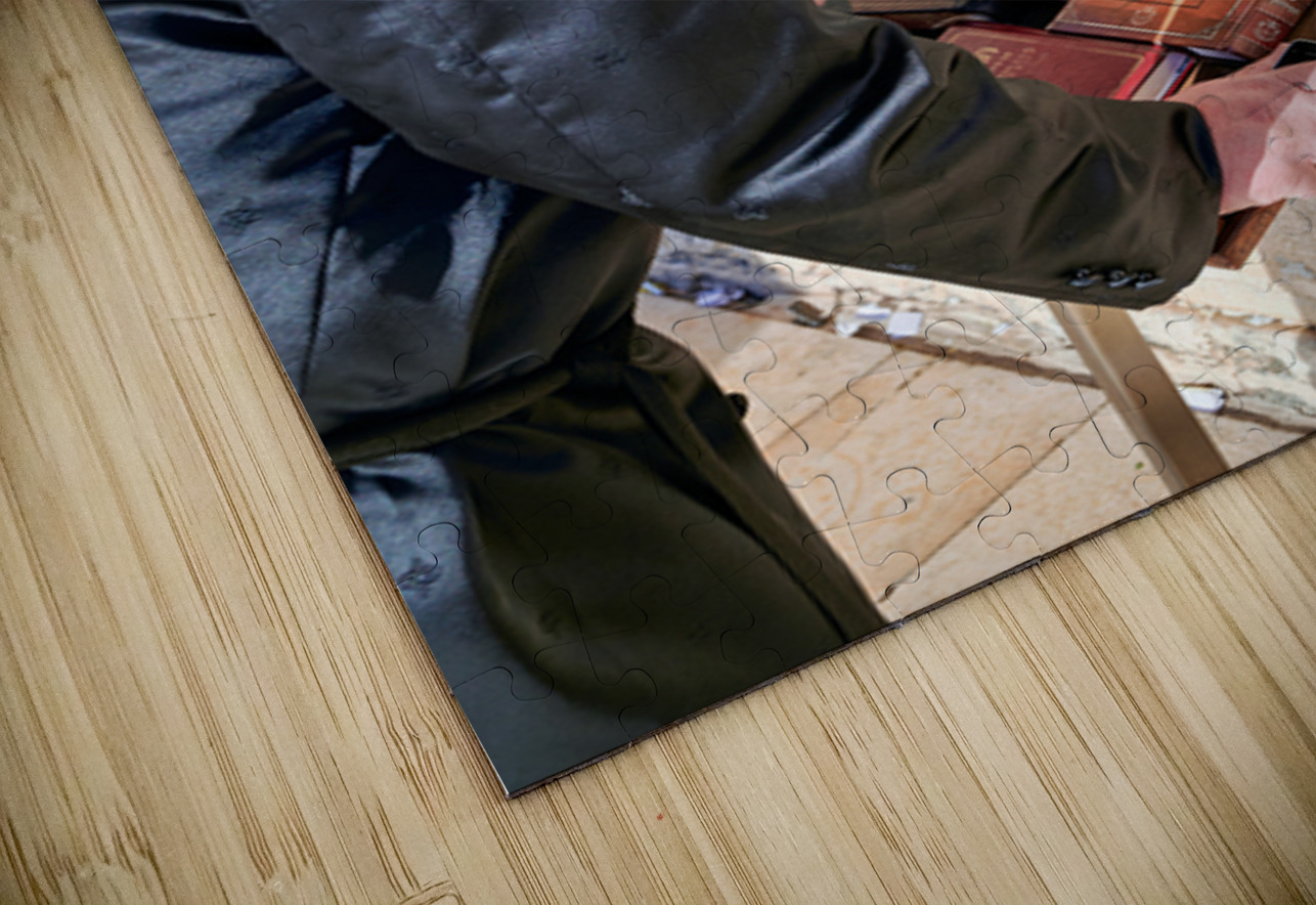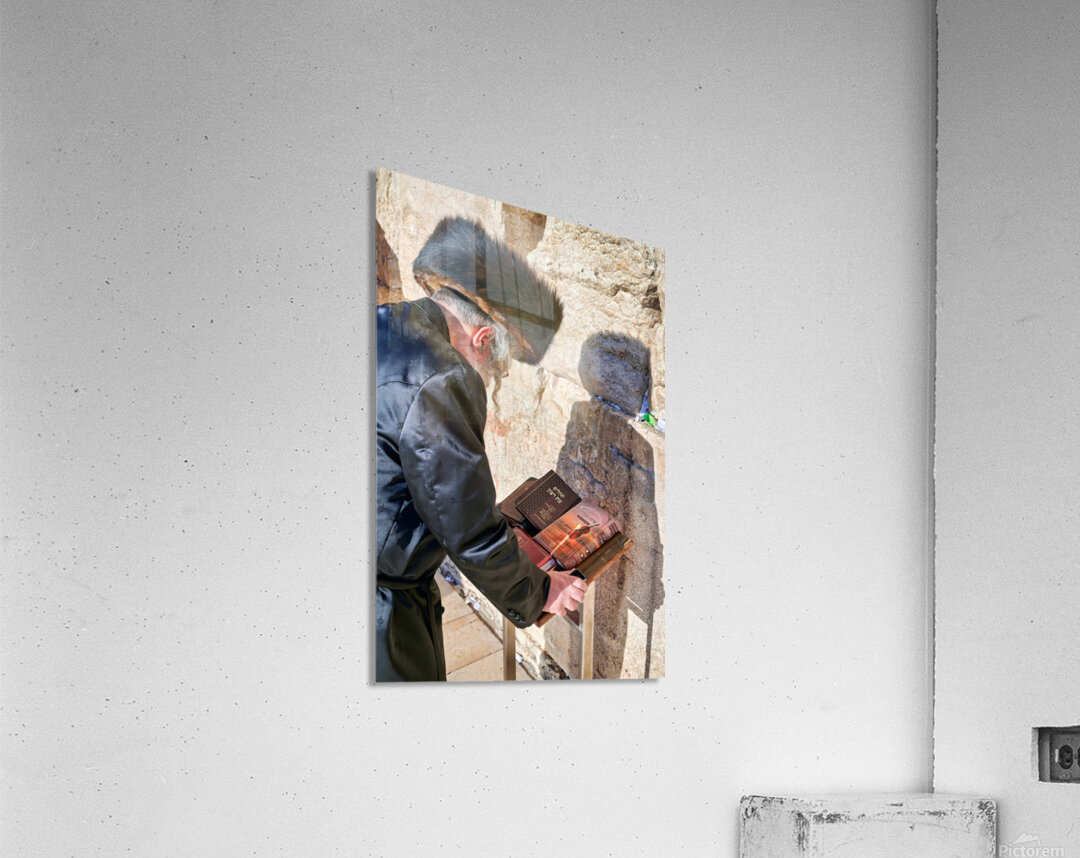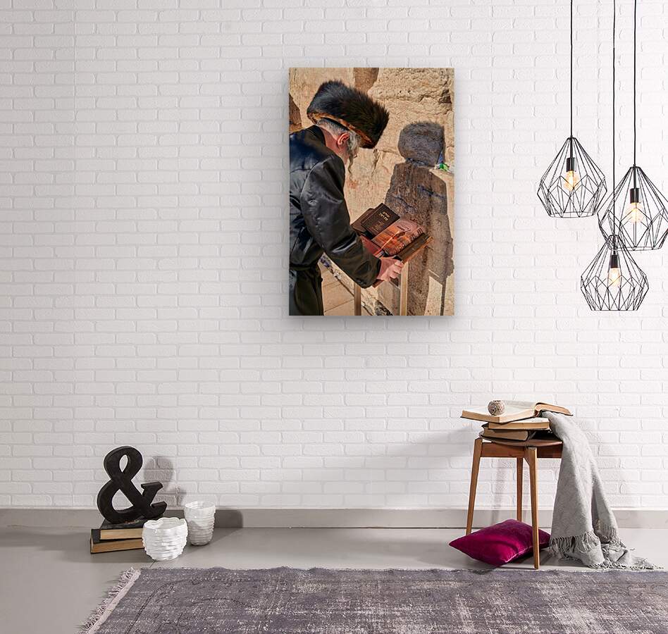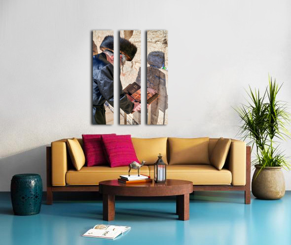 Orthodox Jews are praying at the Western Wall in Jerusalem. They focus on their prayers and hold their sacred texts while standing by the wall.