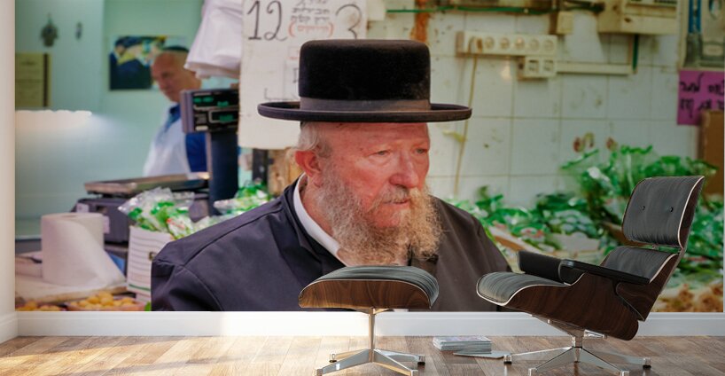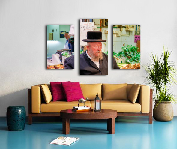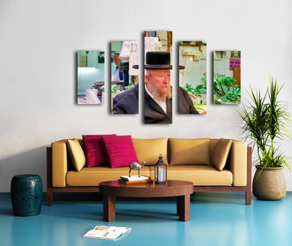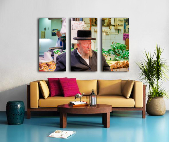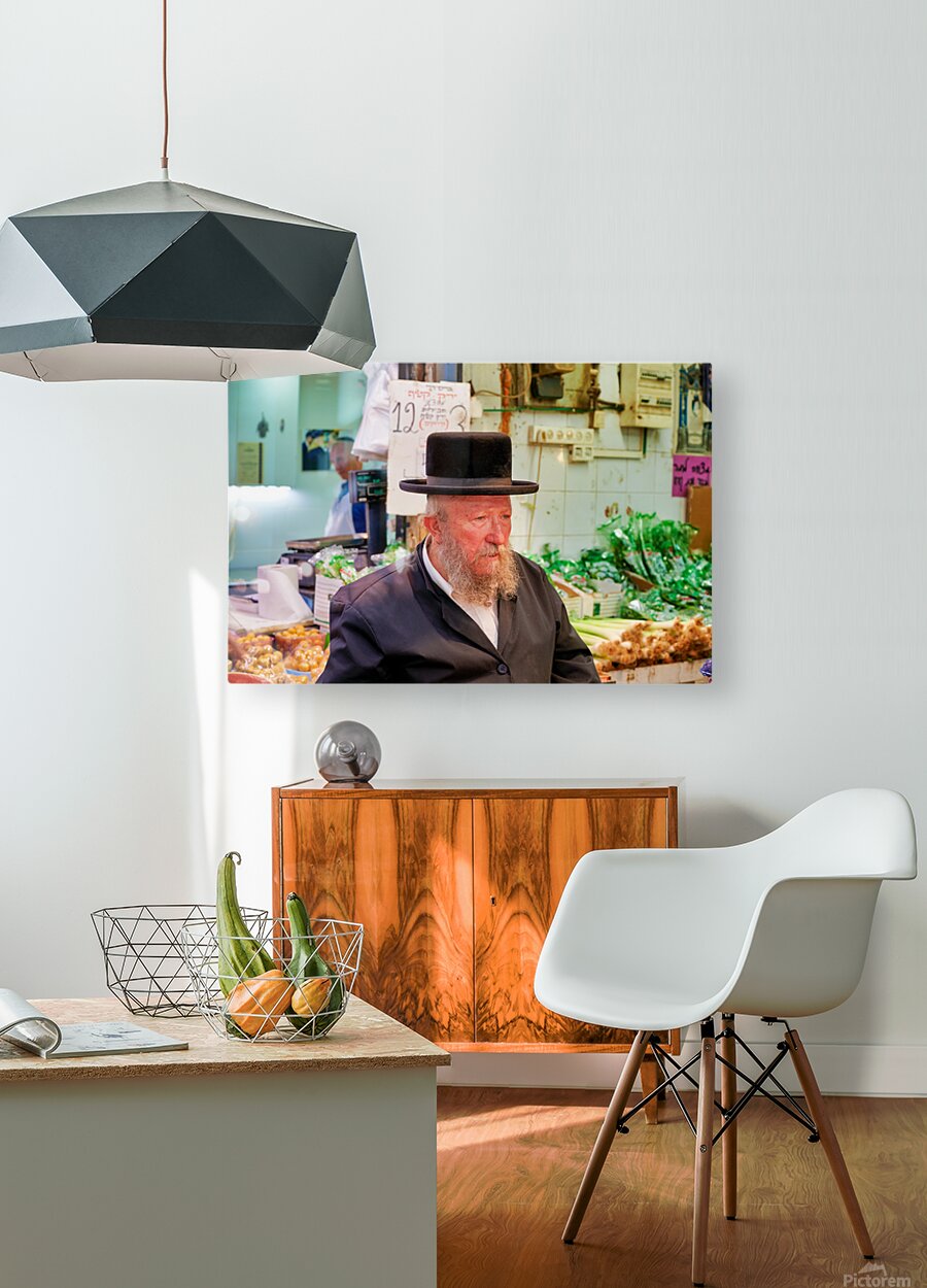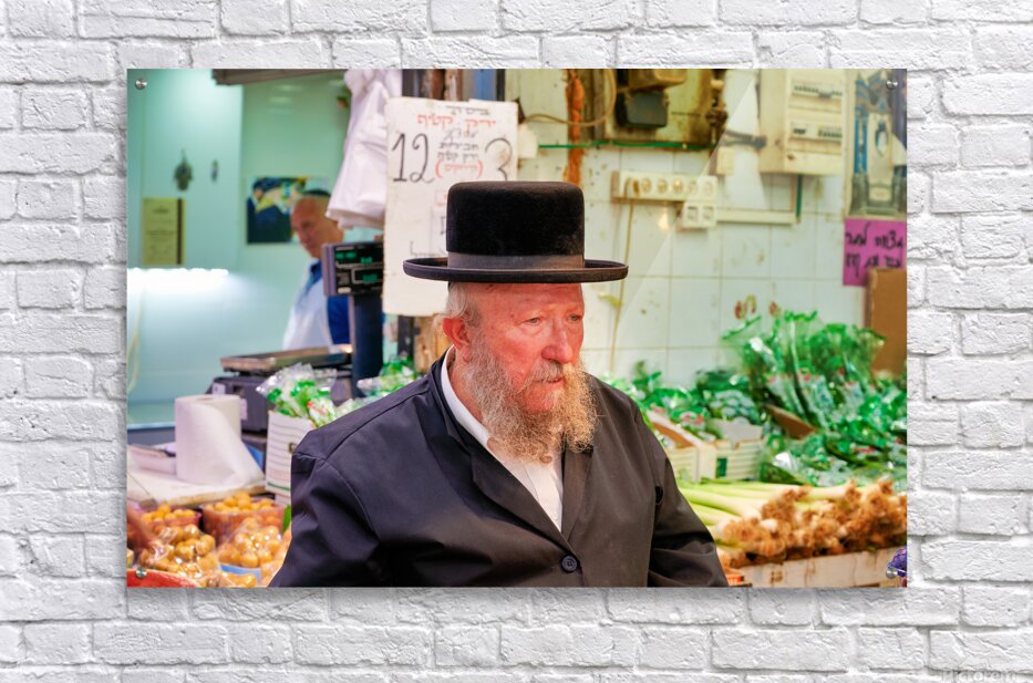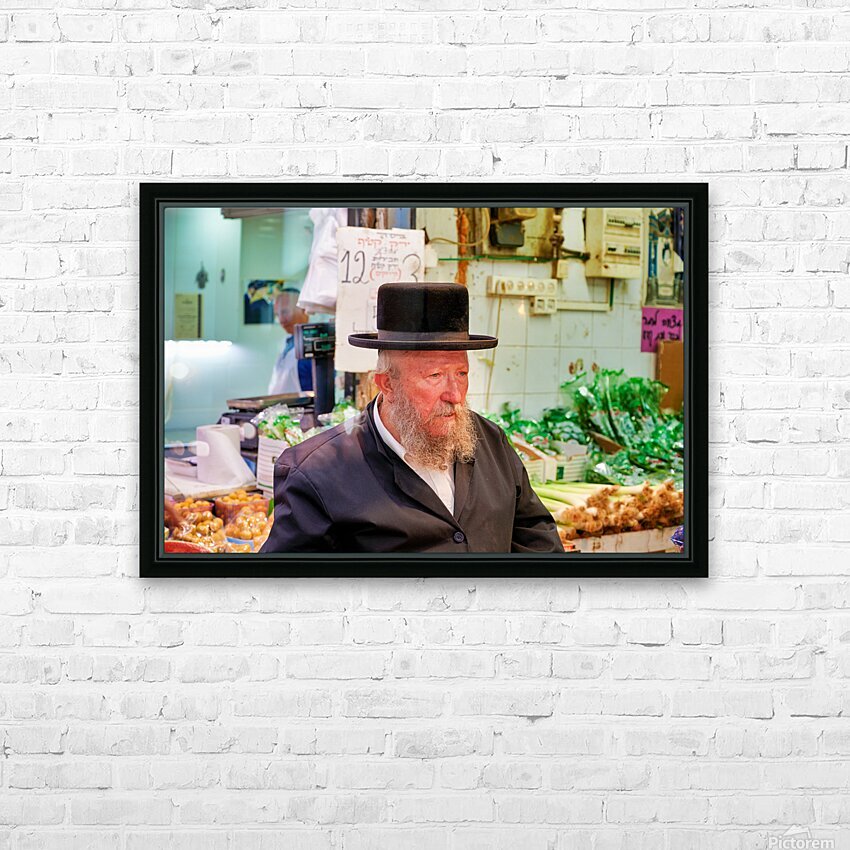 Get this artwork "Elderly man in Mahane Yehuda Market in Jerusalem during a busy d" in a framed print.