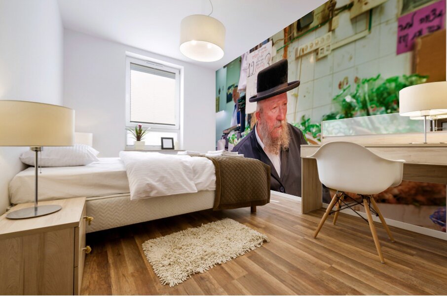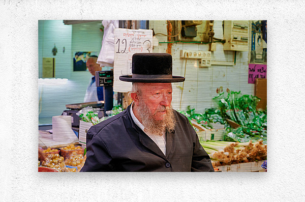 ABOUT THIS ARTWORK: ELDERLY MAN IN MAHANE YEHUDA MARKET IN JERUSALEM DURING A BUSY D