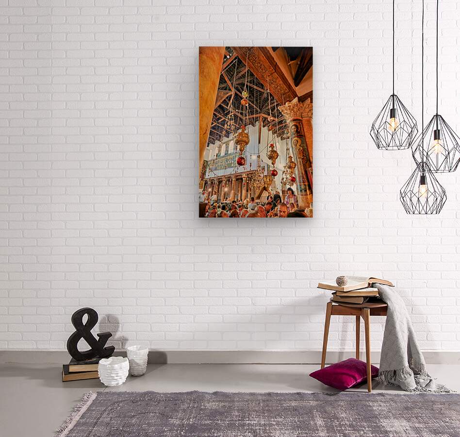 Get this artwork "Visitors gather inside the church of the nativity in Bethlehem" in a framed print.