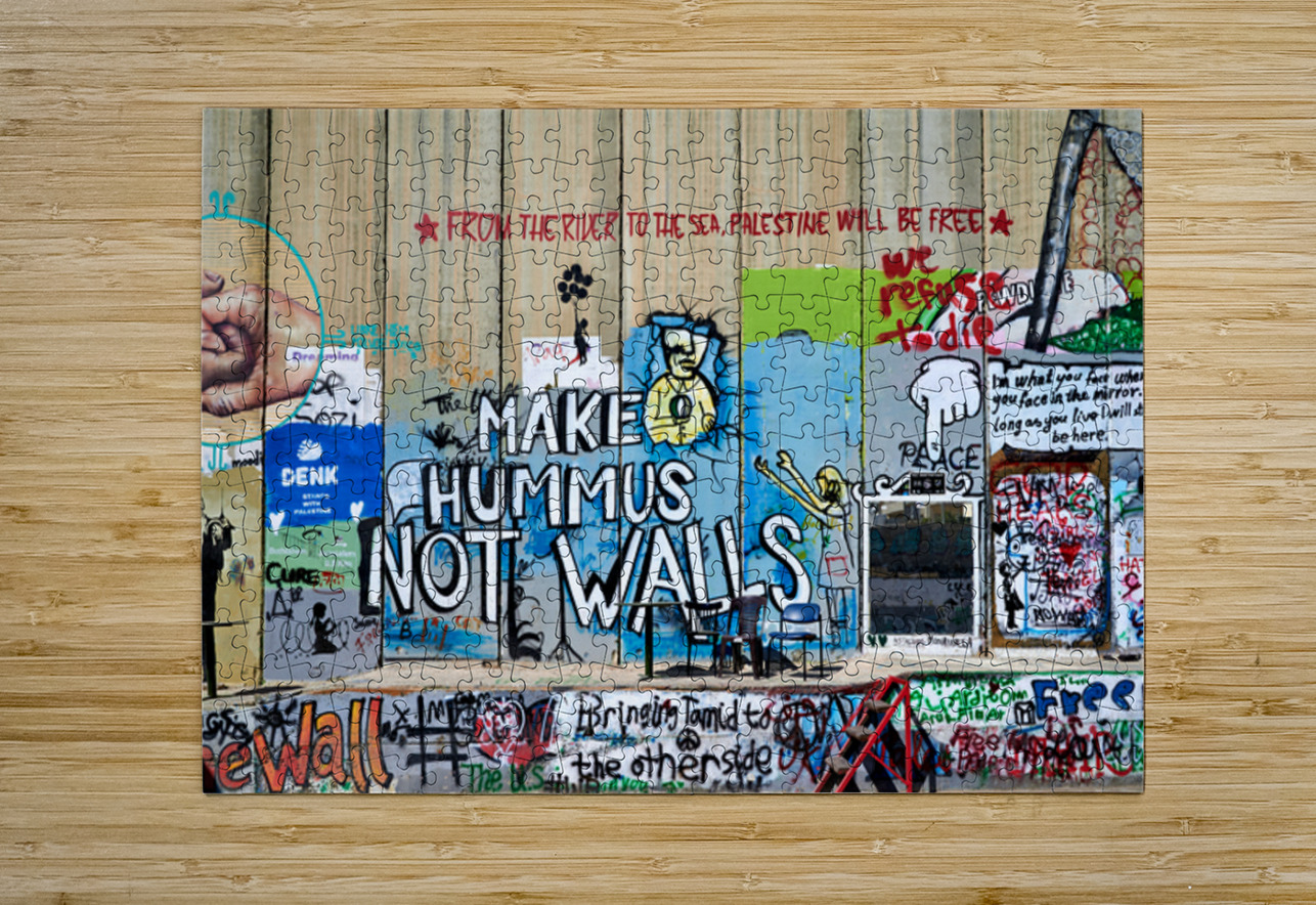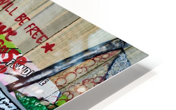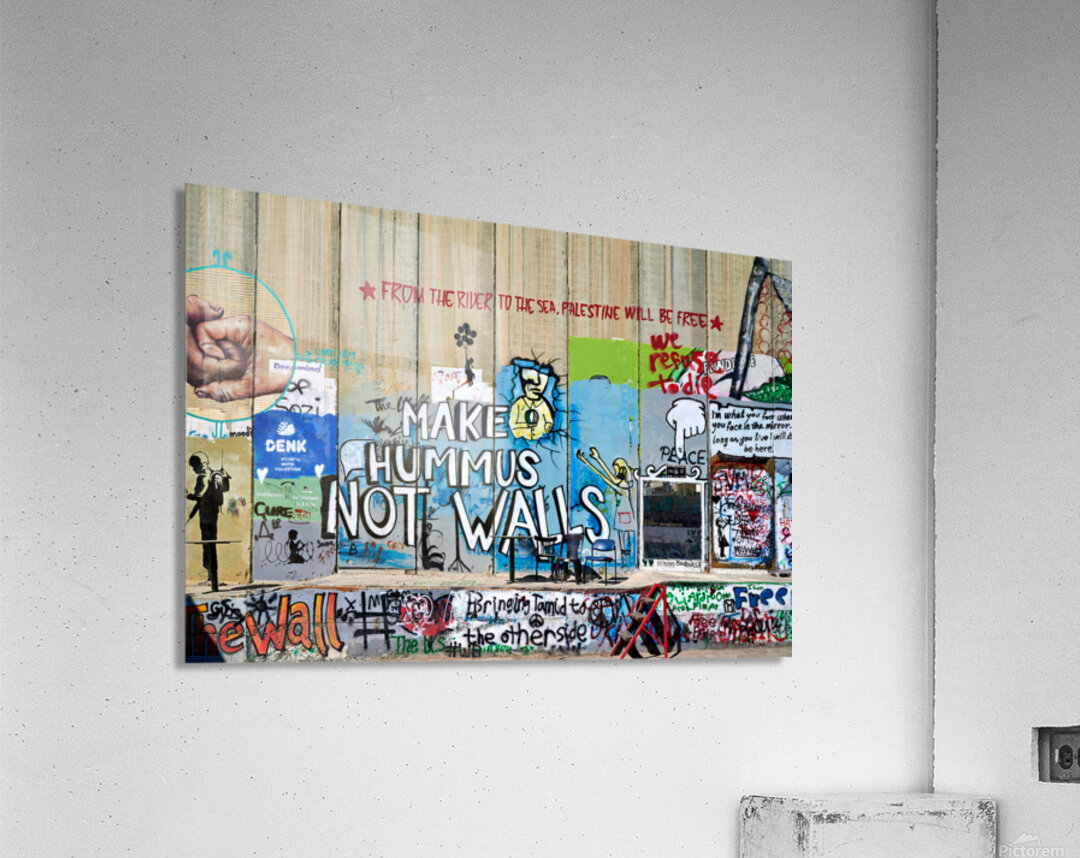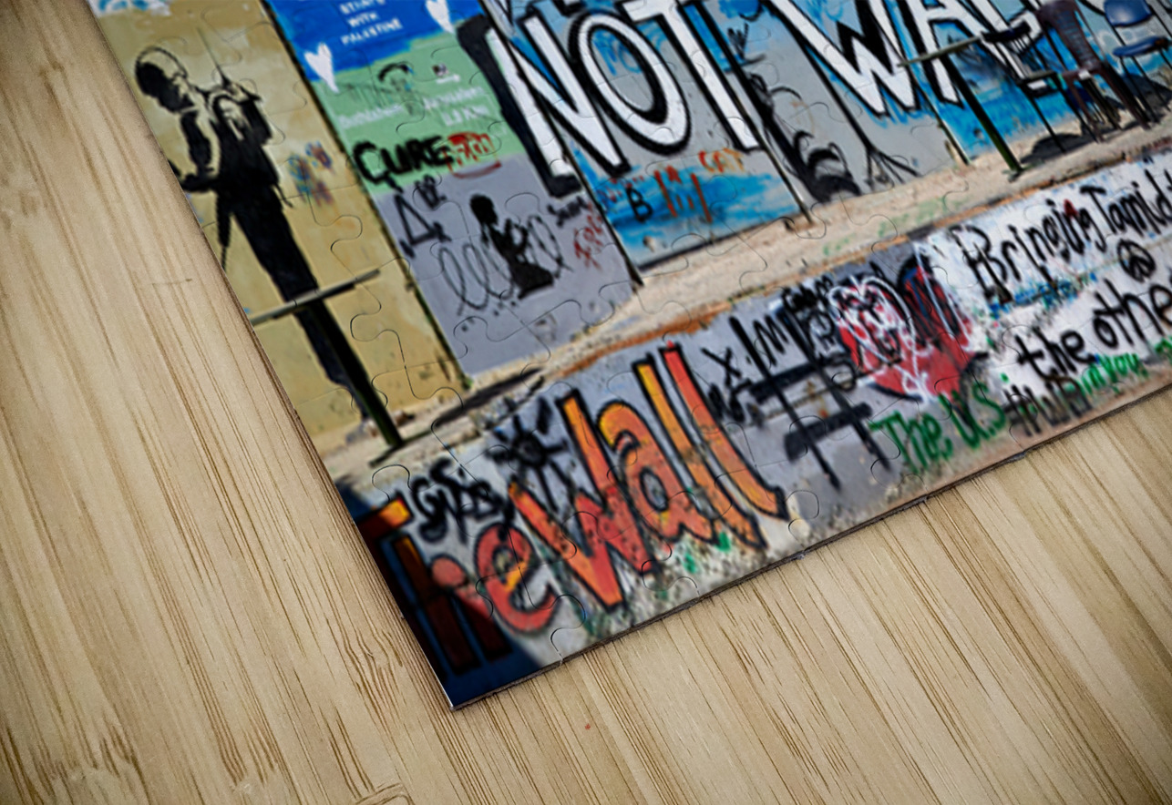 A mural with graffiti displays messages about freedom near the separation wall in Bethlehem showing artwork and slogans from the community.