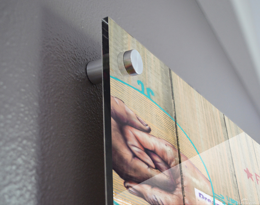 Printed to the edge - Ready to hang - provided with 4 premium polished aluminum stand off ( wall screws and mounting hardware provided )