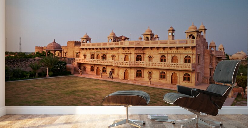 In Khimsar Fort Rajasthan visitors explore the historic structure under the evening sky.