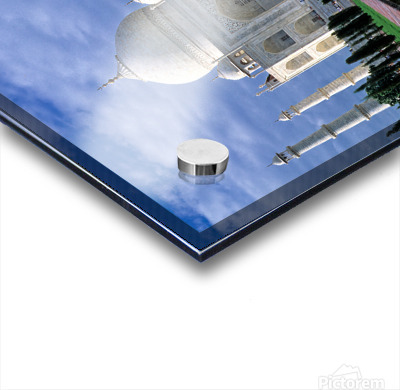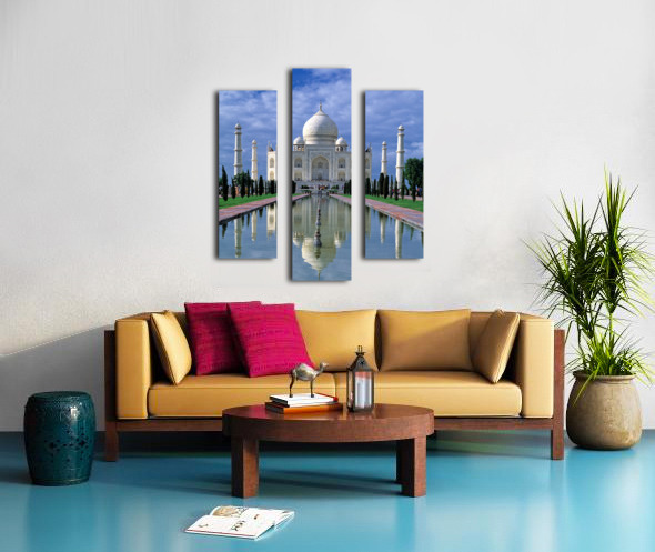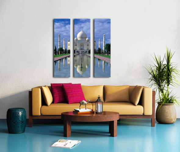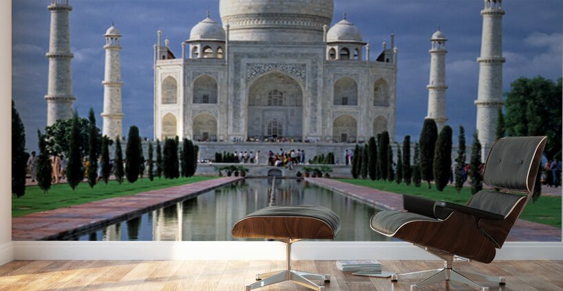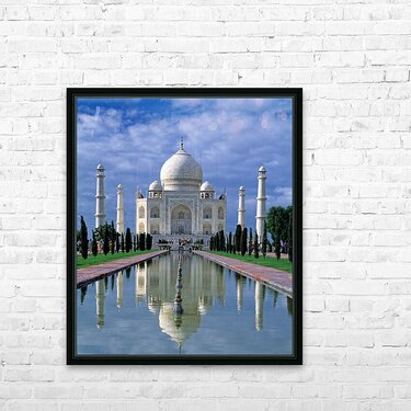 Get this artwork "Taj Mahal stands in Agra with clear sky and reflecting pool" in a framed print.