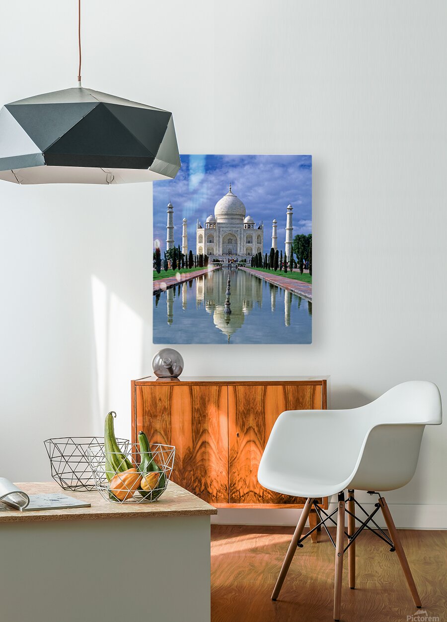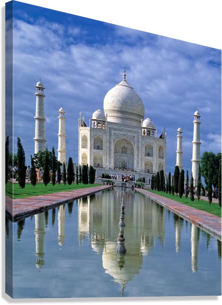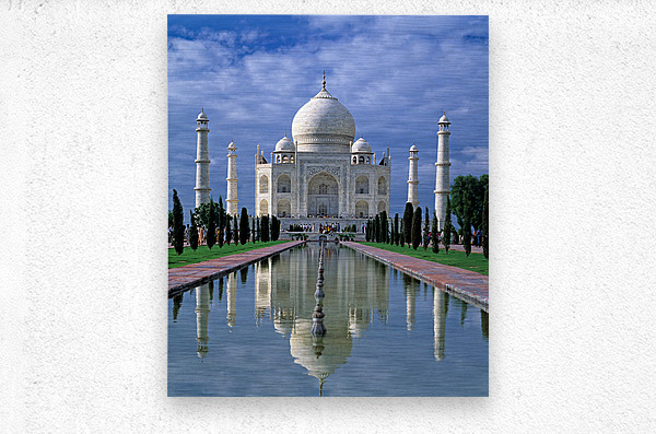 ABOUT THIS ARTWORK: TAJ MAHAL STANDS IN AGRA WITH CLEAR SKY AND REFLECTING POOL