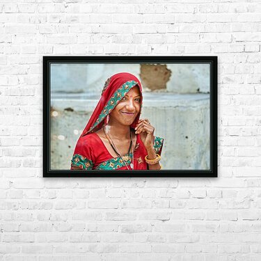 Get this artwork "Portrait of a woman in traditional dress in Mandawa Rajasthan" in a framed print.