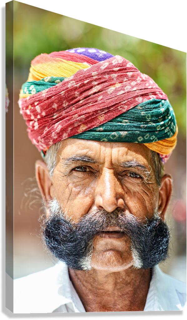 Get this artwork "Senior man in colorful turban in Deshnok Rajasthan India" in a framed print.