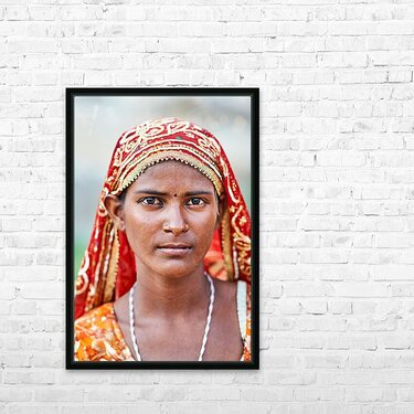 Get this artwork "Portrait of woman in traditional dress in Mandawa Rajasthan" in a framed print.