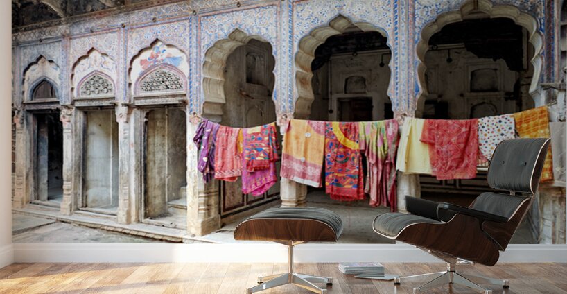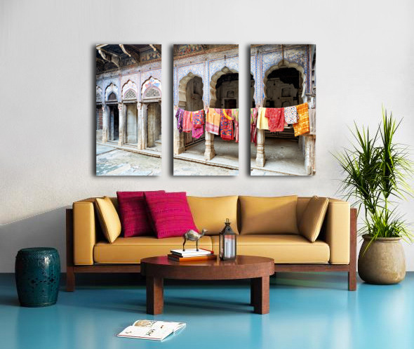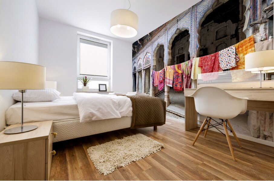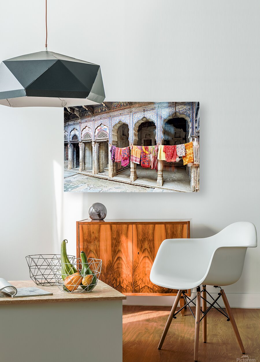 Get this artwork "Decorated painted houses and colorful clothes in Mandawa Rajasth" in a framed print.